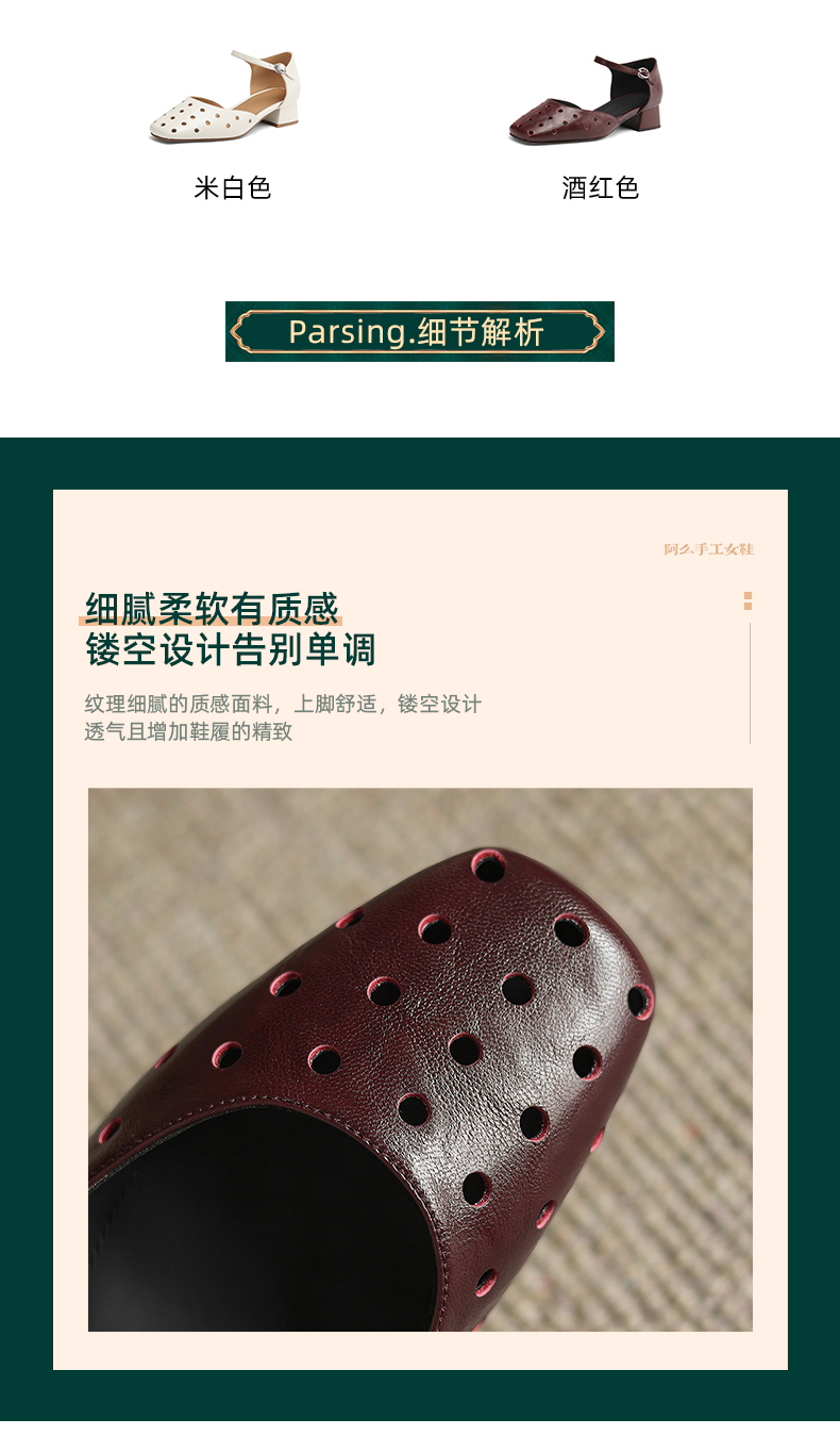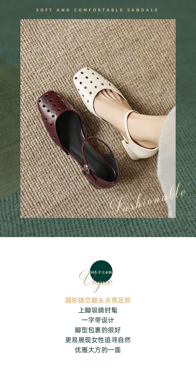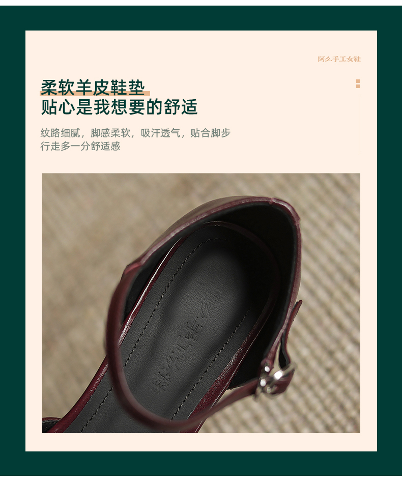 阿么手工女鞋复古粗跟凉鞋女一字带不累脚高级感2025新款百搭4CM