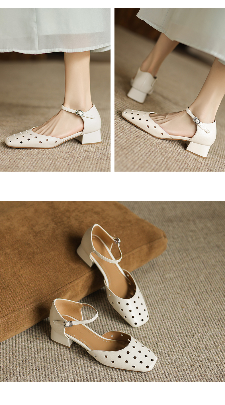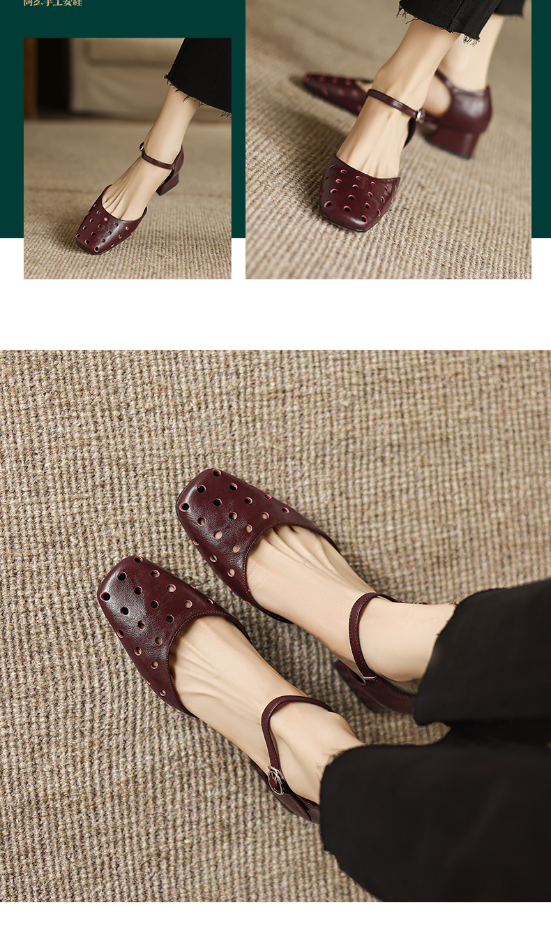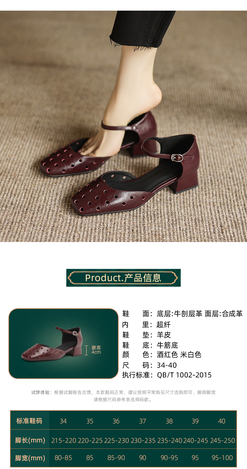 阿么手工女鞋复古粗跟凉鞋女一字带不累脚高级感2025新款百搭4CM