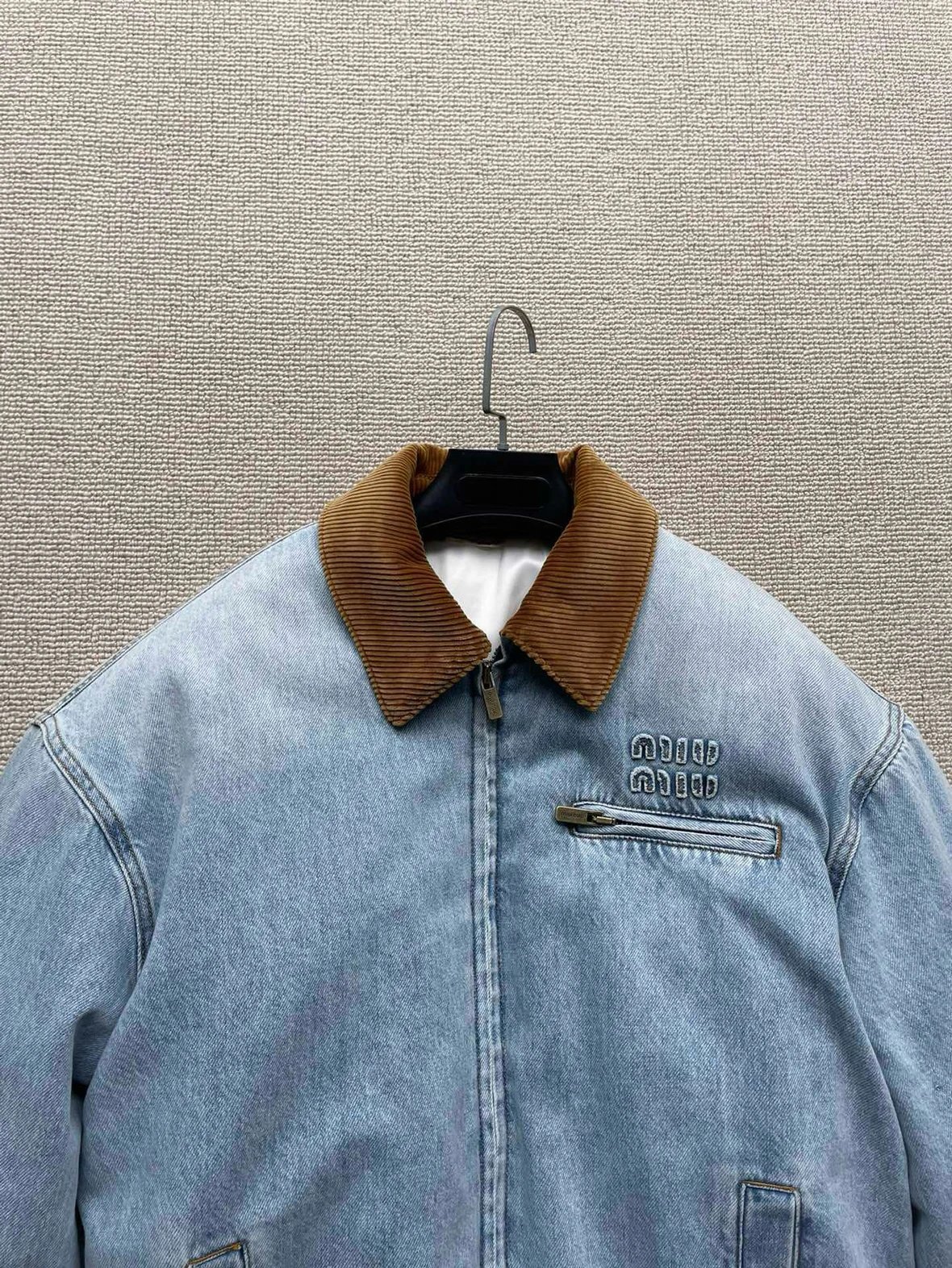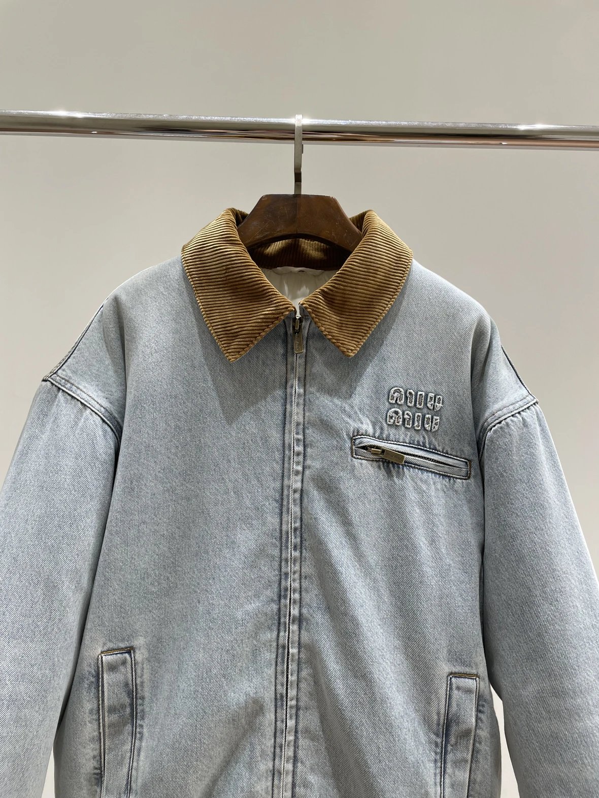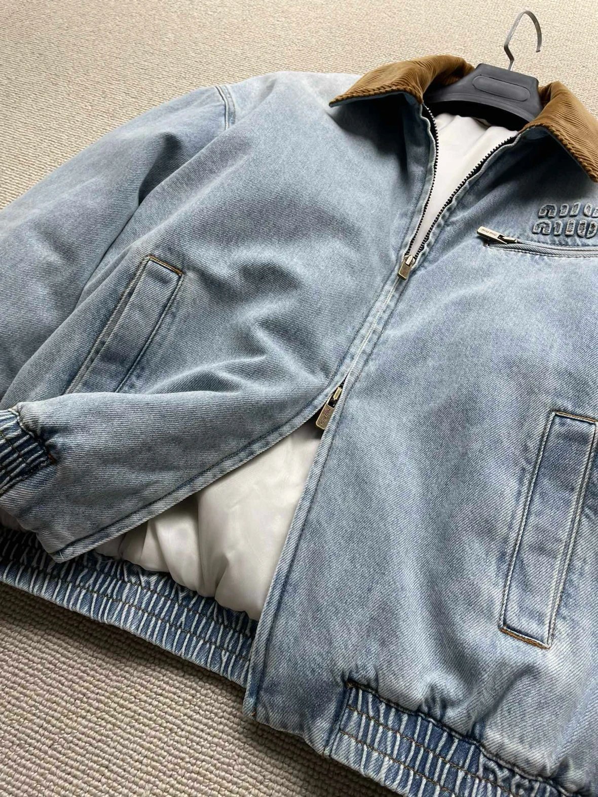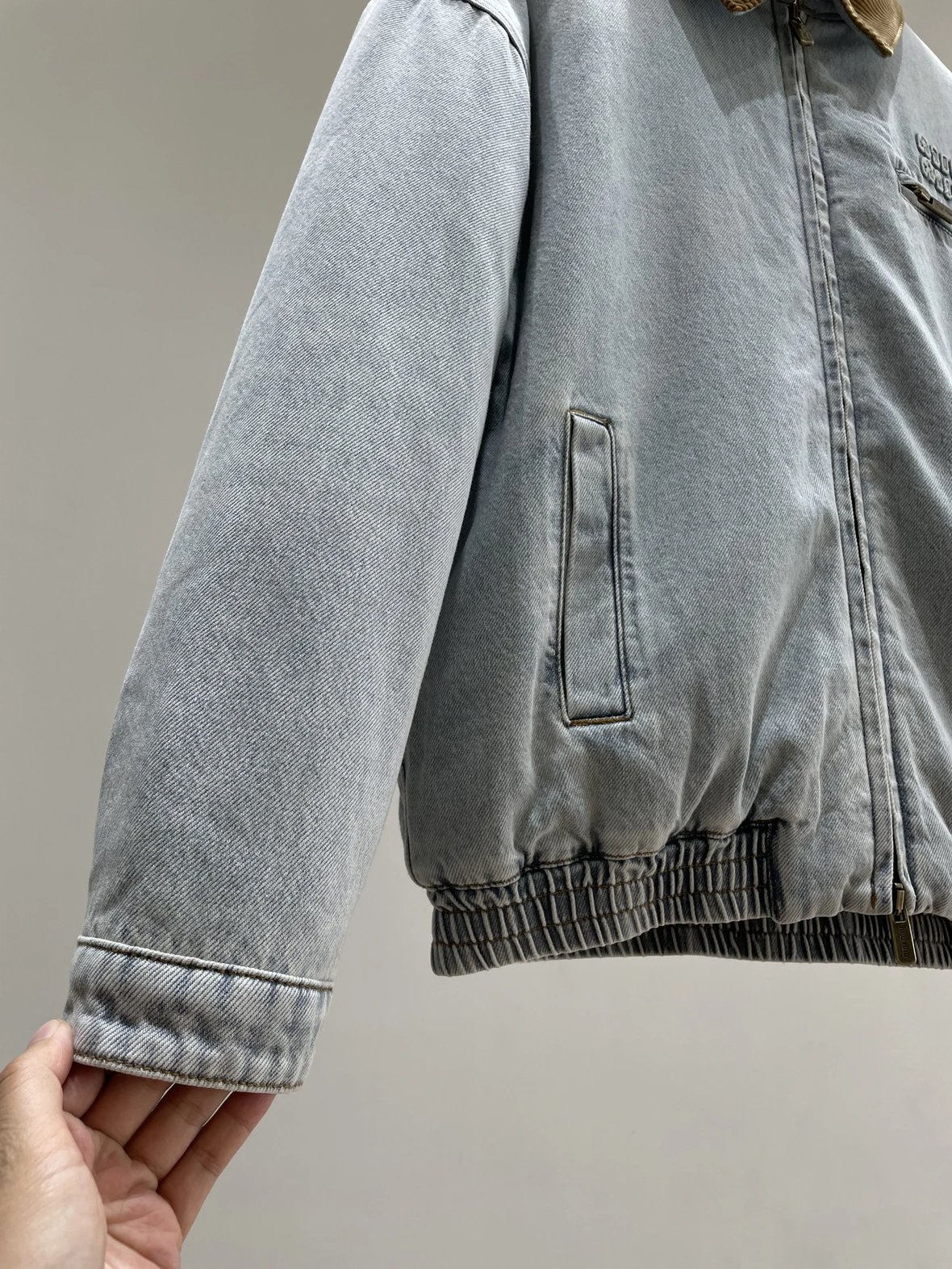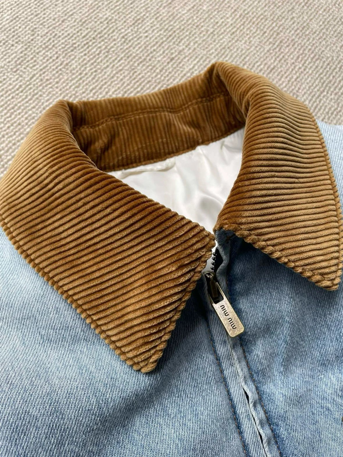 刘浩存同款 重磅贸y公司 miu男女同款单宁棉服外套 复古灯芯绒领 日本冈山水洗牛仔棉服