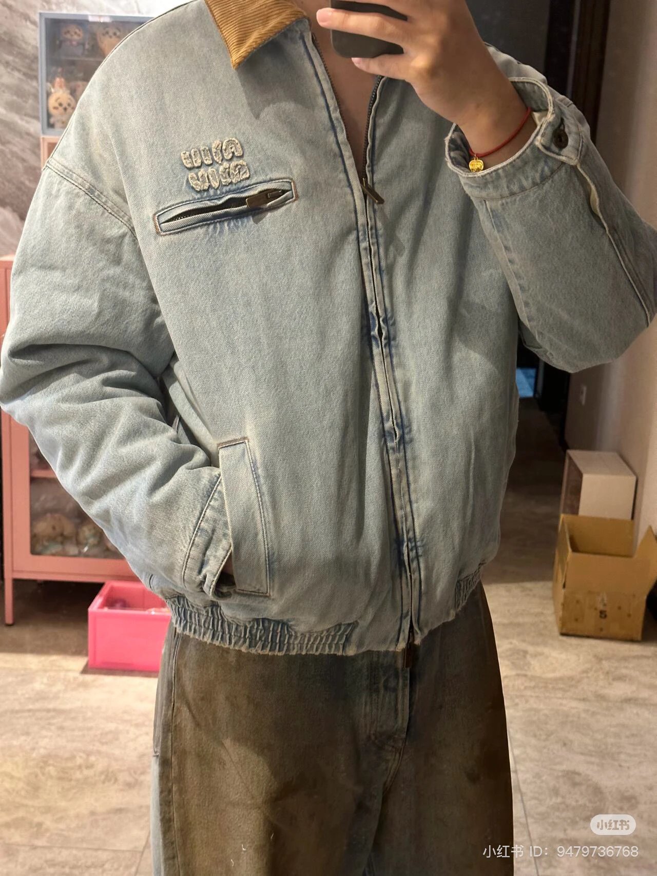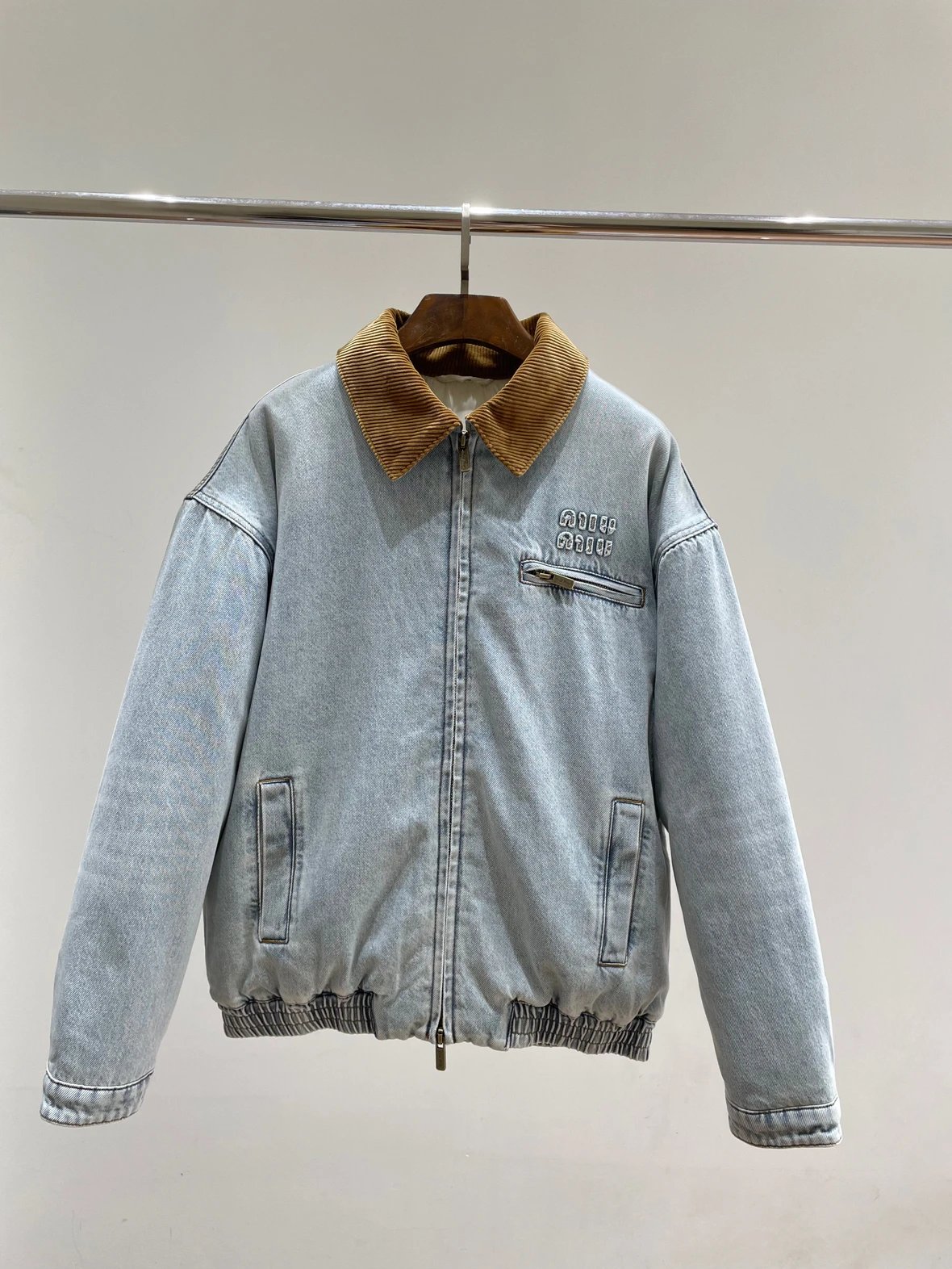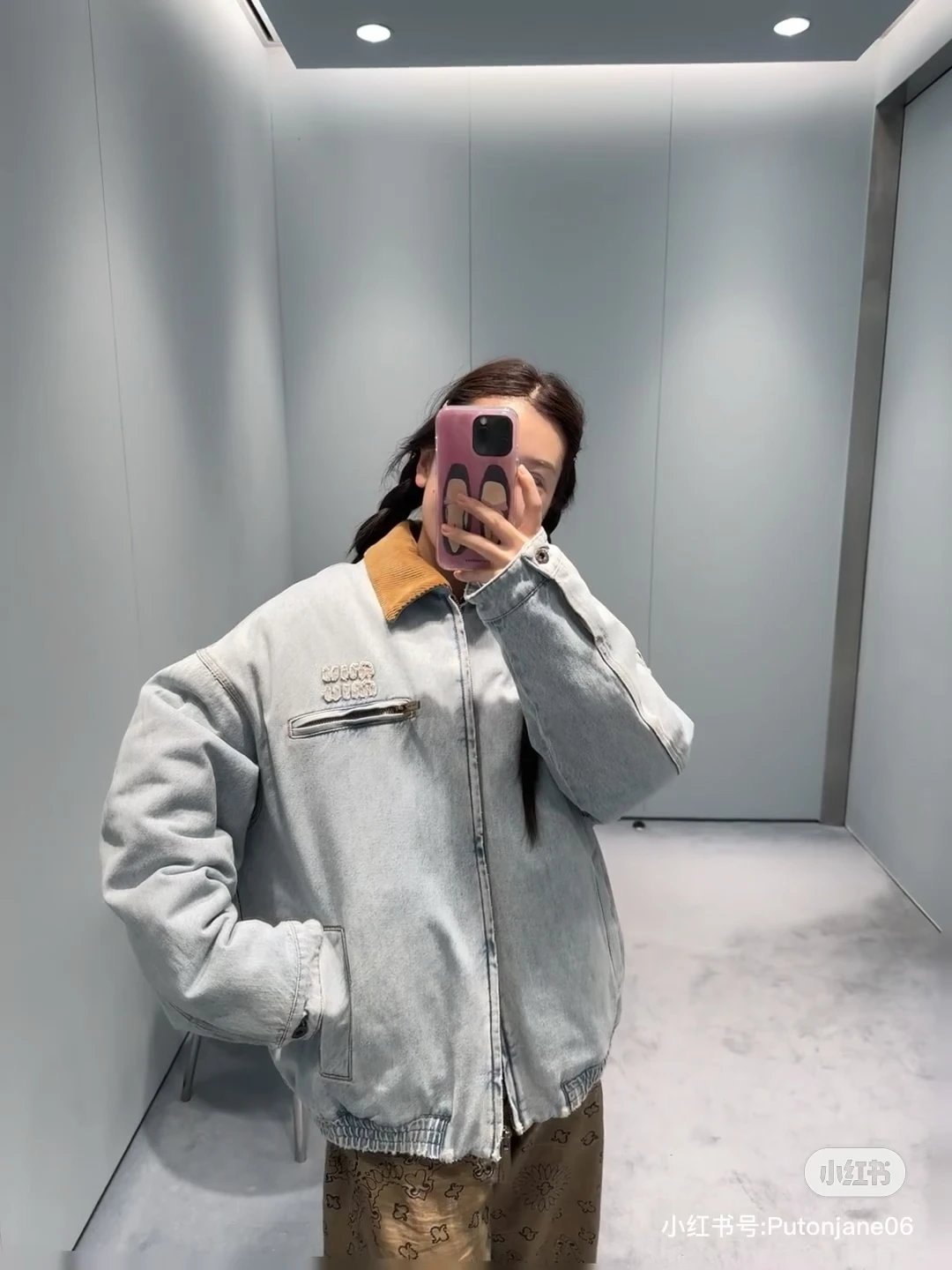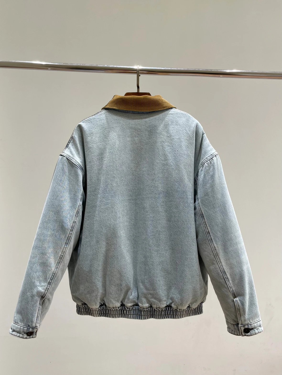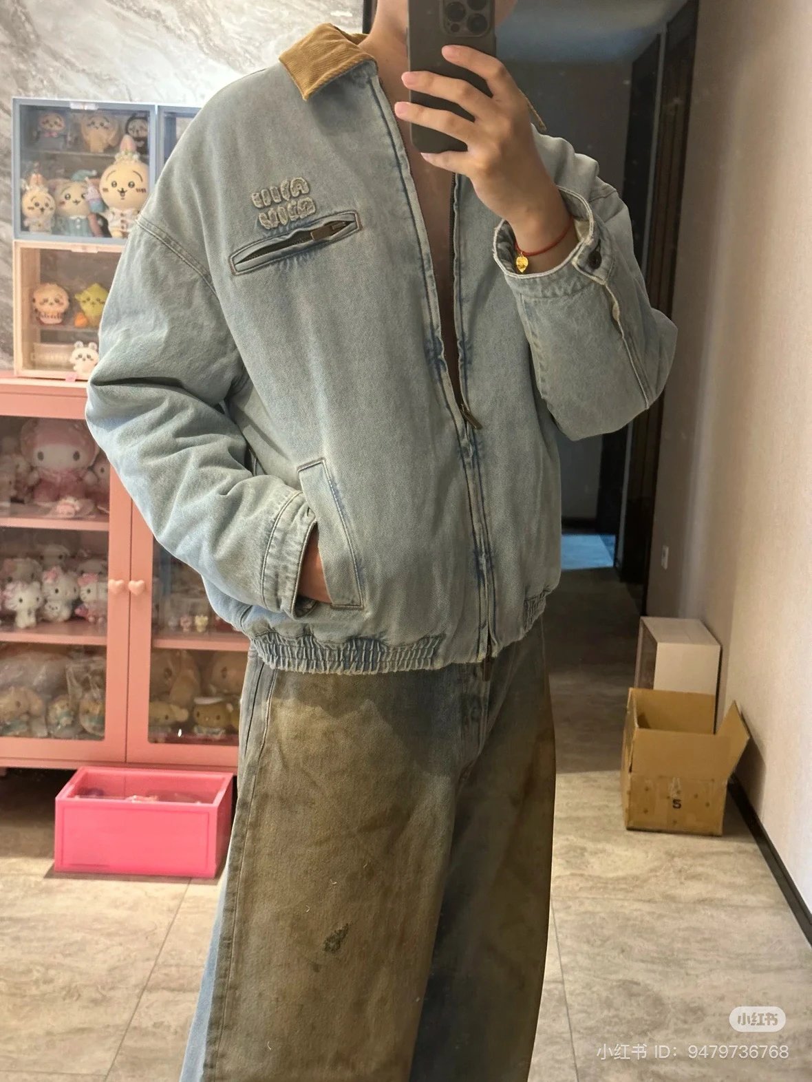 刘浩存同款 重磅贸y公司 miu男女同款单宁棉服外套 复古灯芯绒领 日本冈山水洗牛仔棉服