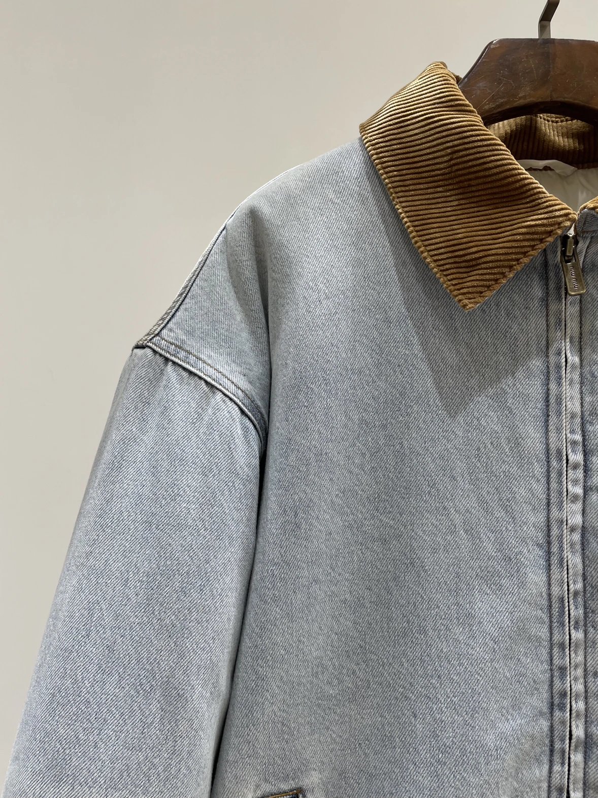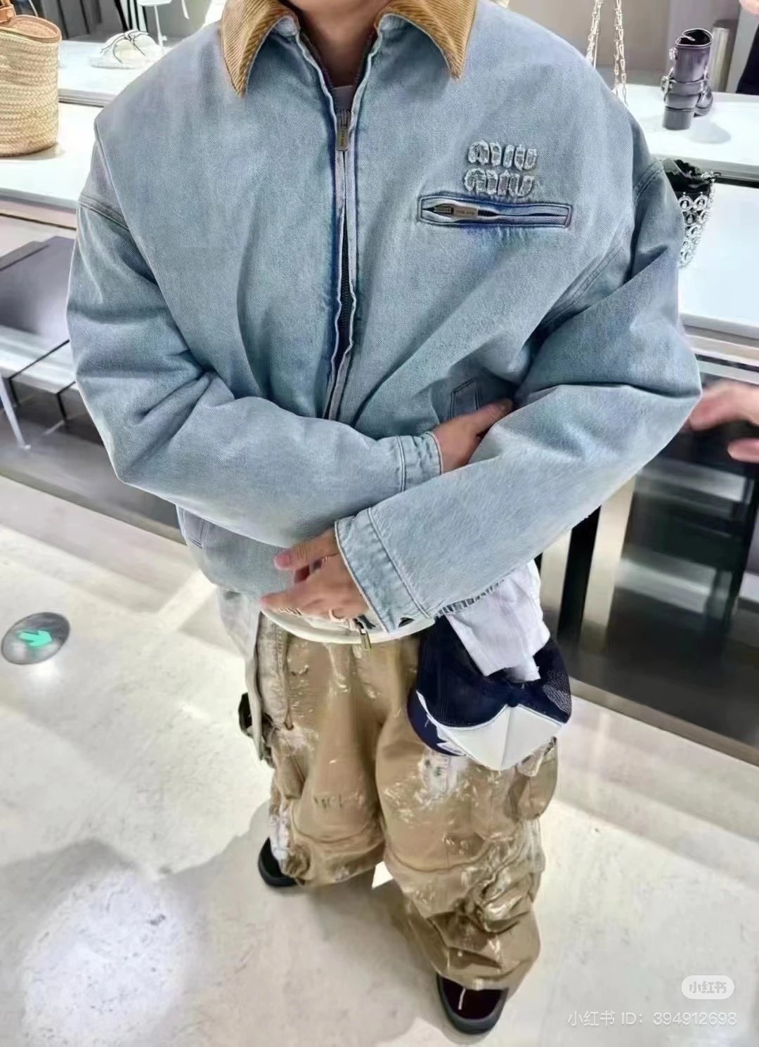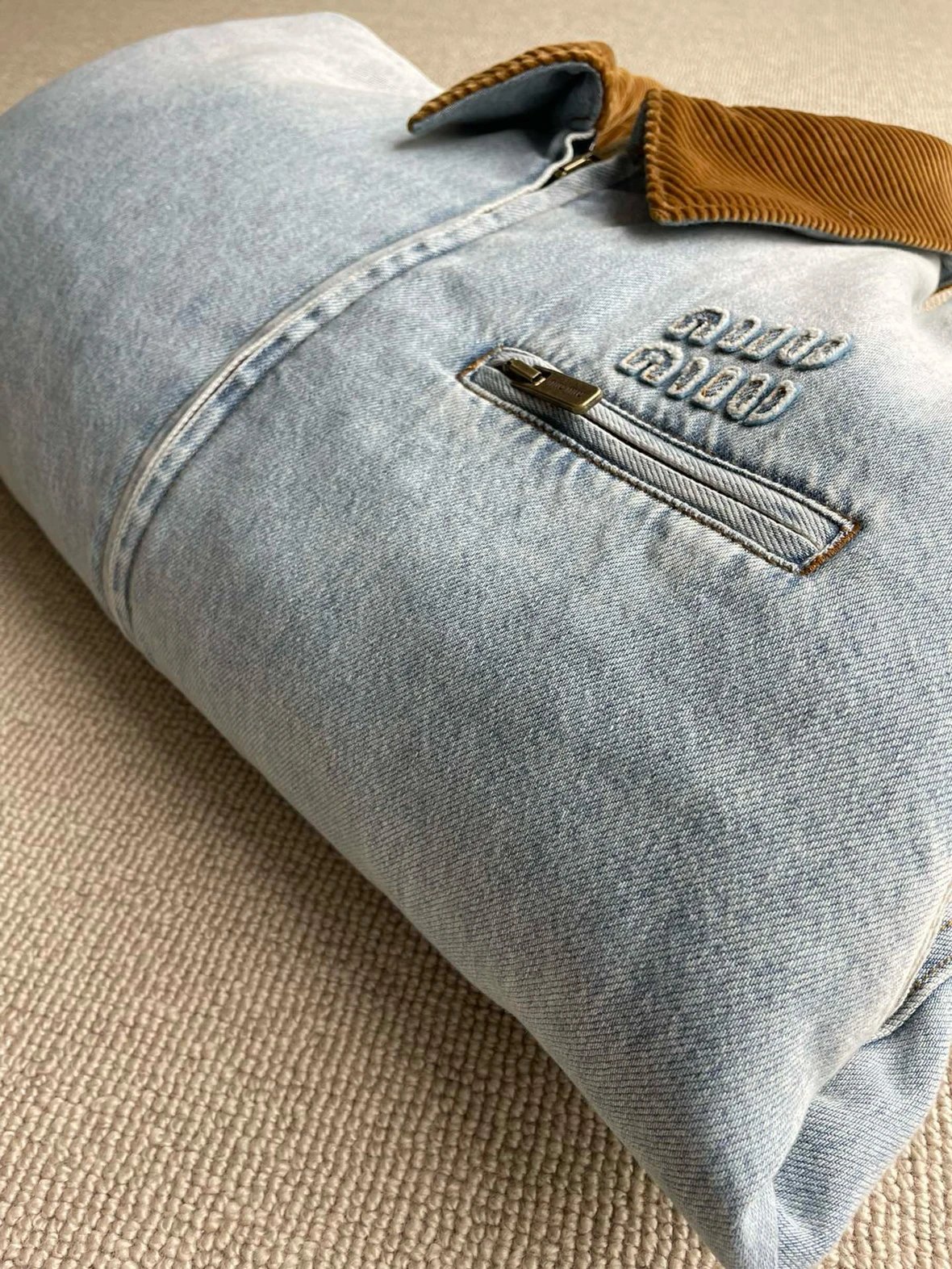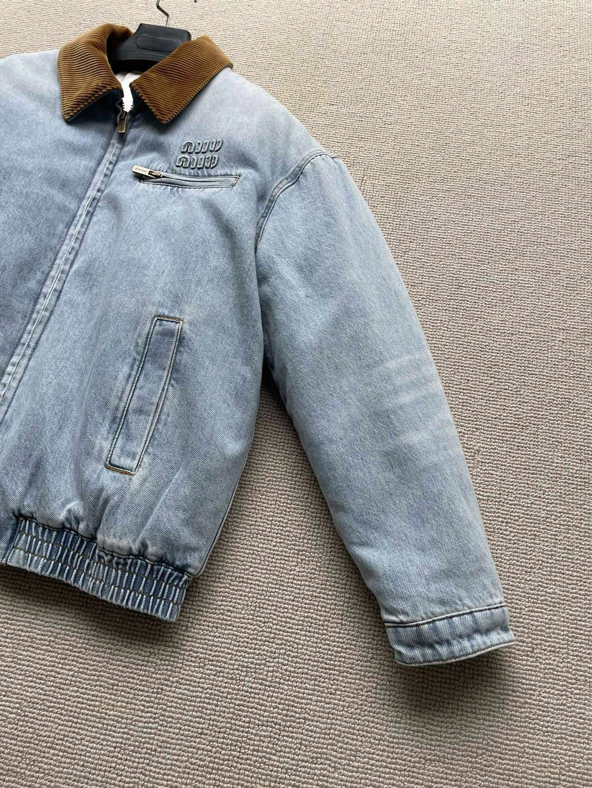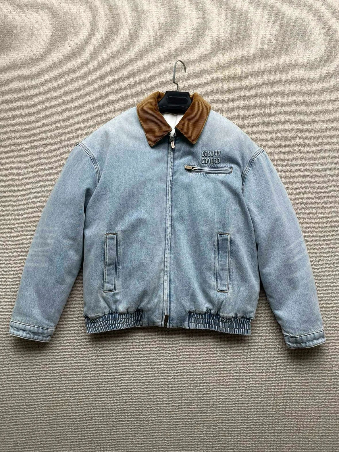 刘浩存同款 重磅贸y公司 miu男女同款单宁棉服外套 复古灯芯绒领 日本冈山水洗牛仔棉服