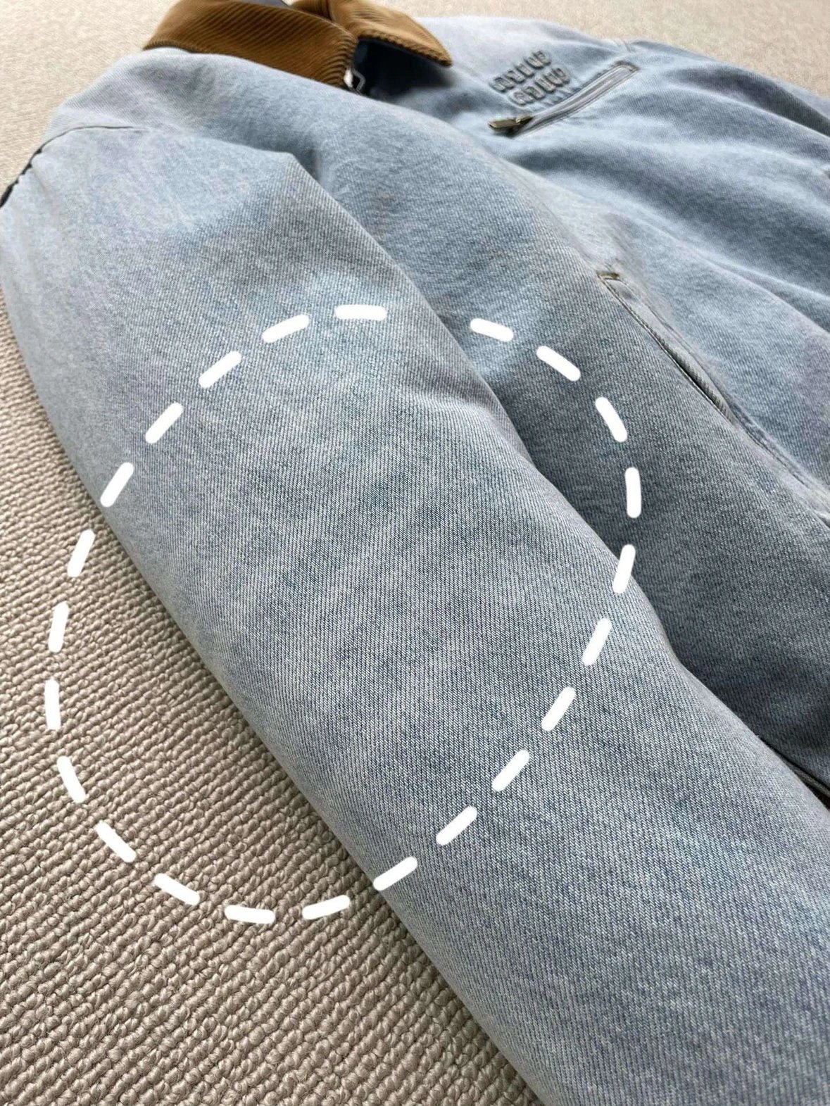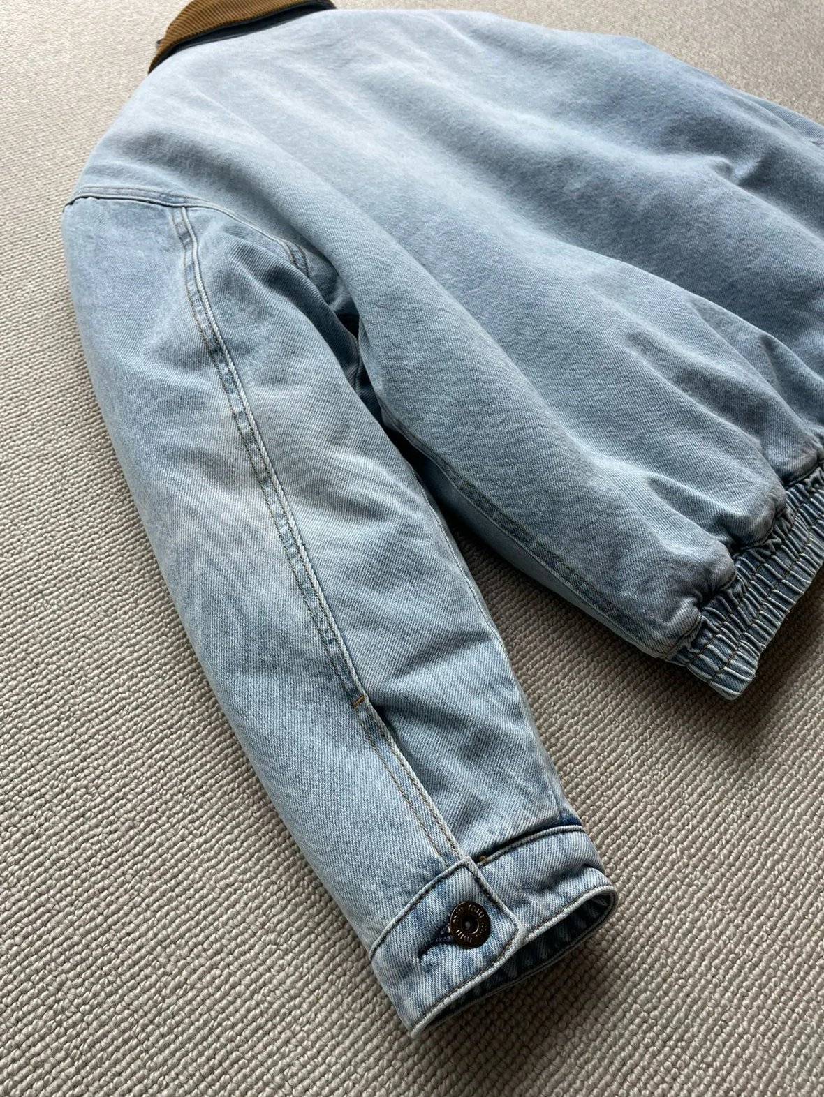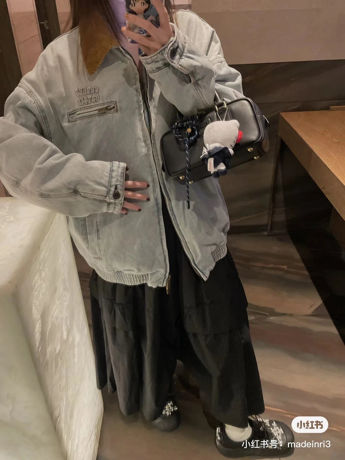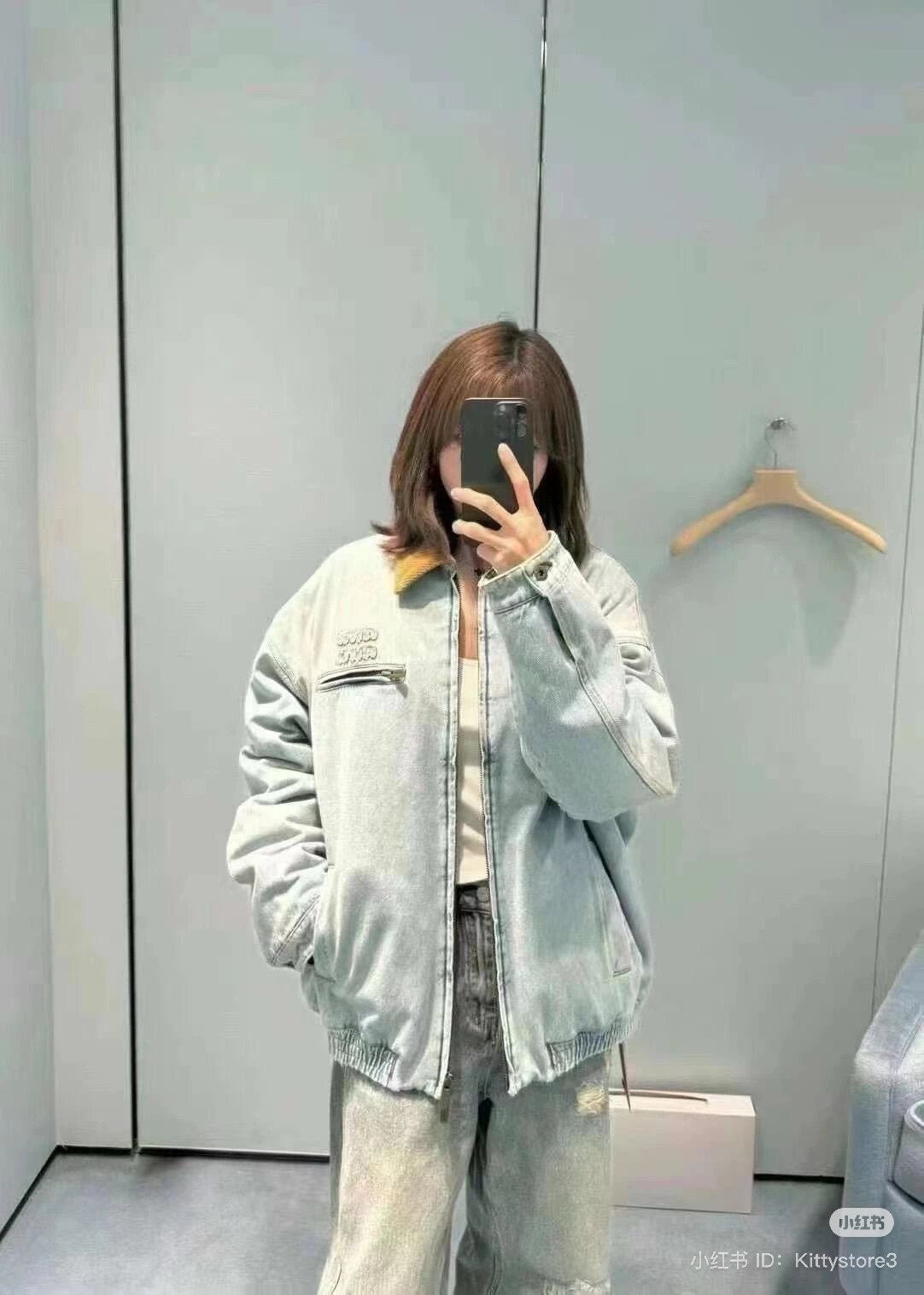 刘浩存同款 重磅贸y公司 miu男女同款单宁棉服外套 复古灯芯绒领 日本冈山水洗牛仔棉服