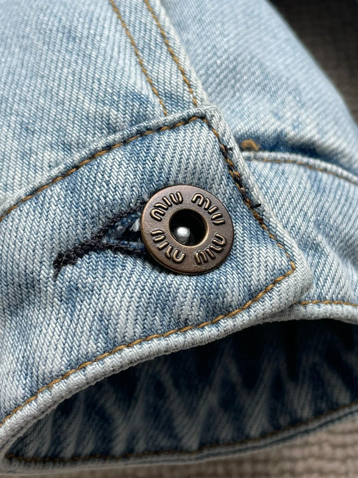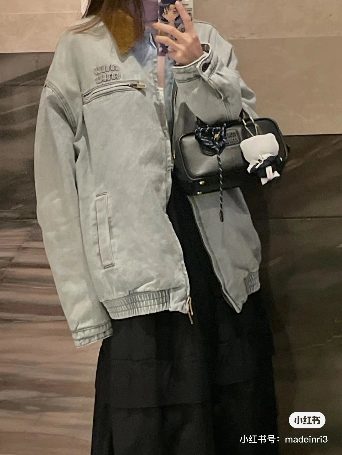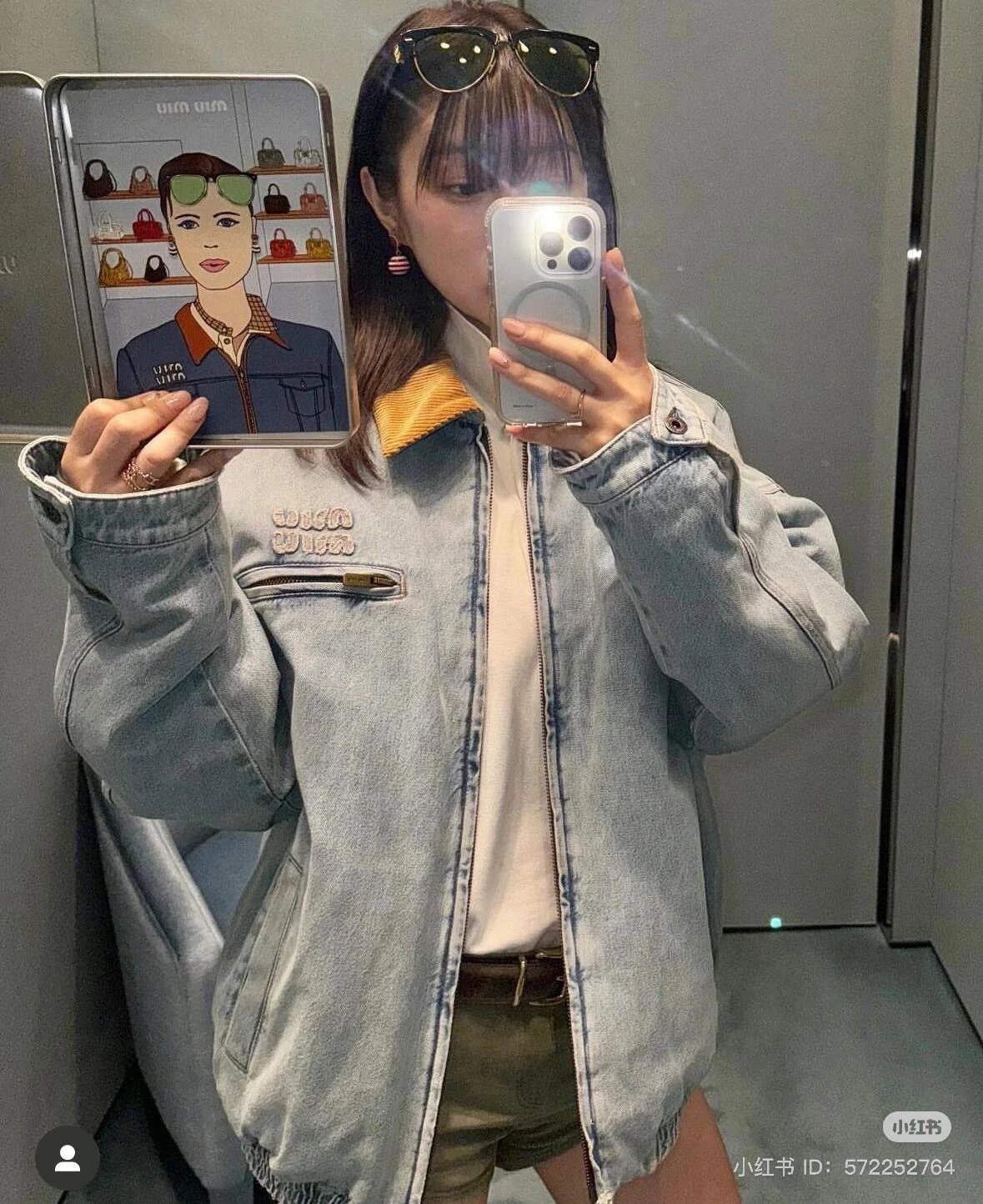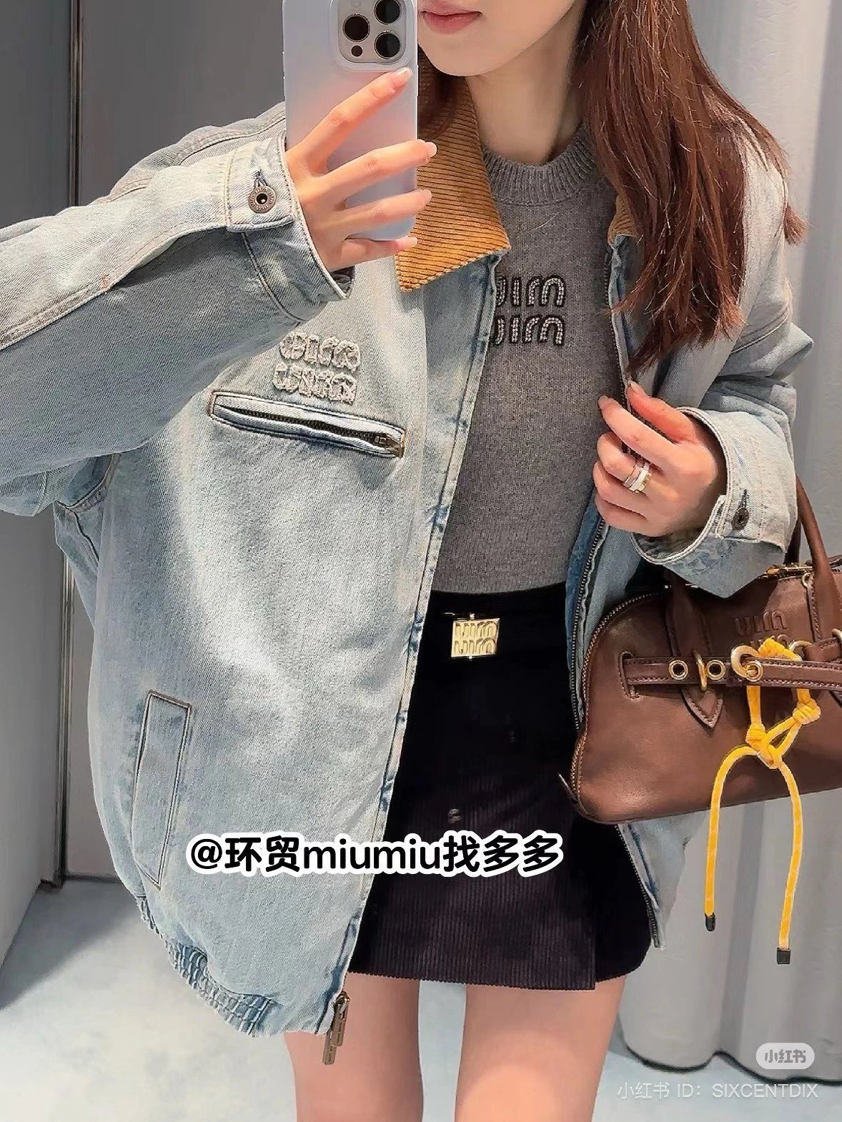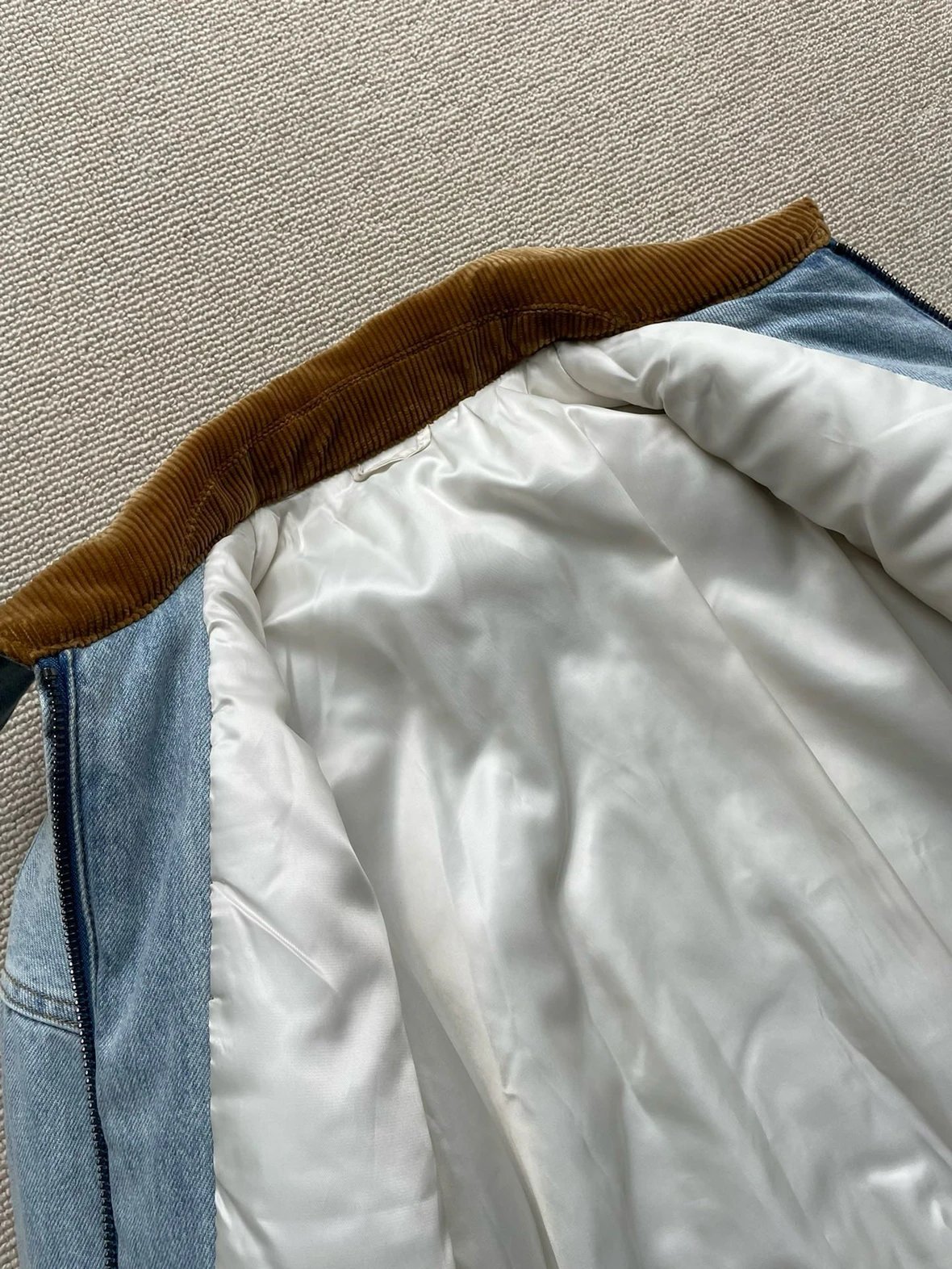 刘浩存同款 重磅贸y公司 miu男女同款单宁棉服外套 复古灯芯绒领 日本冈山水洗牛仔棉服