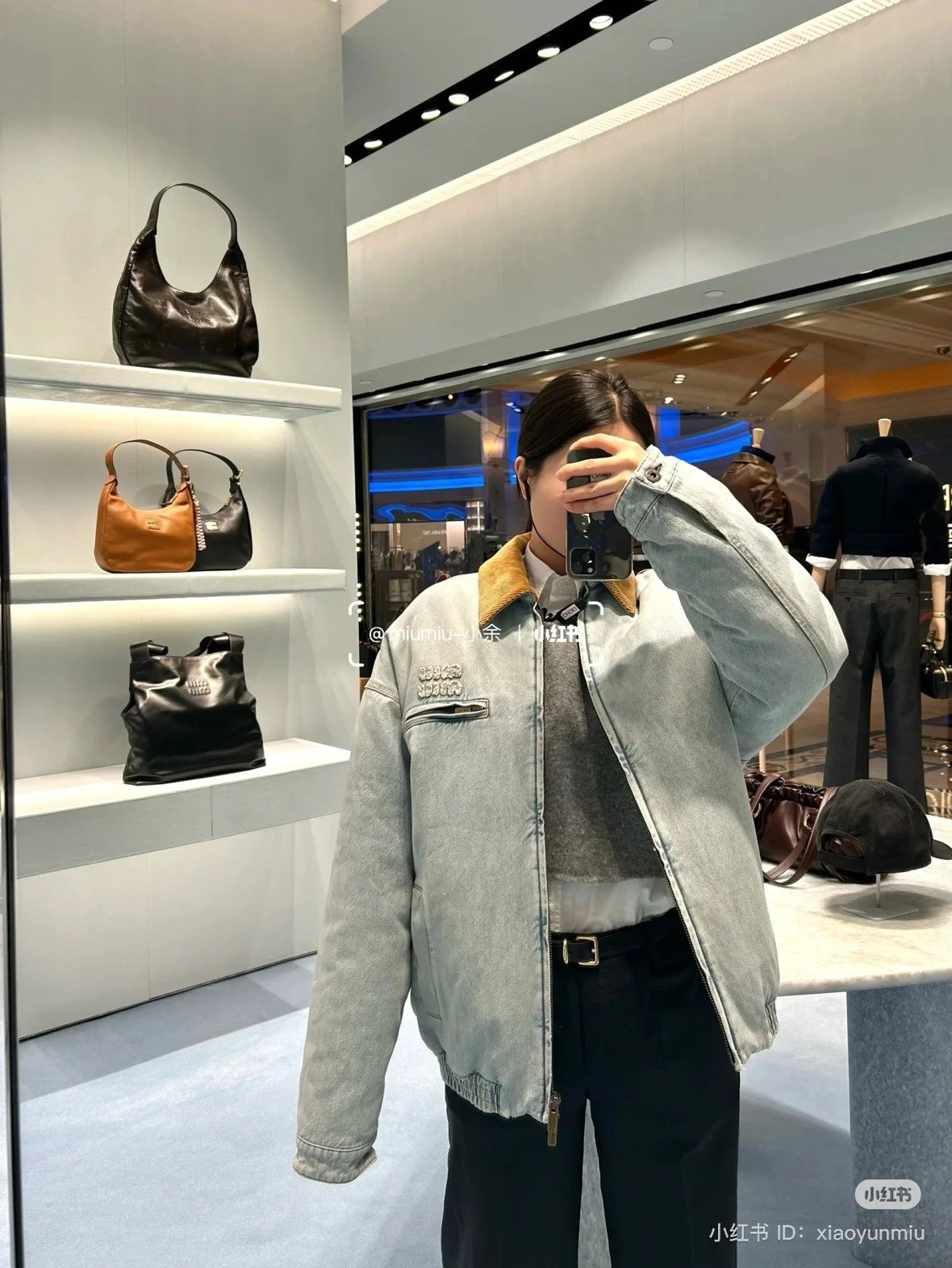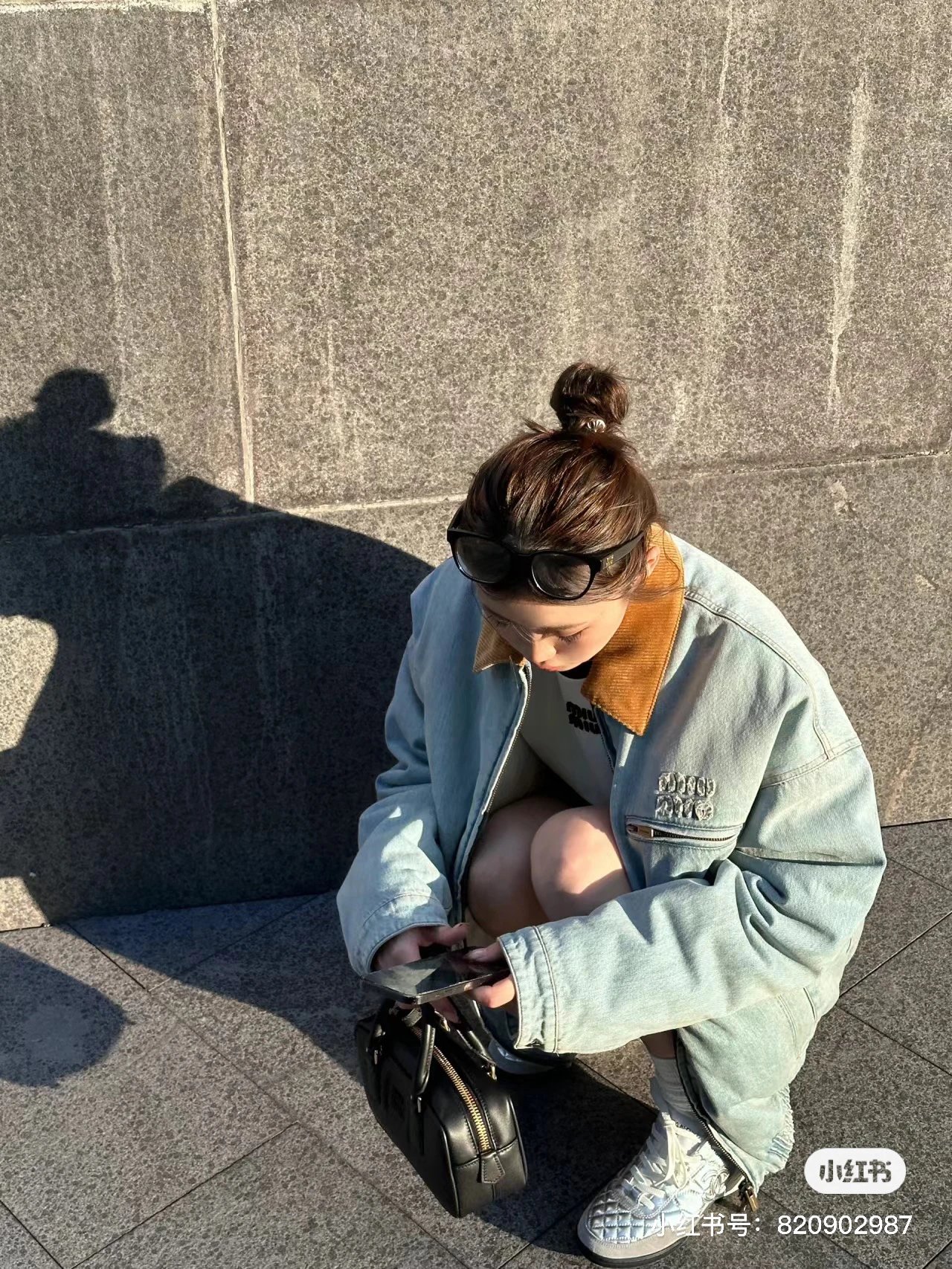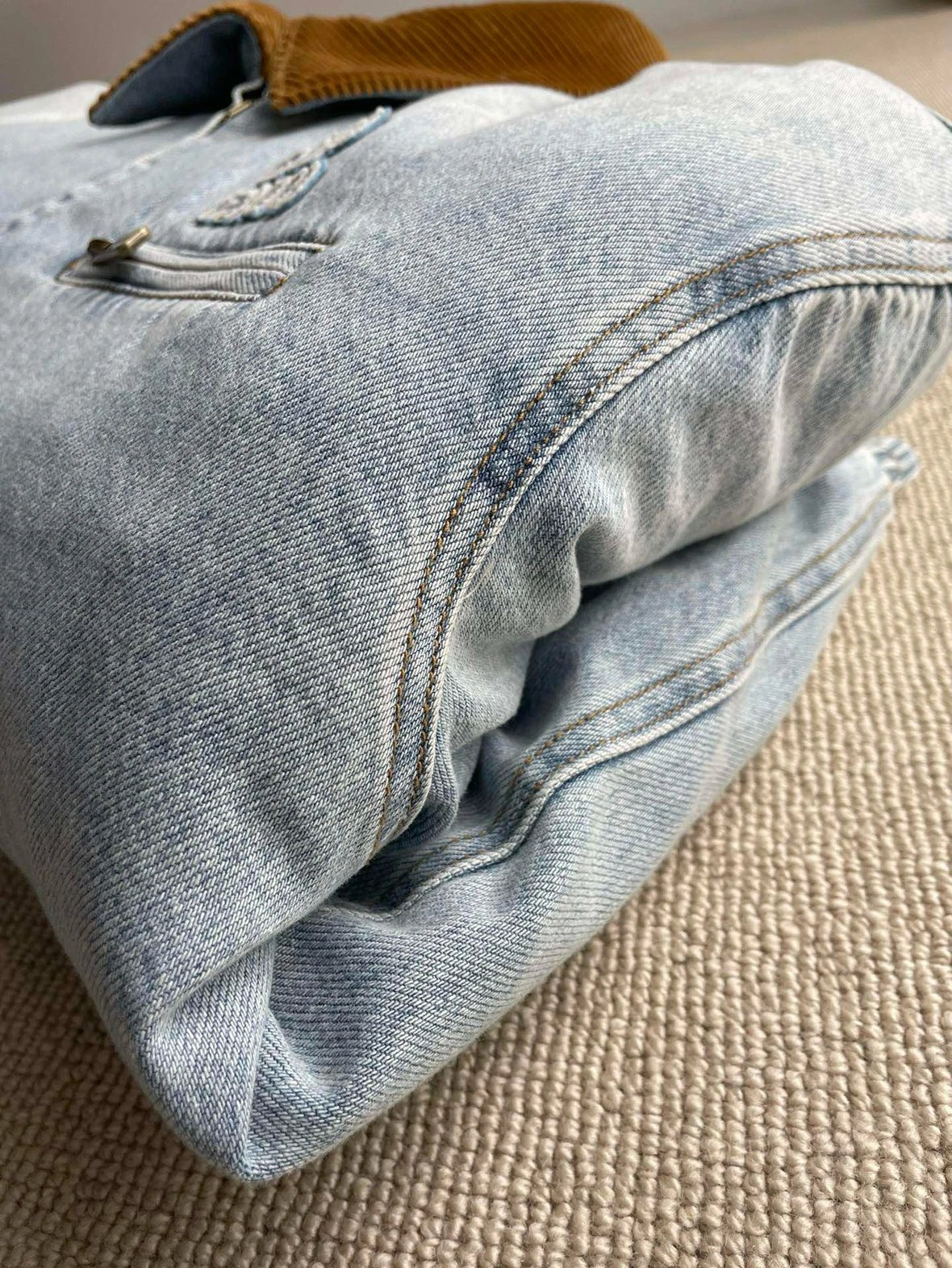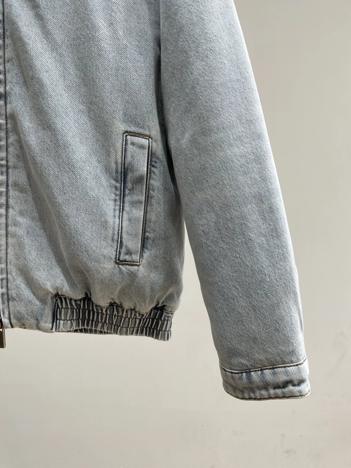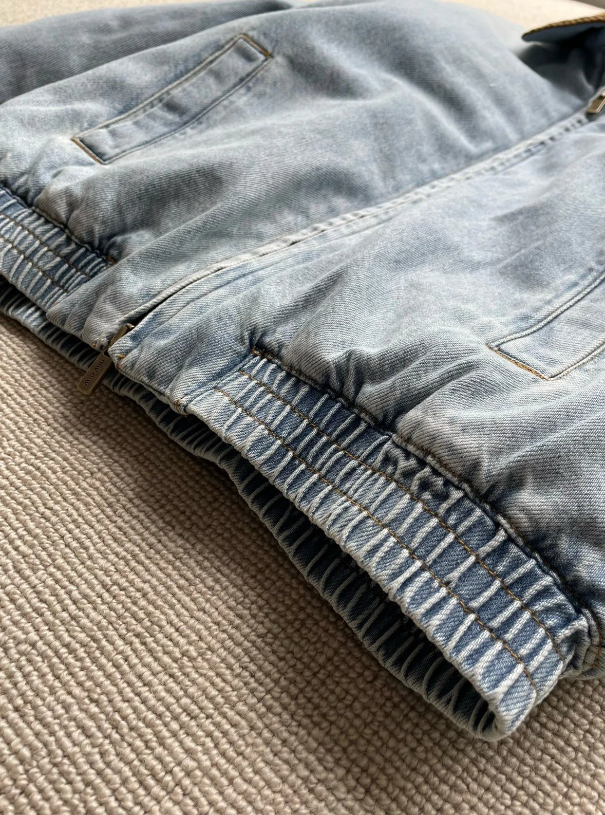 刘浩存同款 重磅贸y公司 miu男女同款单宁棉服外套 复古灯芯绒领 日本冈山水洗牛仔棉服