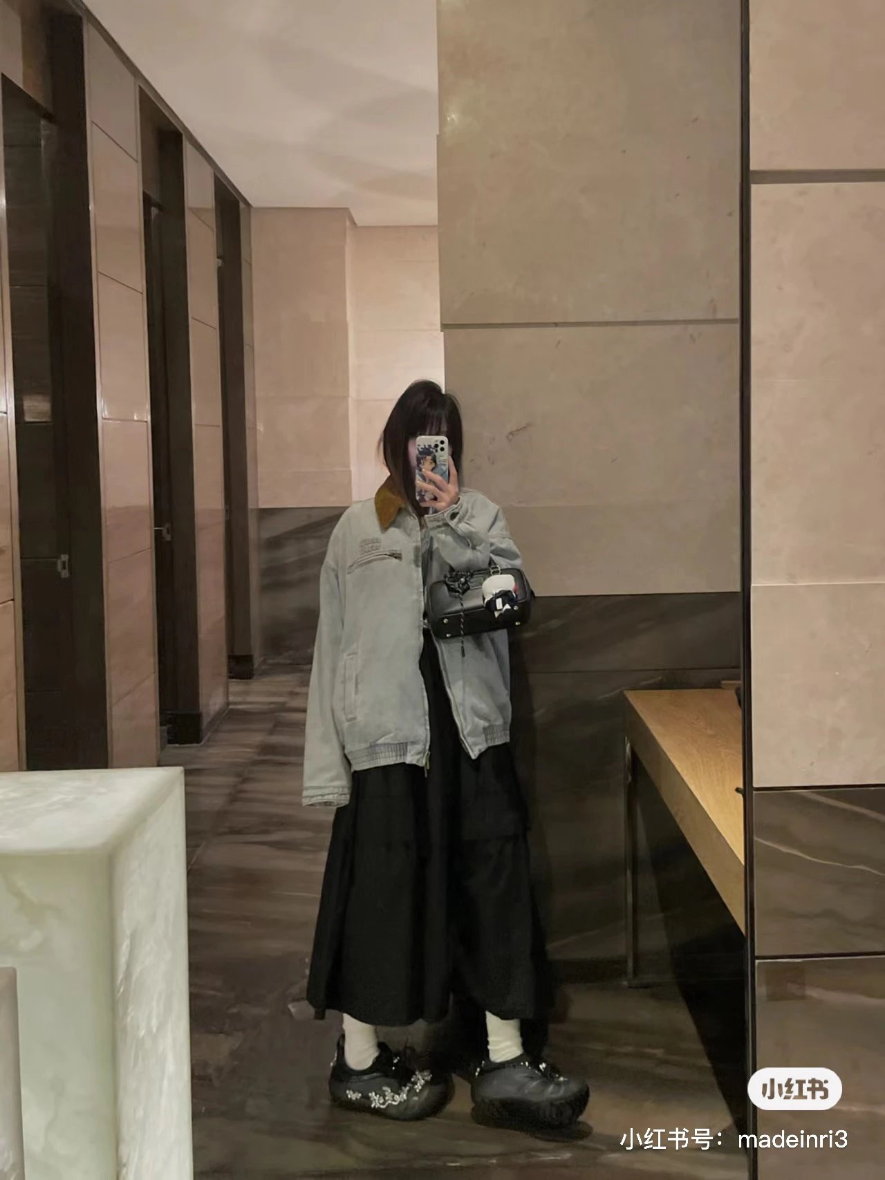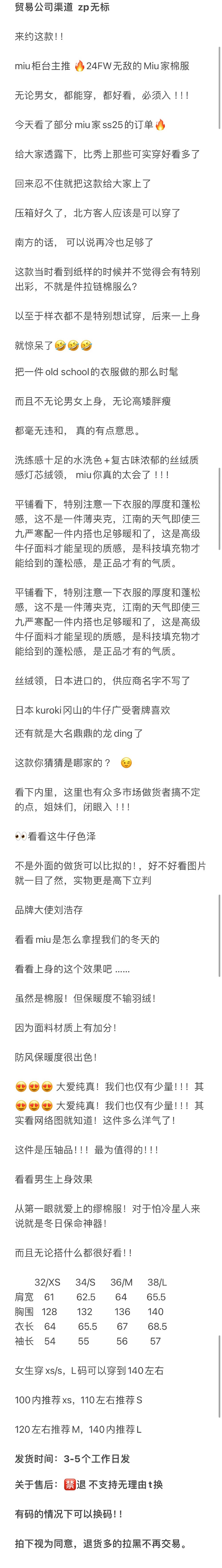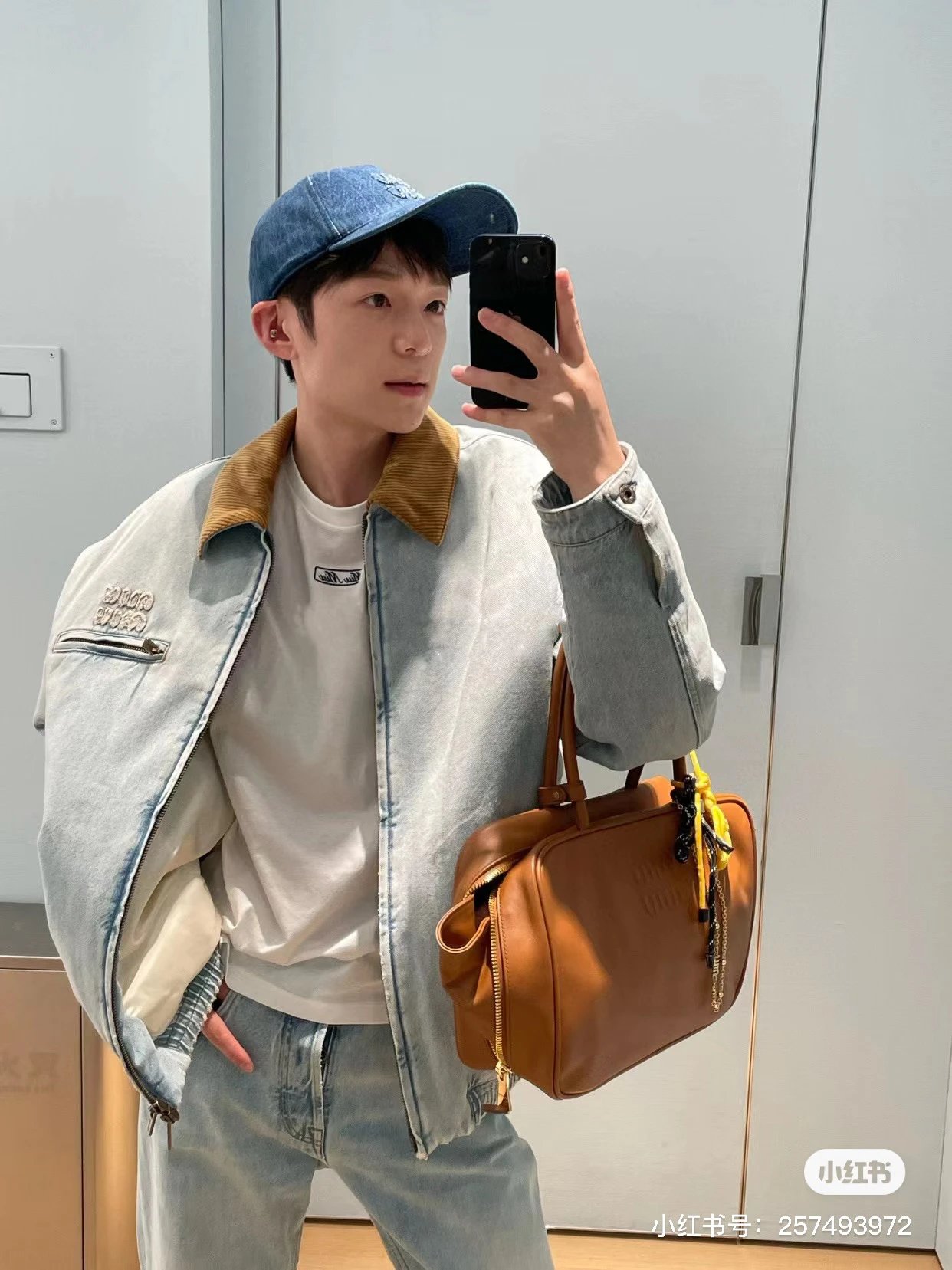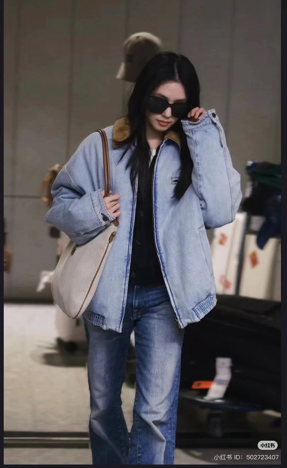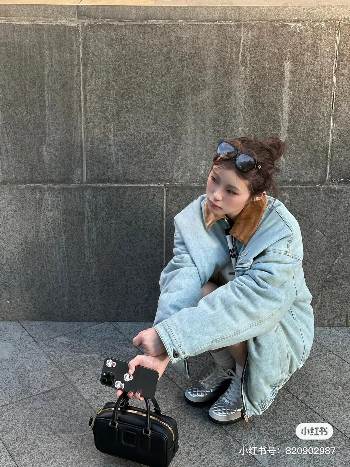 刘浩存同款 重磅贸y公司 miu男女同款单宁棉服外套 复古灯芯绒领 日本冈山水洗牛仔棉服