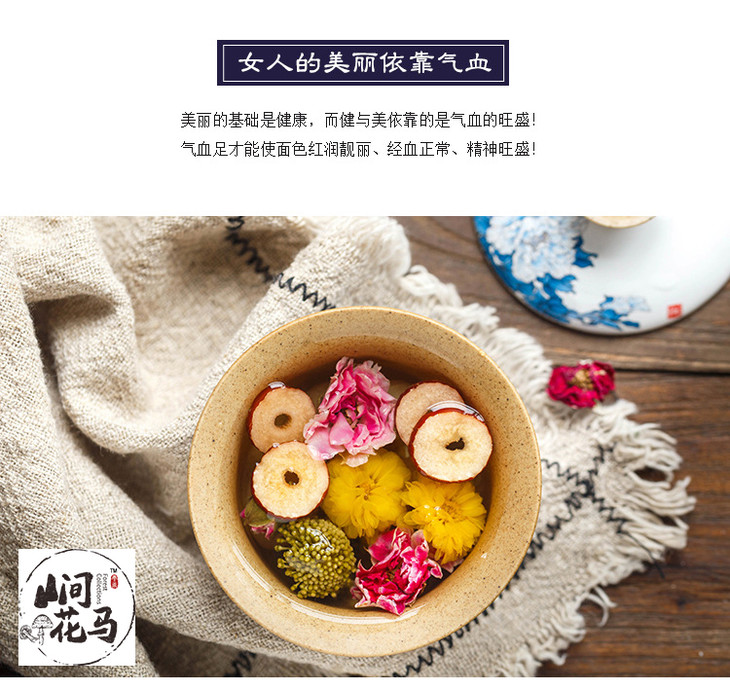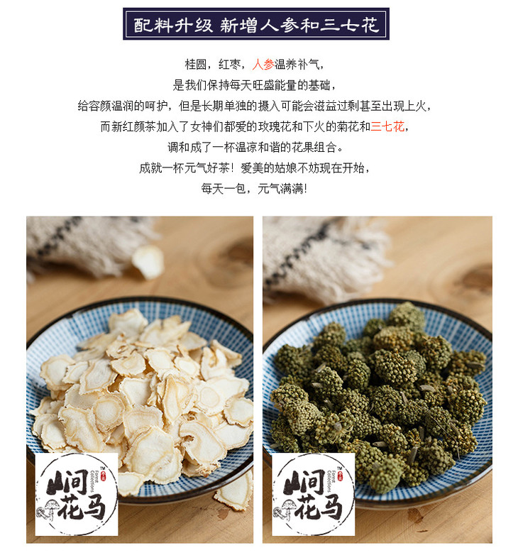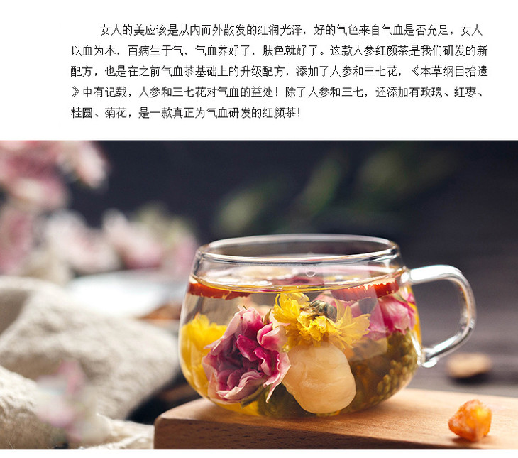 人参红颜茶10袋| 人参三七玫瑰桂圆枣片 滋养补气血 组合花草茶