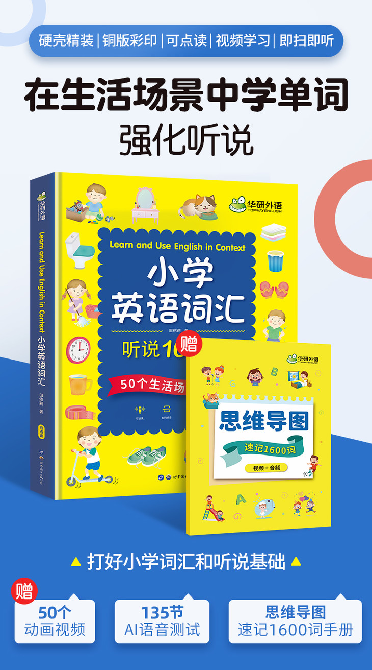 5.所有常用词汇和对话均配音频,由外教录制,发音纯正,即扫即听,方便学习,也可搭配“华研外语”点读笔读使用(点读笔需另购)。