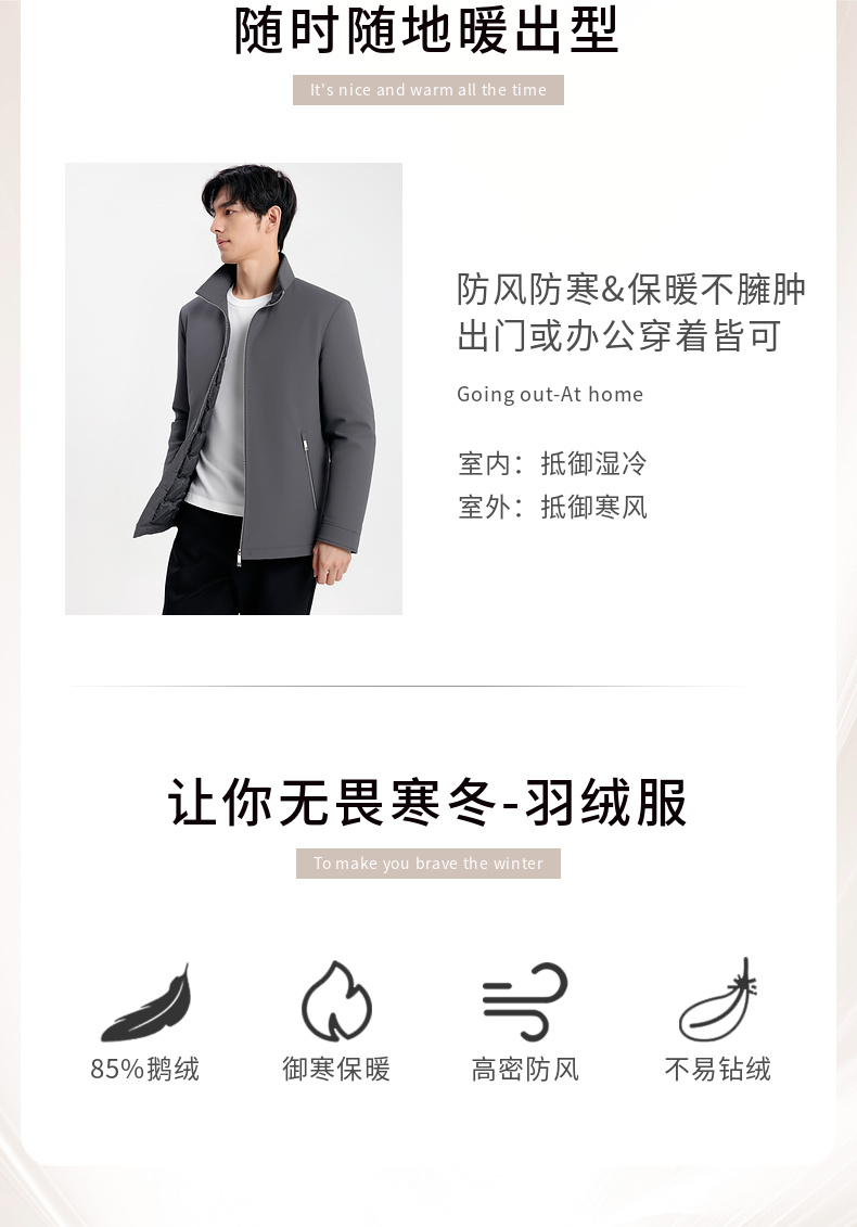 【含鹅绒】圣得西男简约立领轻暖鹅绒服2025秋季新款时尚百搭外套