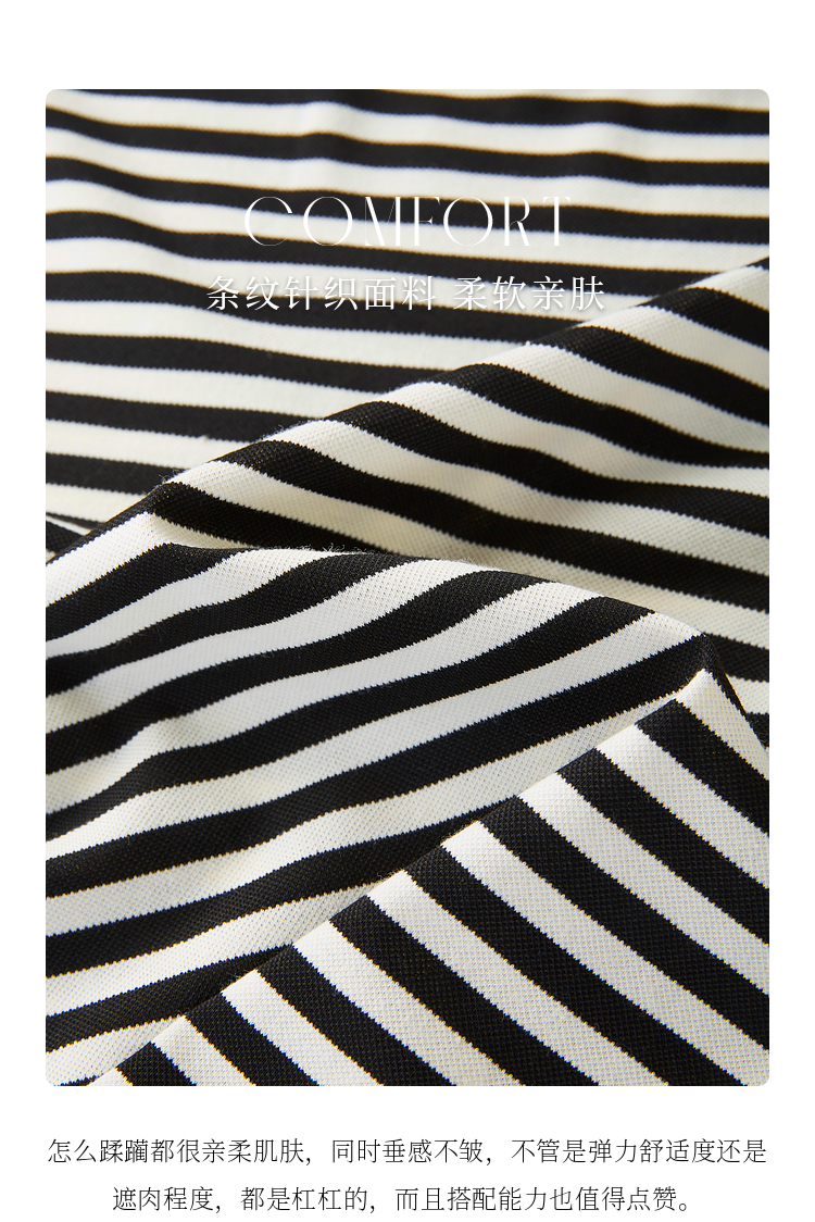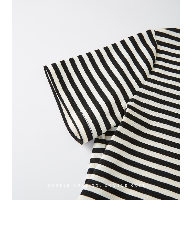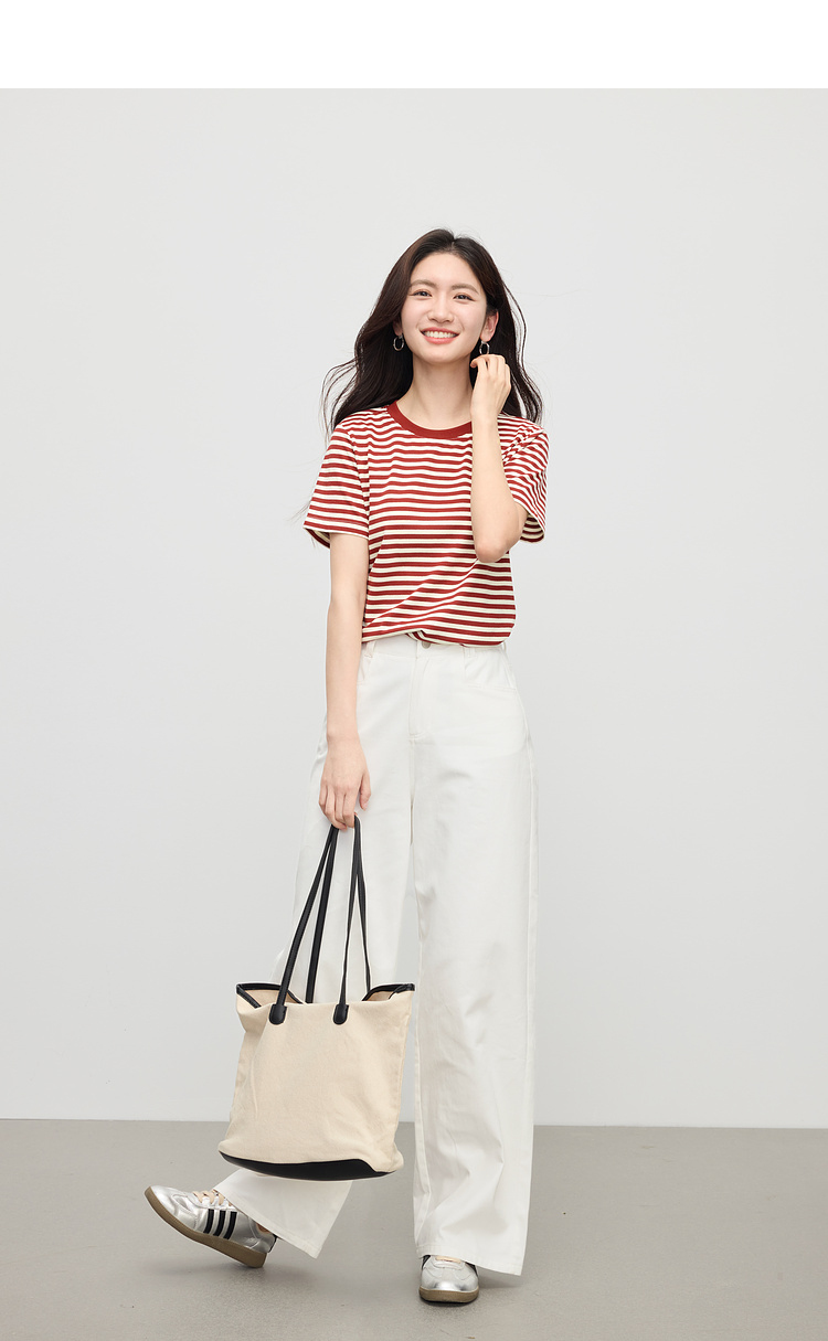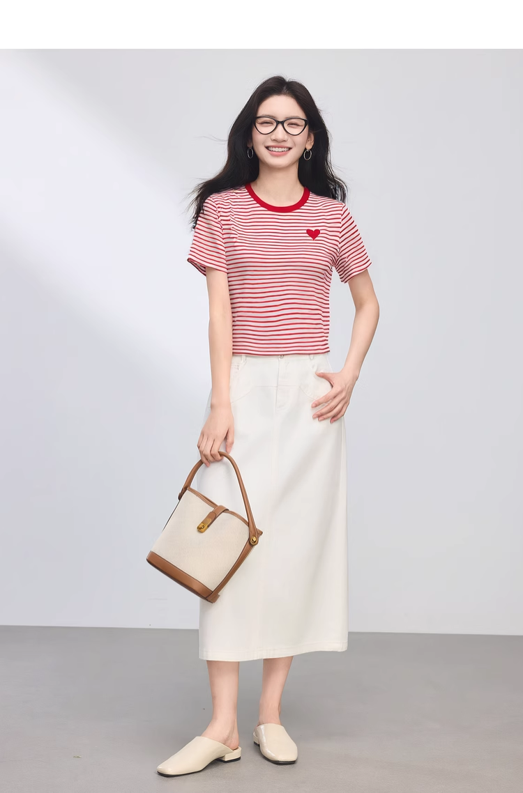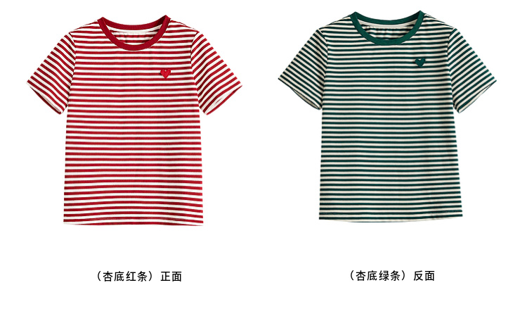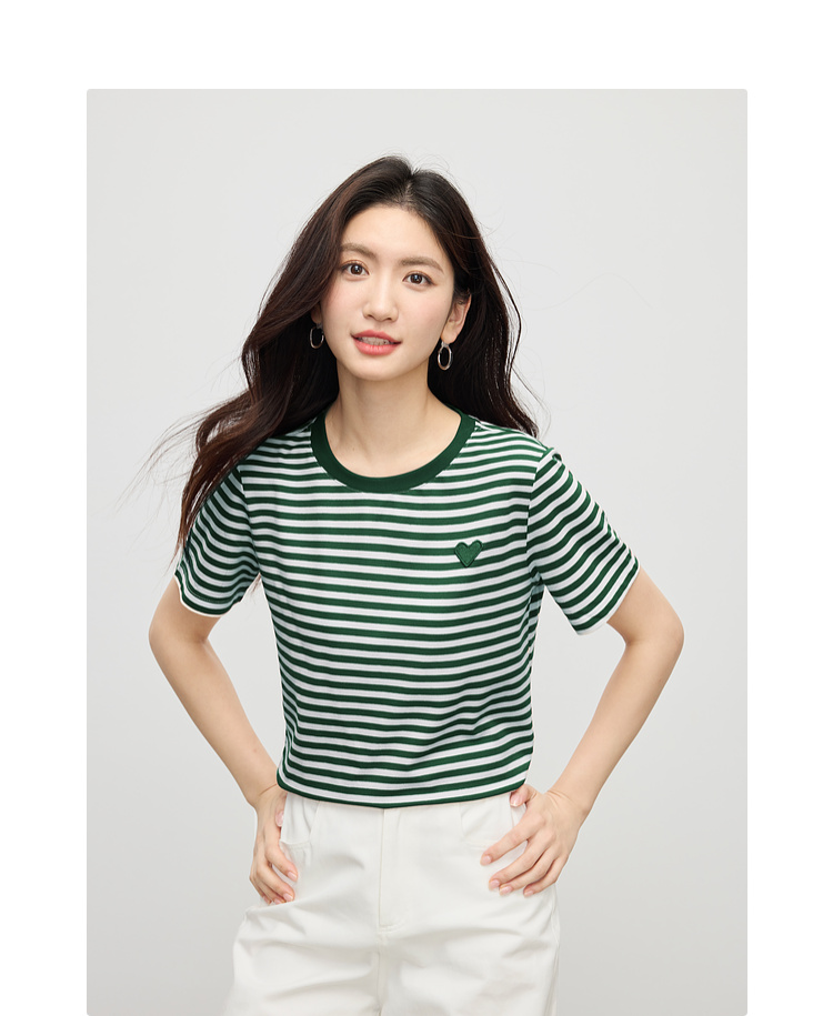 【周四狂欢价】熙世界黑白条纹t恤女短袖2025夏季新款休闲爱心刺绣圆领正肩上衣