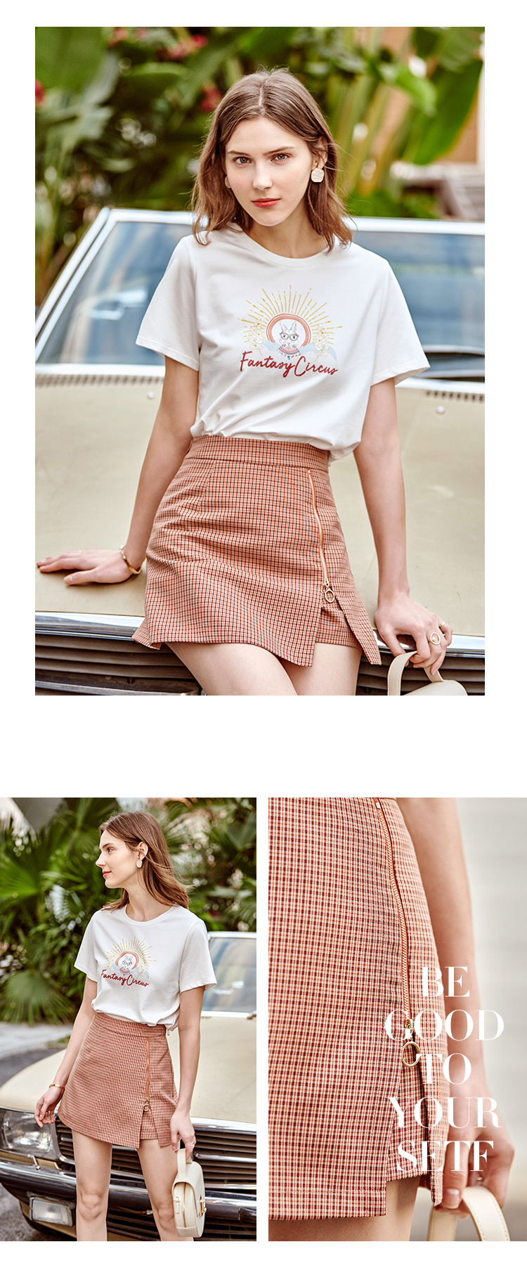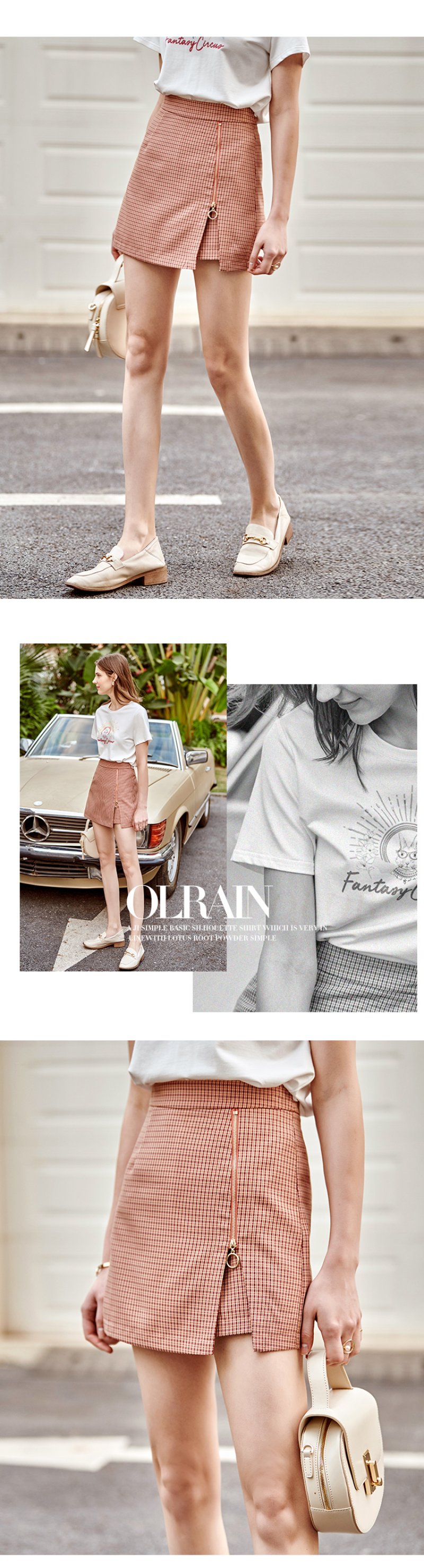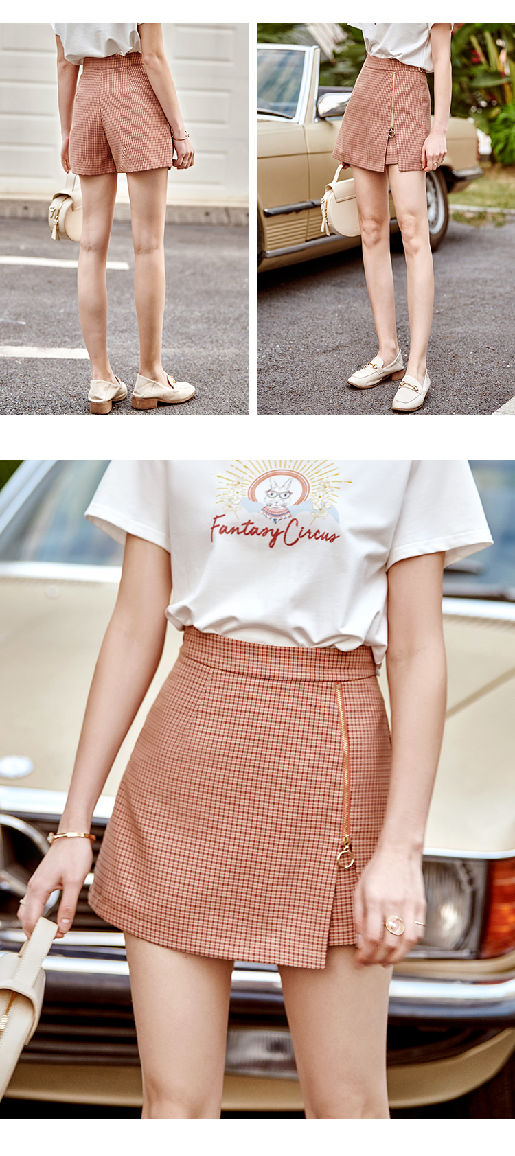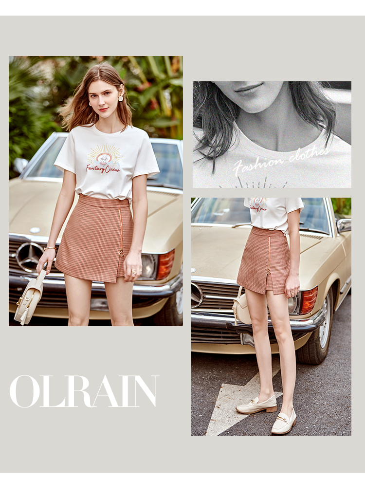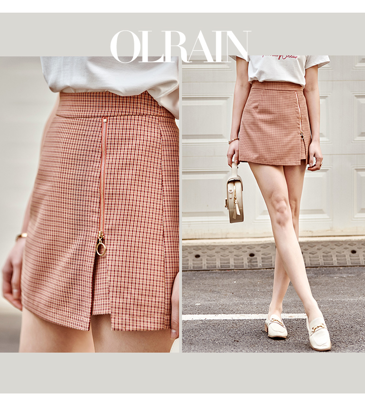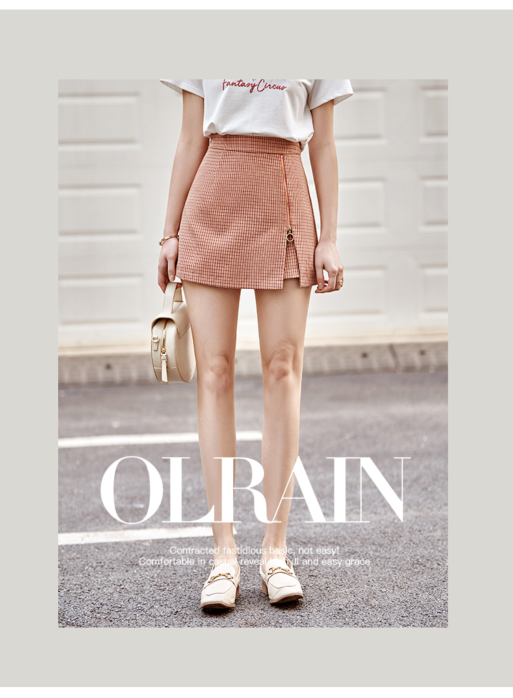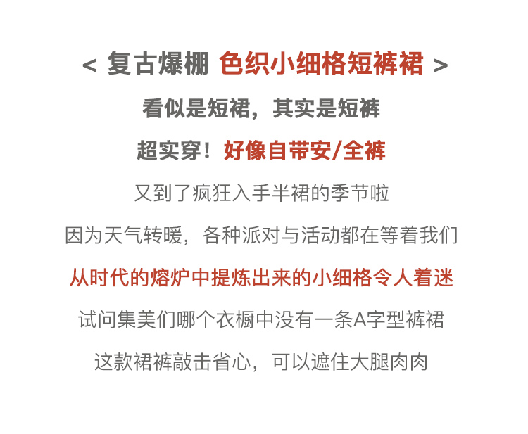 【孤品捡漏欧芮儿色织细格半身裙2021春夏新款时髦复古小个子开衩A字短裤裙