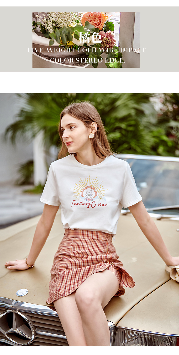 欧芮儿2025夏季新款创意珠片绣短袖卡通图案T恤女休闲宽松上衣