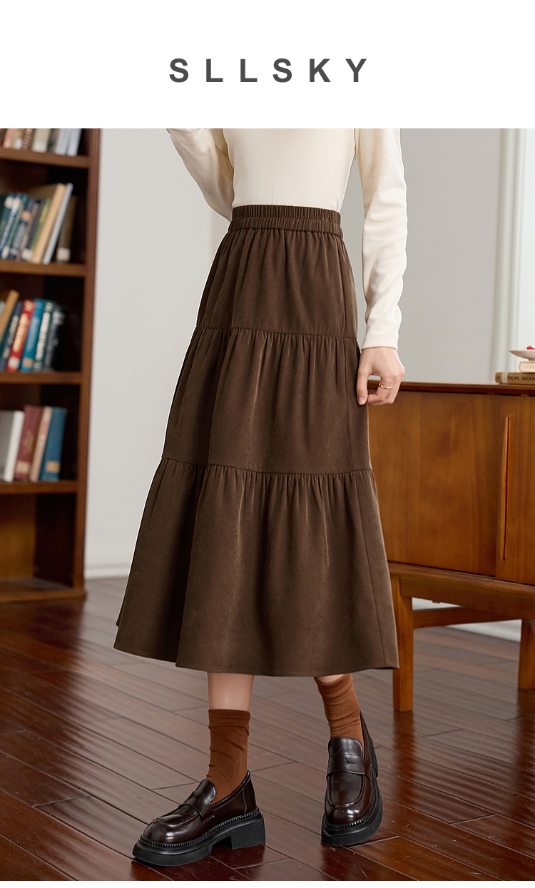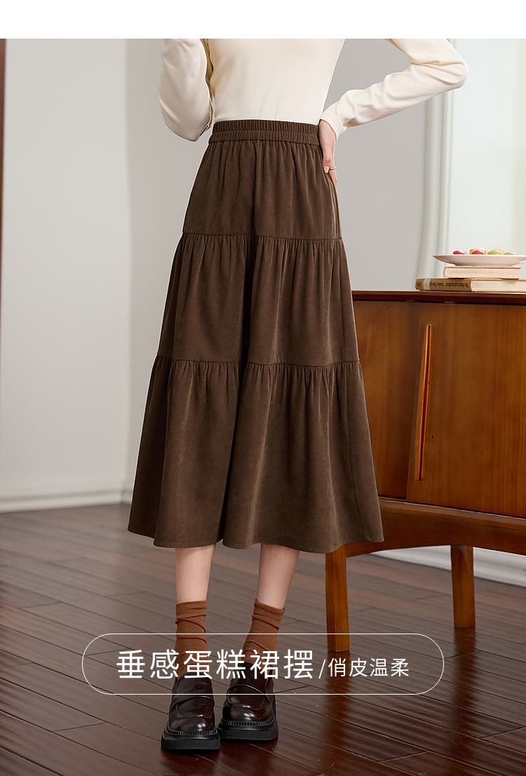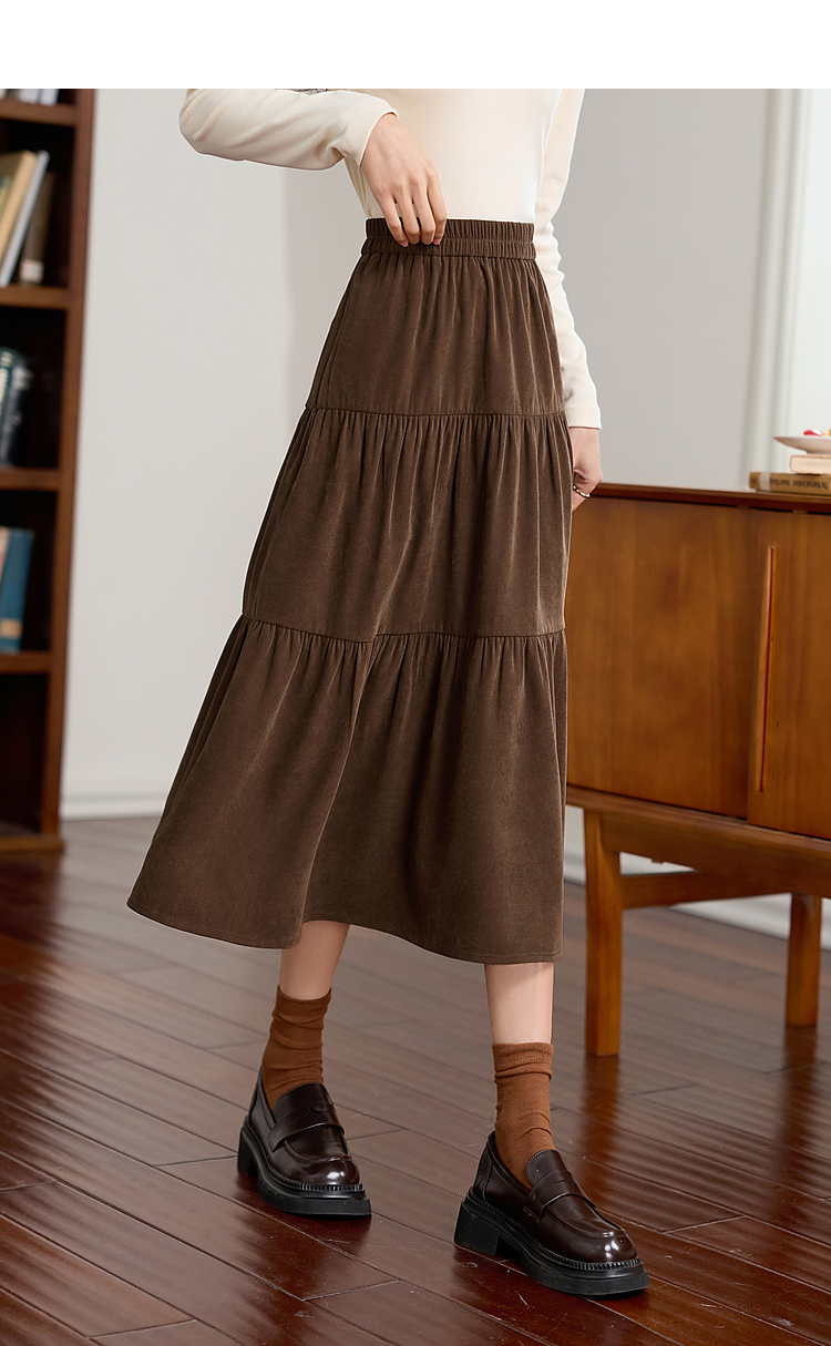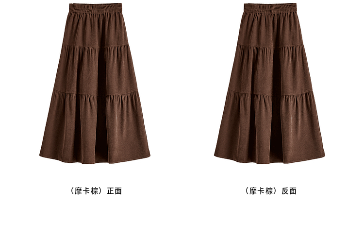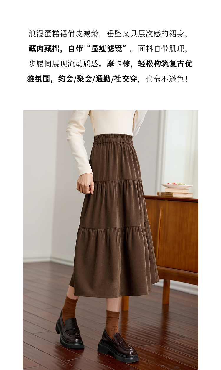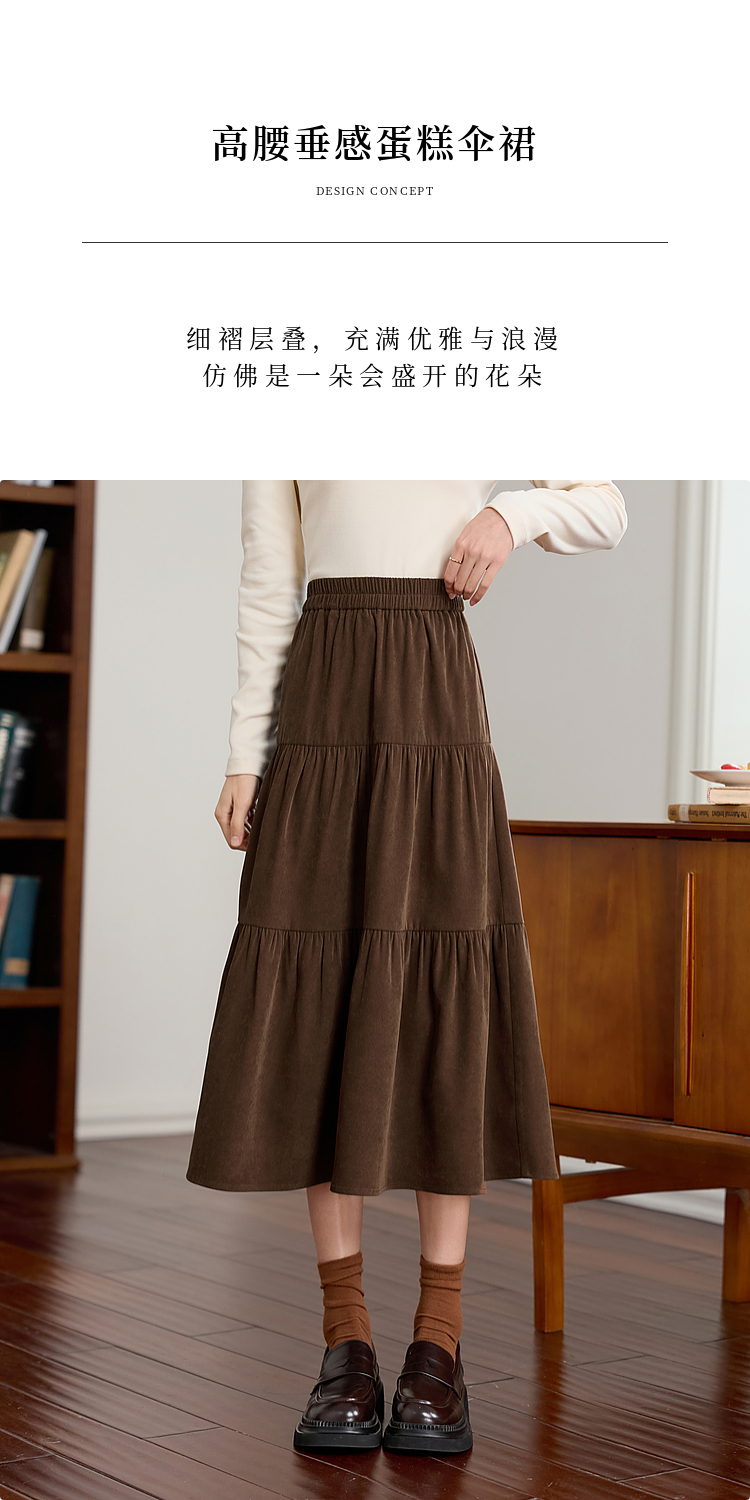 【年终特卖】熙世界复古棕色磨毛半身裙秋冬2025新款高腰中长款a字蛋糕伞裙