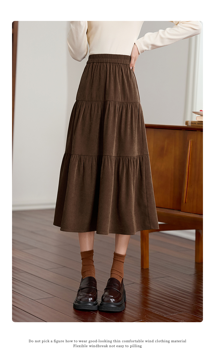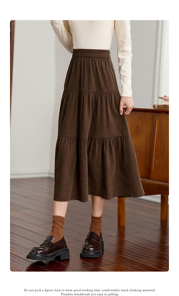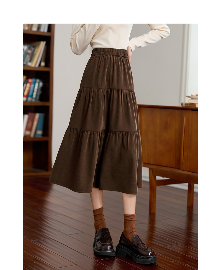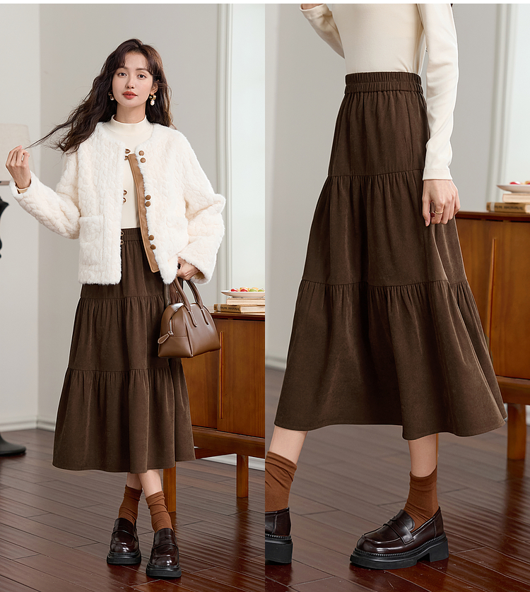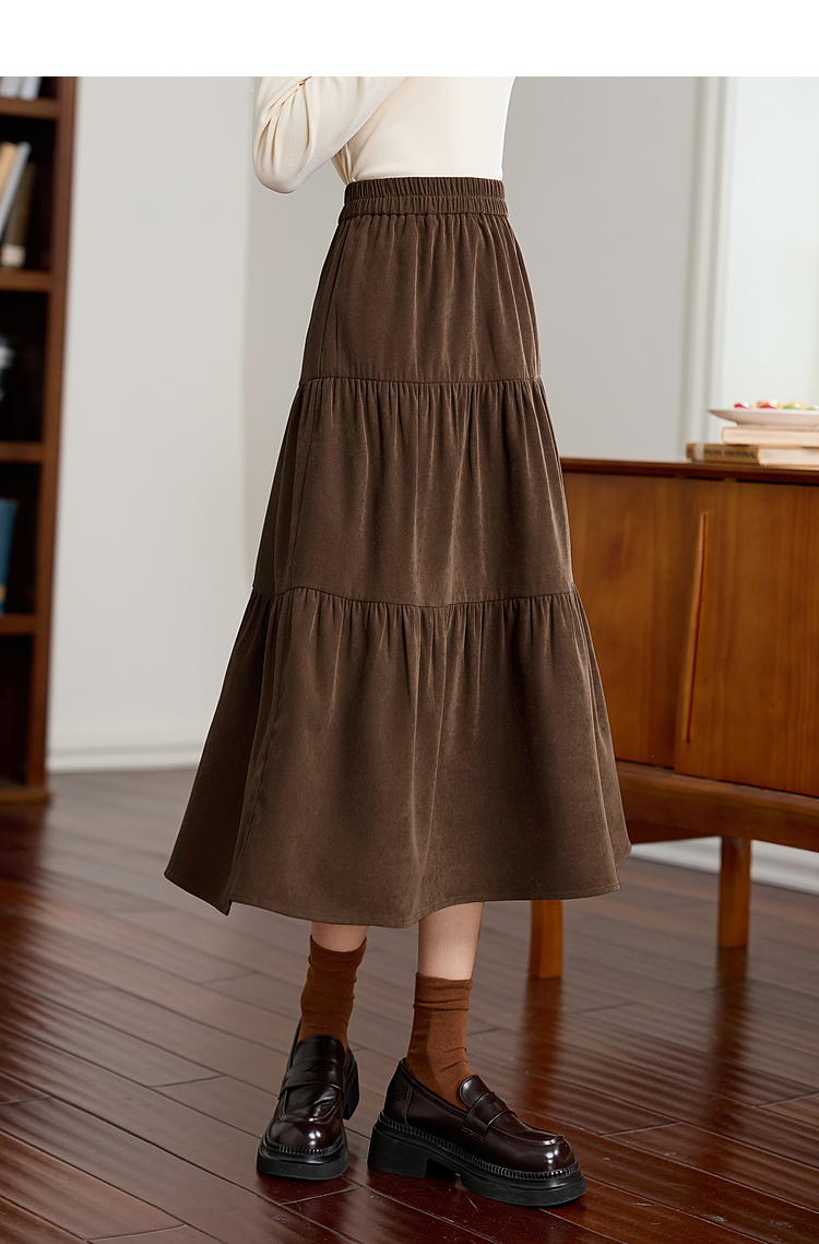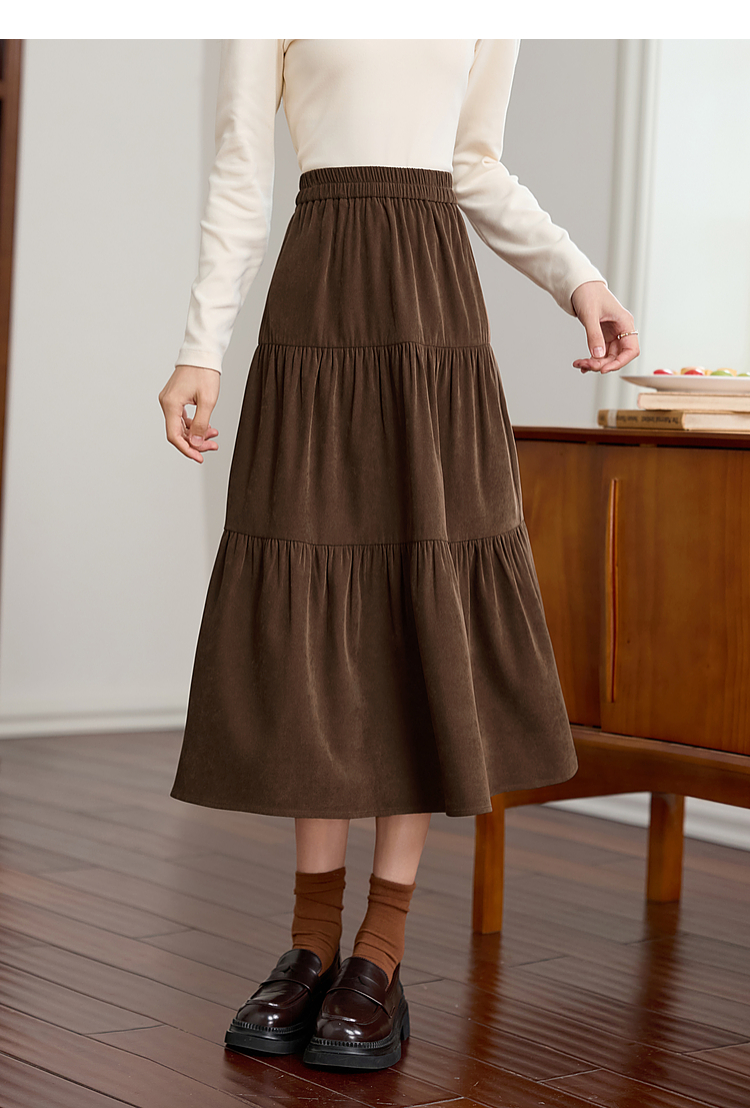 【年终特卖】熙世界复古棕色磨毛半身裙秋冬2025新款高腰中长款a字蛋糕伞裙