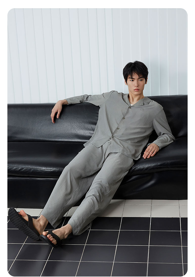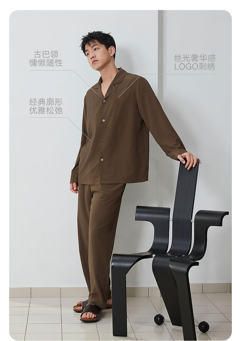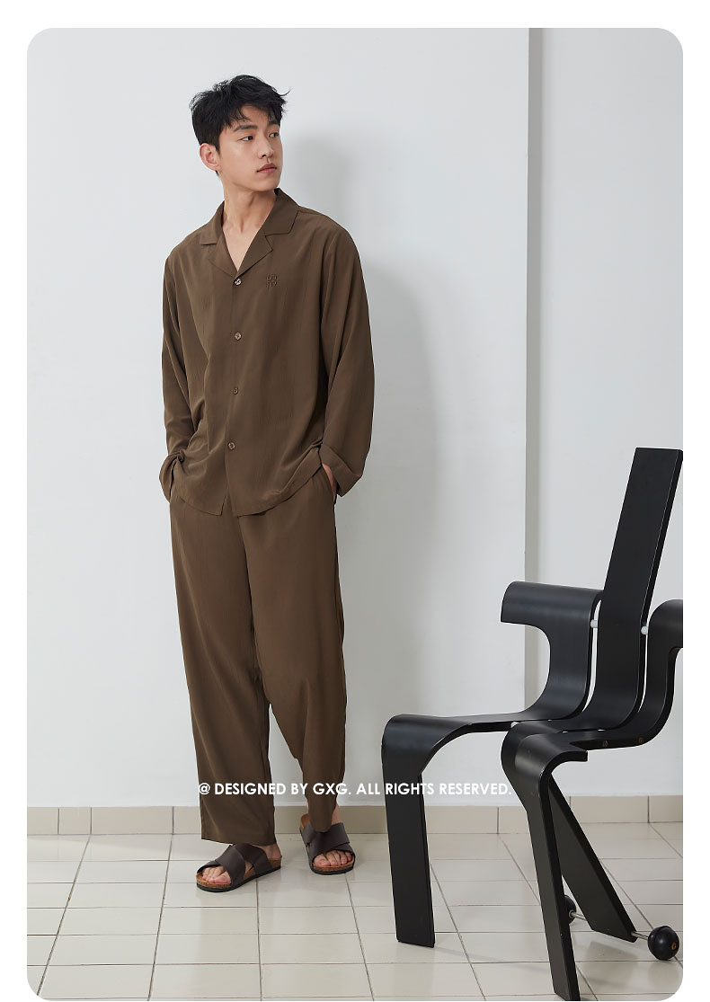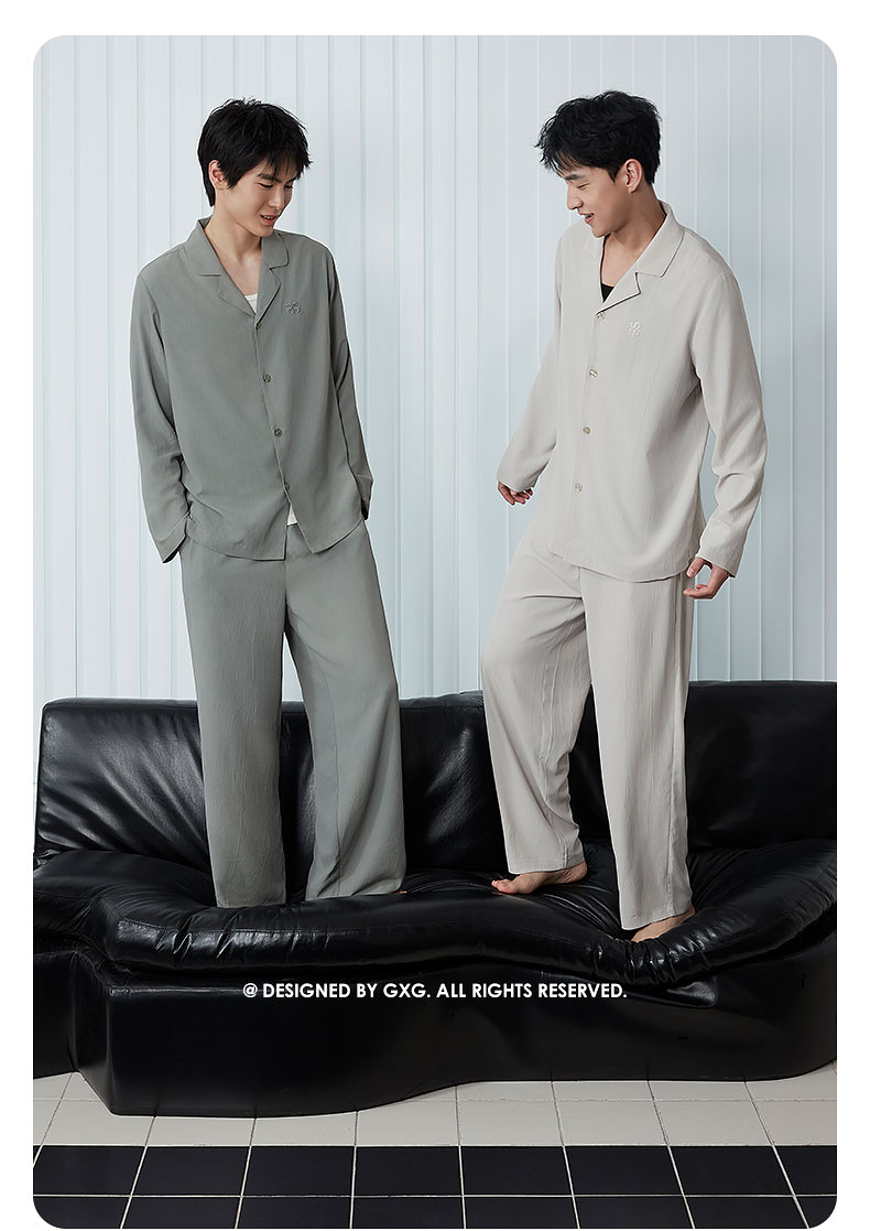 GXG男士家居服 柔滑冰丝感翻领长袖睡衣男居家套装 25年春季新品