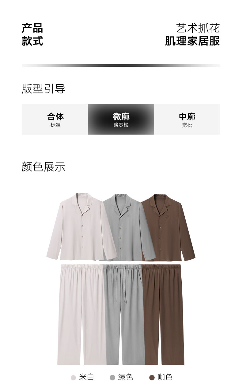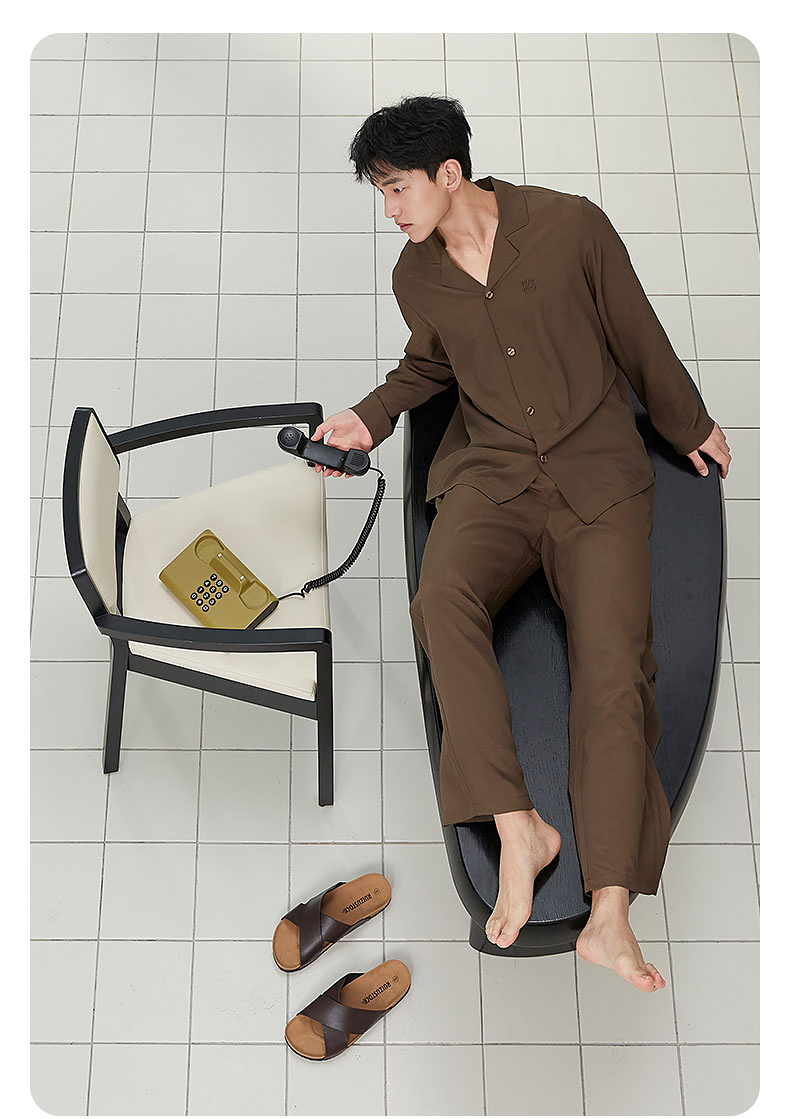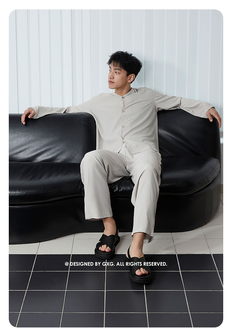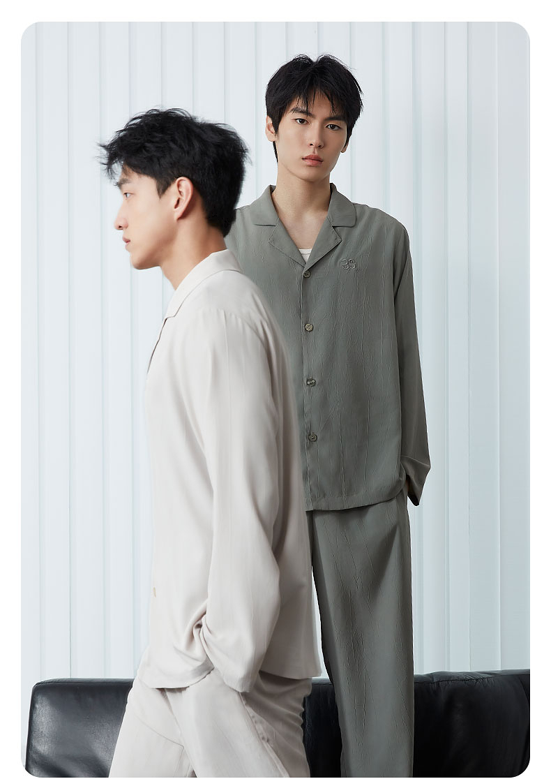 GXG男士家居服 柔滑冰丝感翻领长袖睡衣男居家套装 25年春季新品