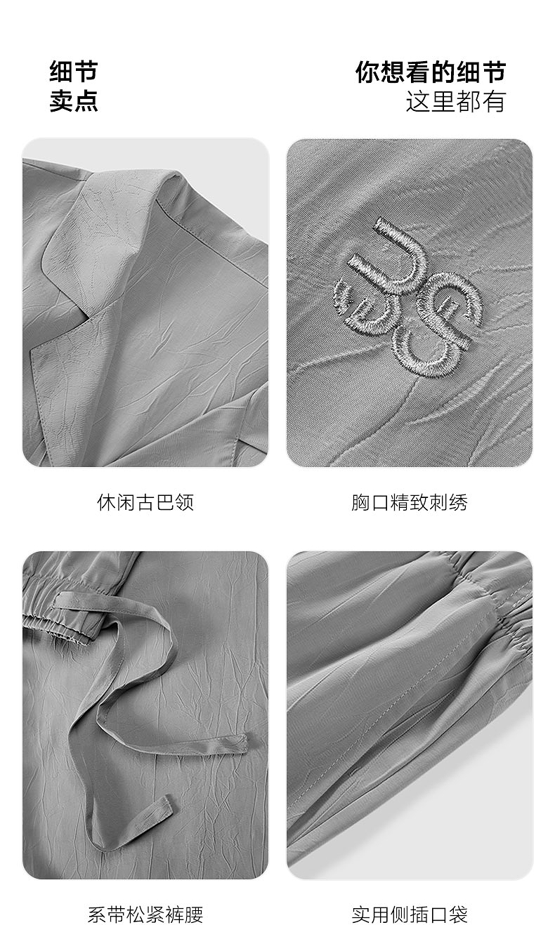 GXG男士家居服 冰丝感宽松暗条纹短袖睡衣套装男 25年春夏新品