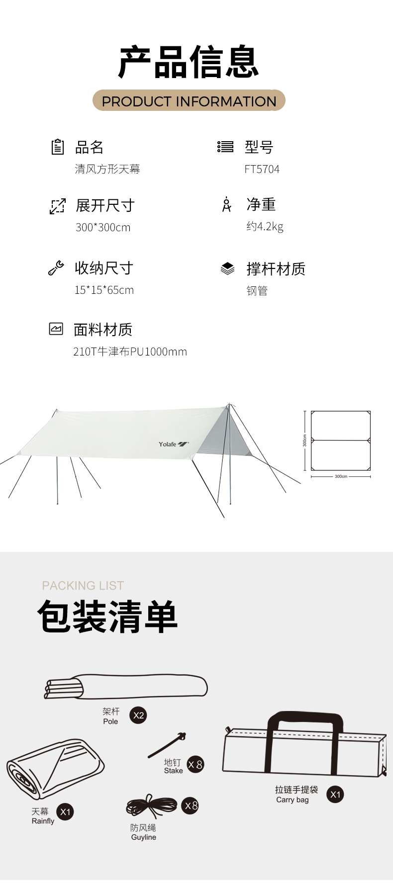 悠莱弗清风方形天幕(加厚加粗款)FT5704