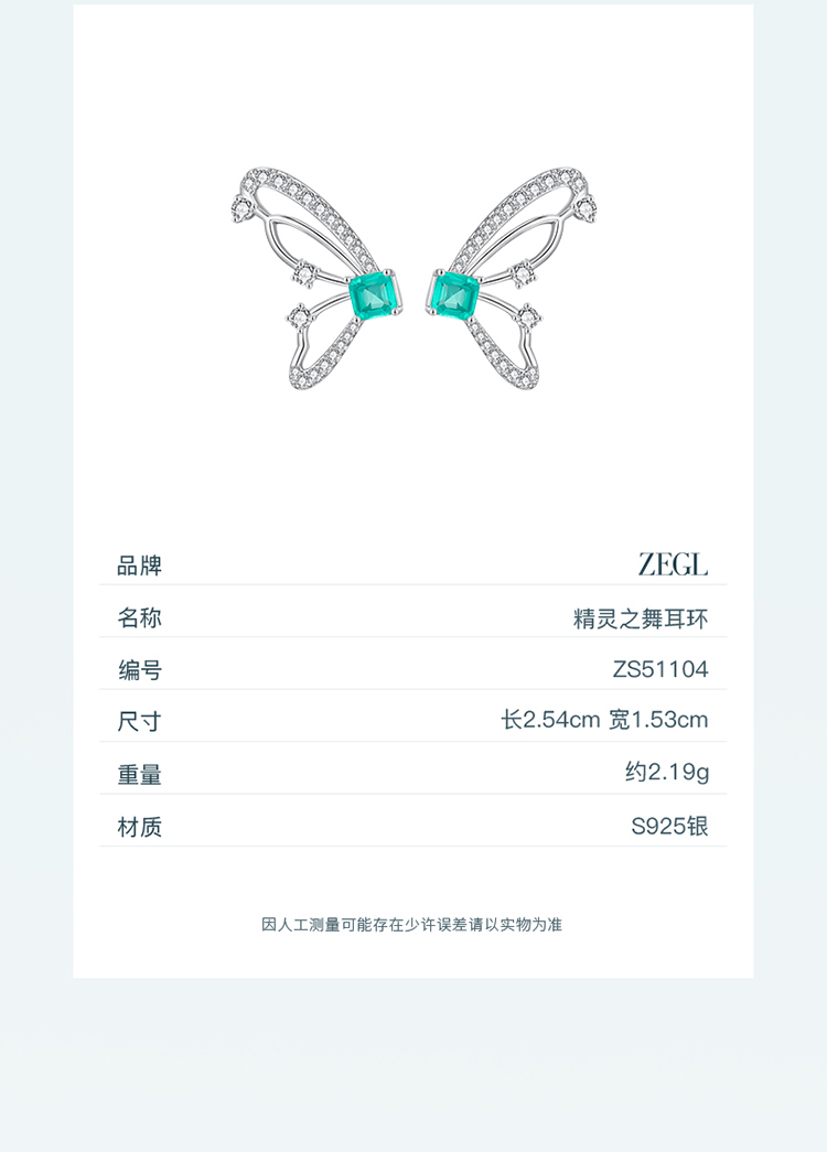 ZEGL设计师精灵之舞系列蝴蝶耳环女2024新款仙女耳钉925银针耳饰