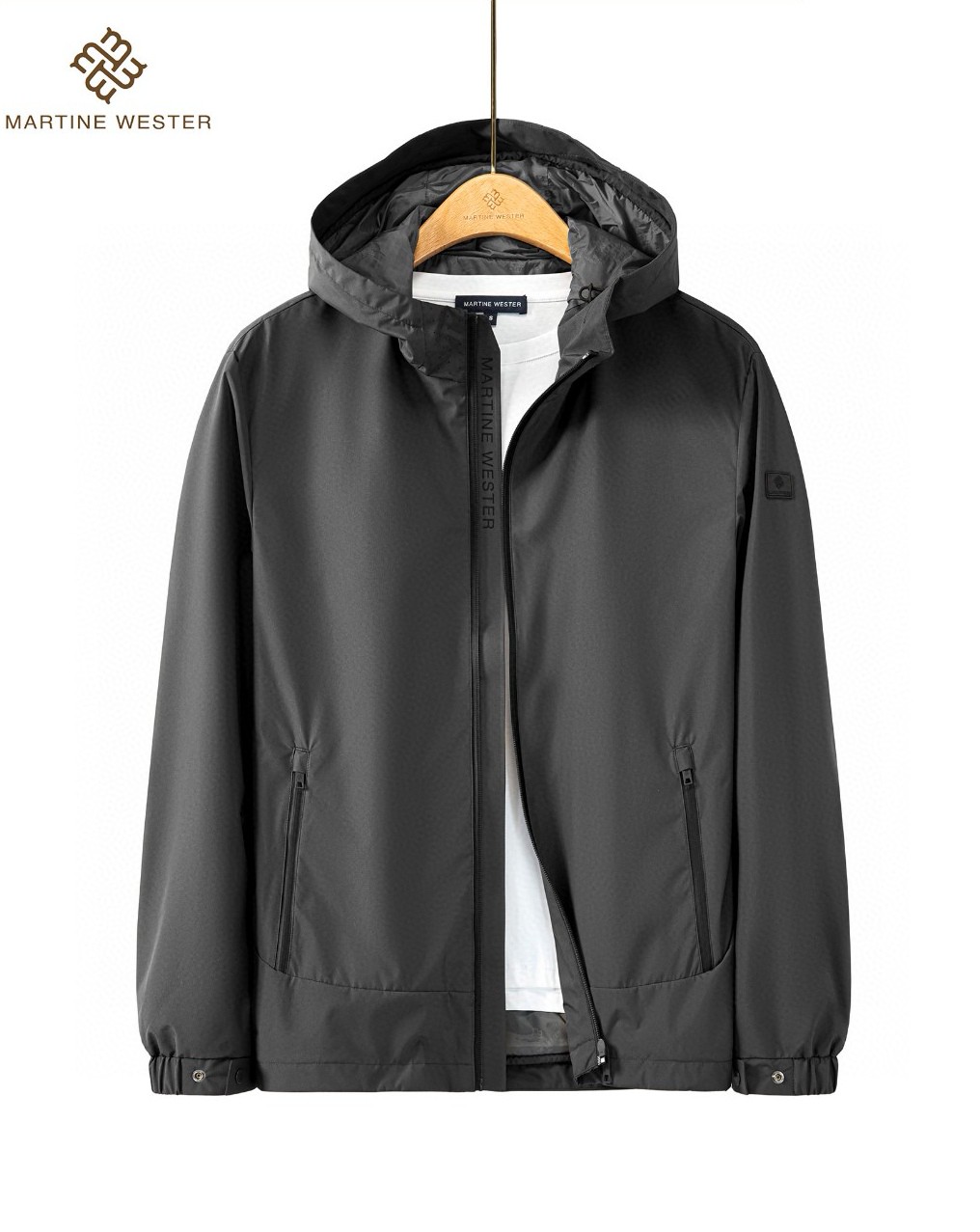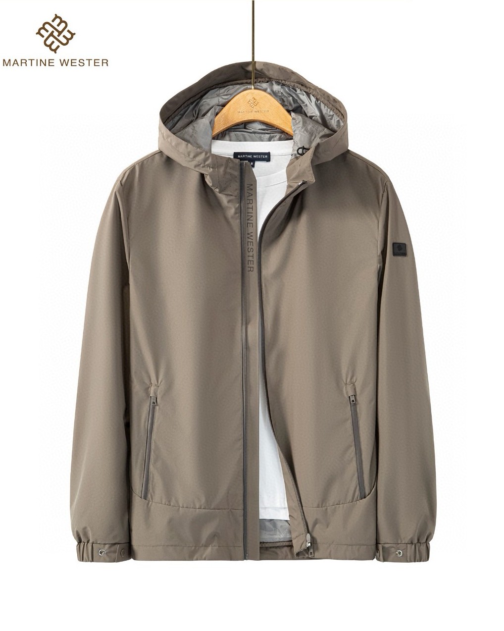Martine Wester 男式密可柔防水面料连帽外套; 面料精选防水面料,经典连帽夹克外套,衣身留有适当松量,穿着轻便舒适!