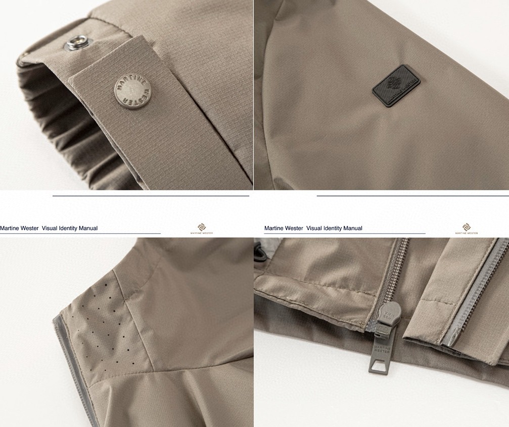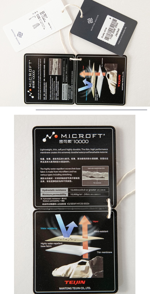 面料精选防水面料,风格明显,强调十足,回复性好穿着舒适,反面采用烫膜工艺,在不影响本身手感的前提下覆膜,膜采用的是高透膜,防风防水的同时又带有透气性。 门襟拉链采用YKK品牌定制拉片