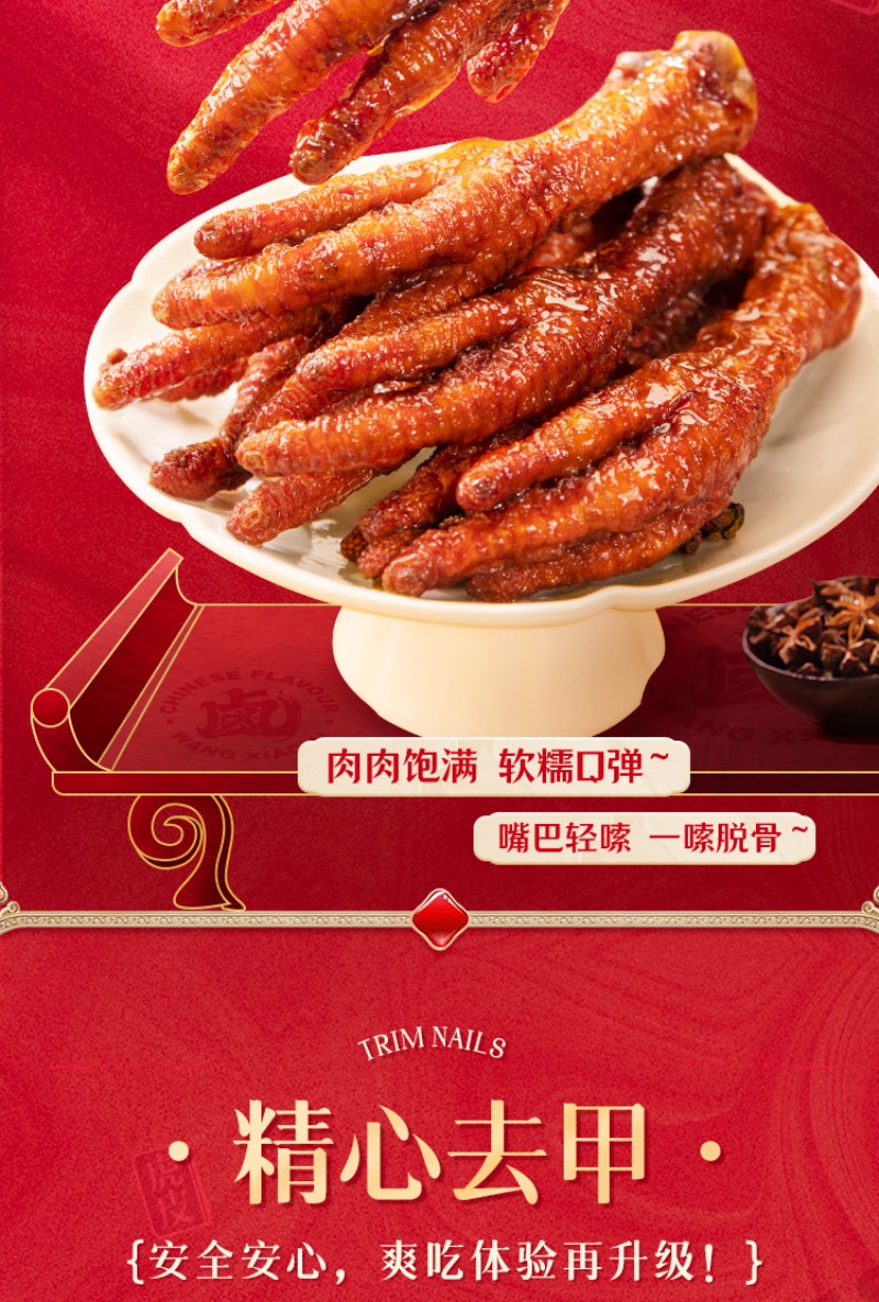 王小卤虎皮凤爪 微辣味210g 鸡爪卤鸡爪休闲零食 独立包装