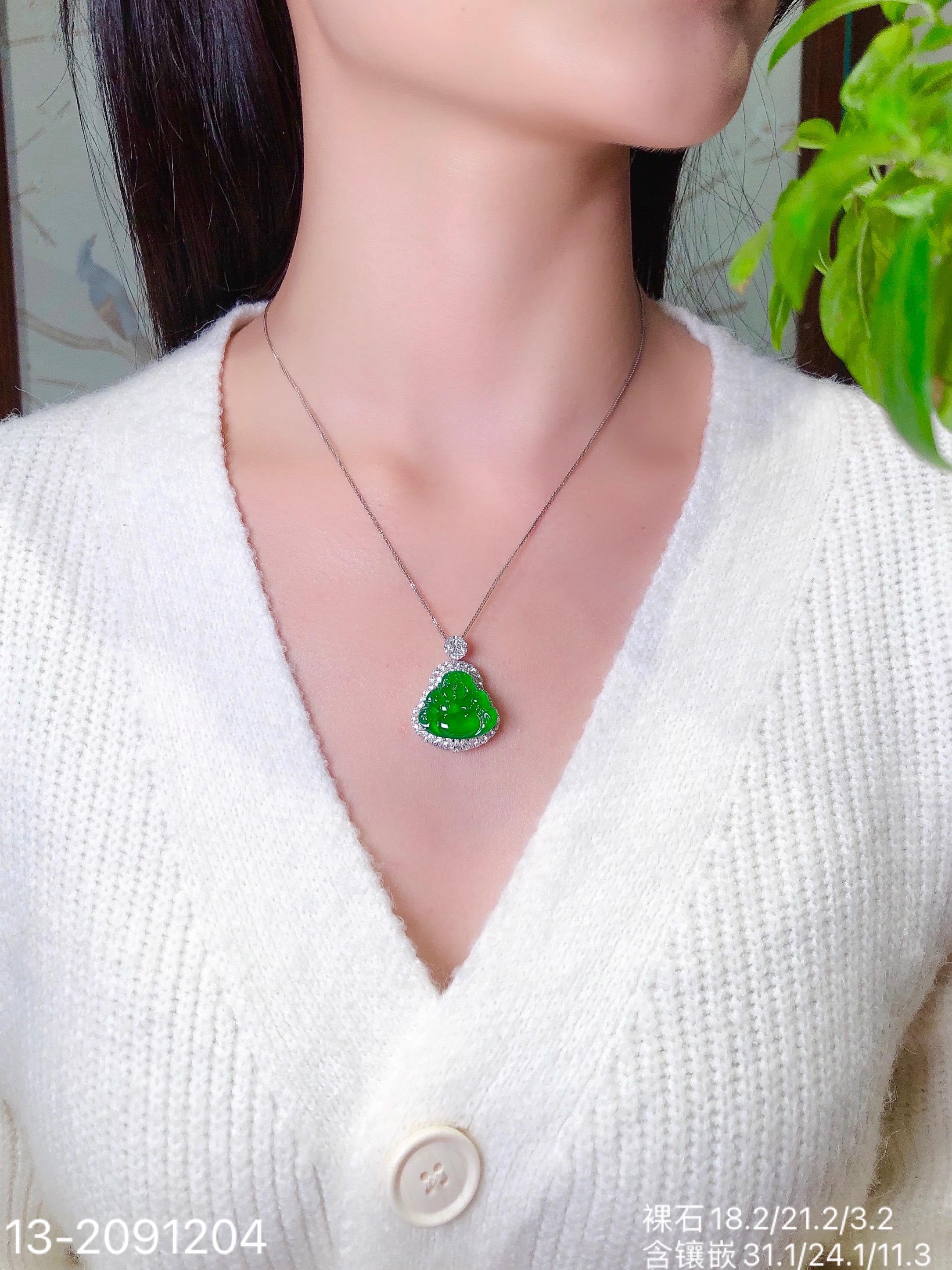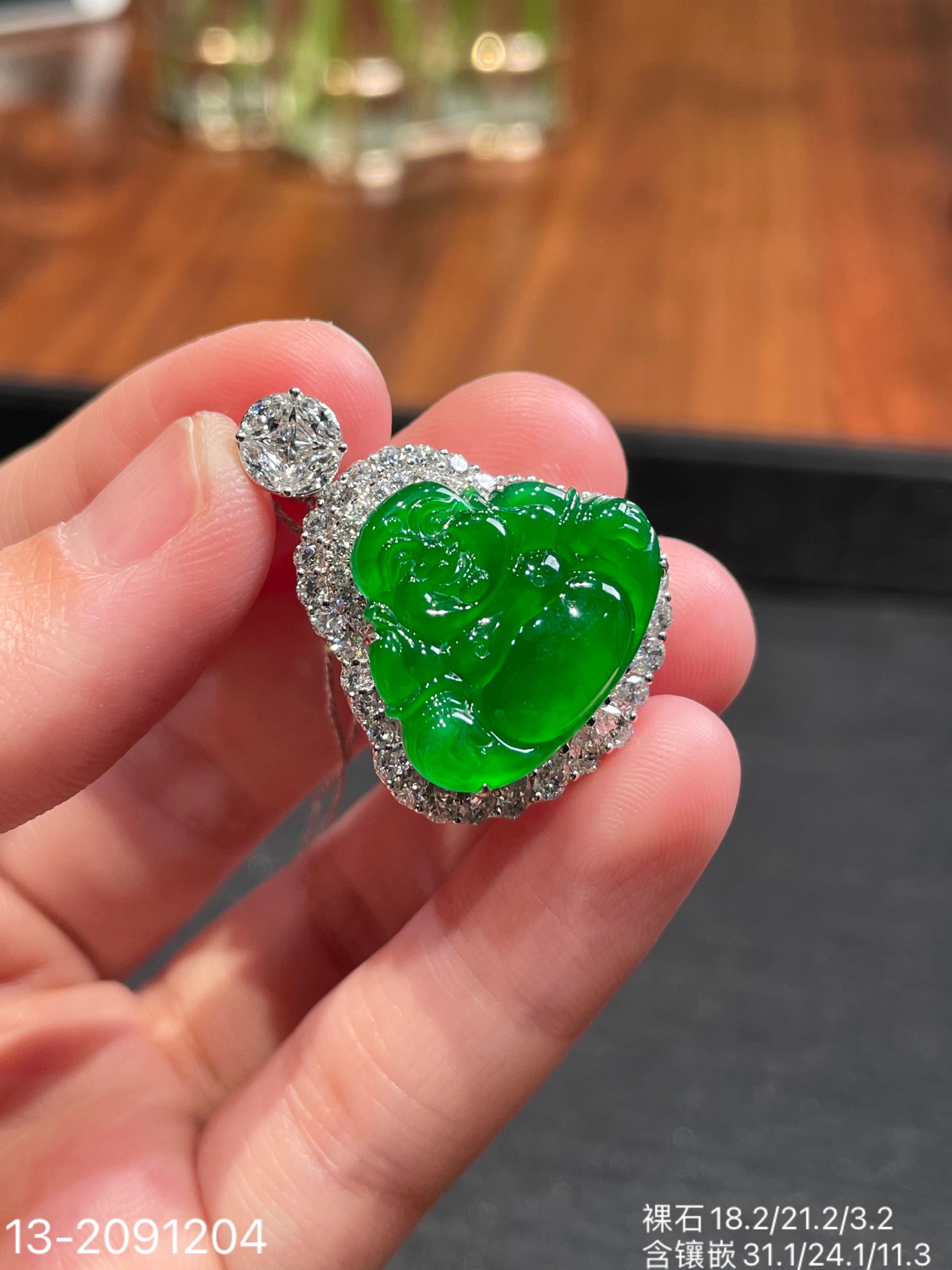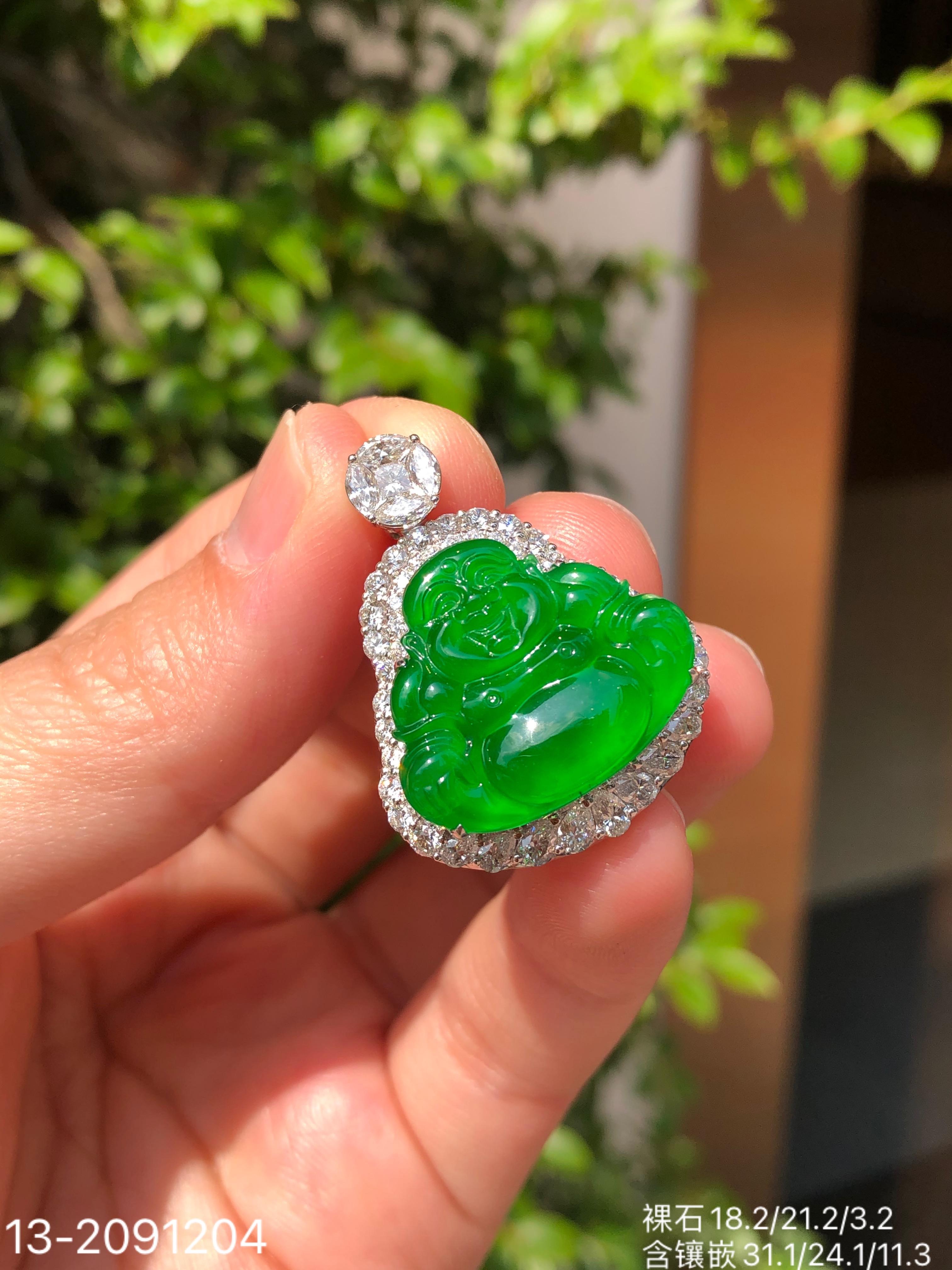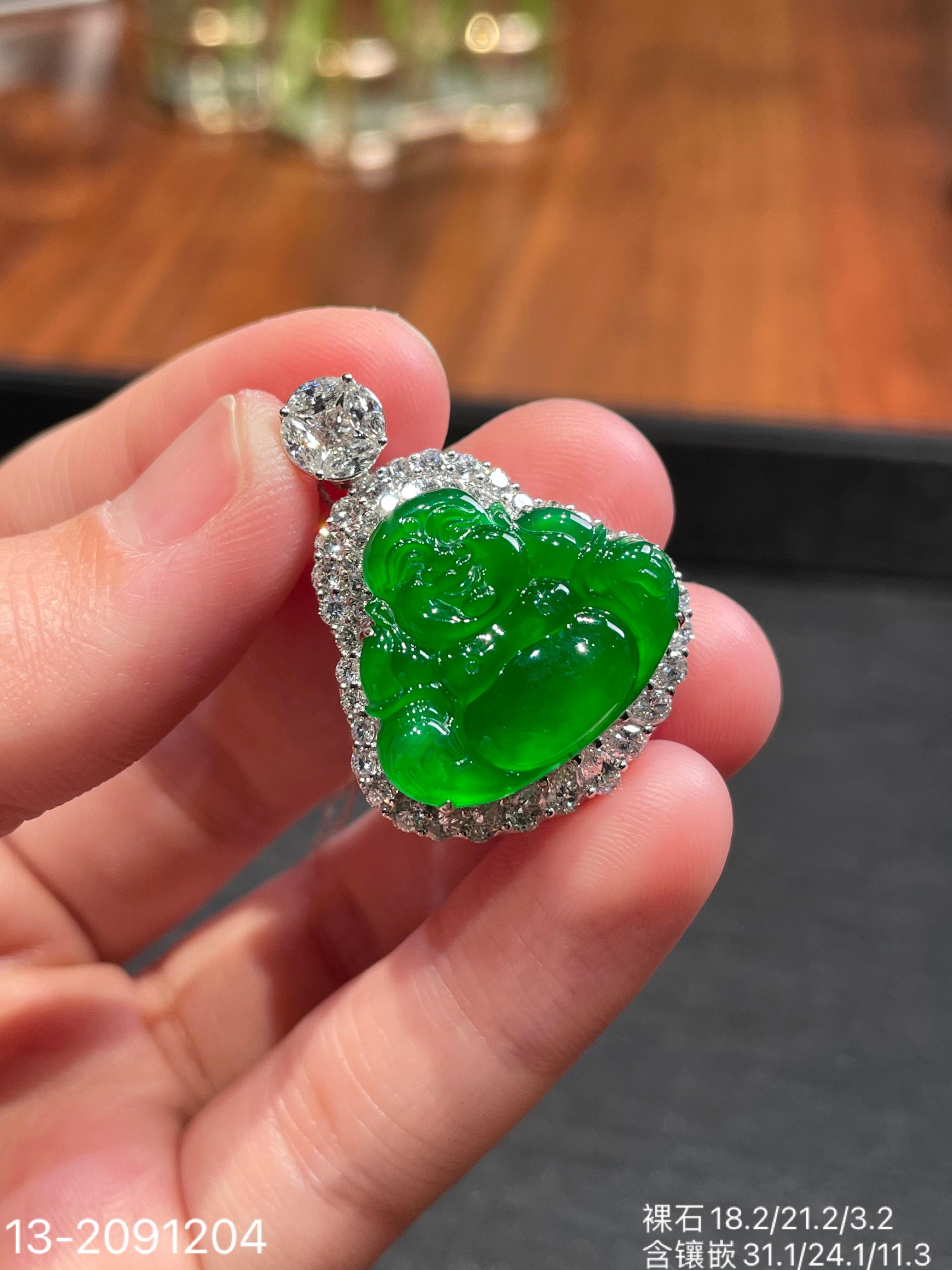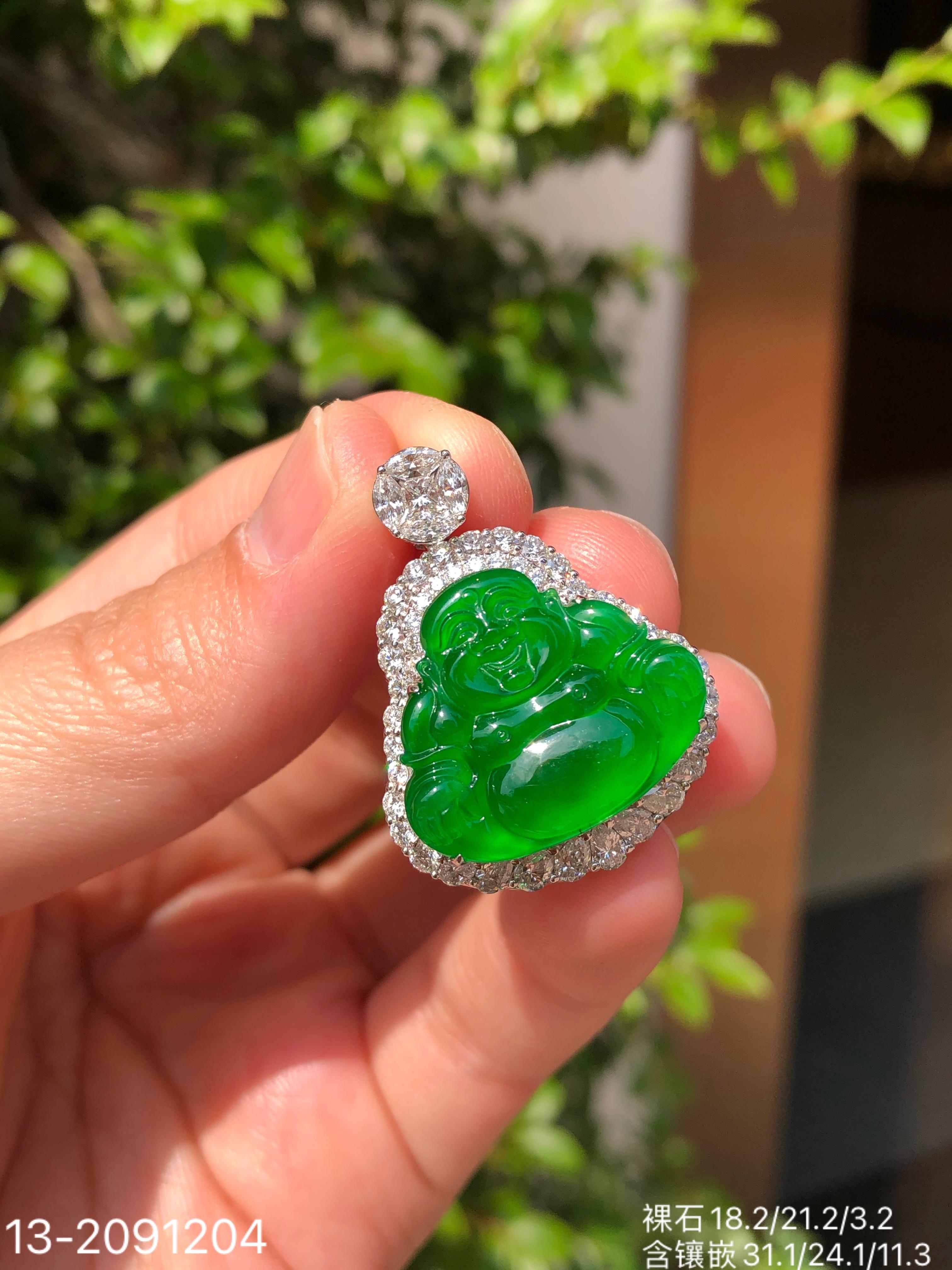 玻璃帝王绿佛公吊坠【13-2091204】具体价格微信咨询