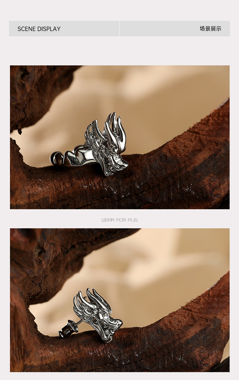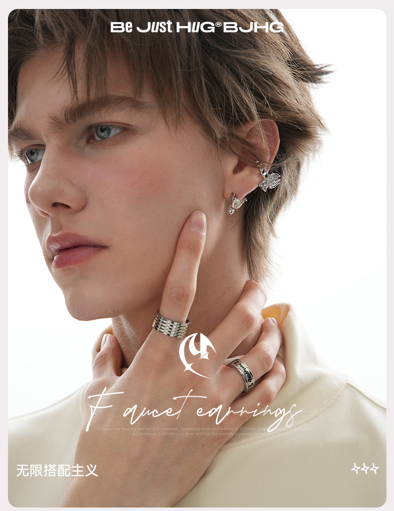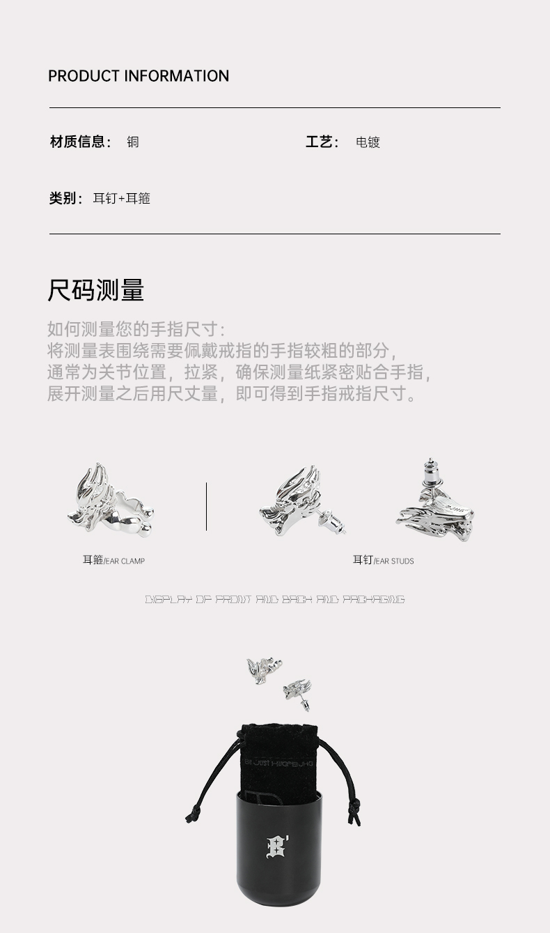 BJHG不计后果新年龙年独特耳钉耳箍套装高级感男女同款潮牌设计感耳夹
