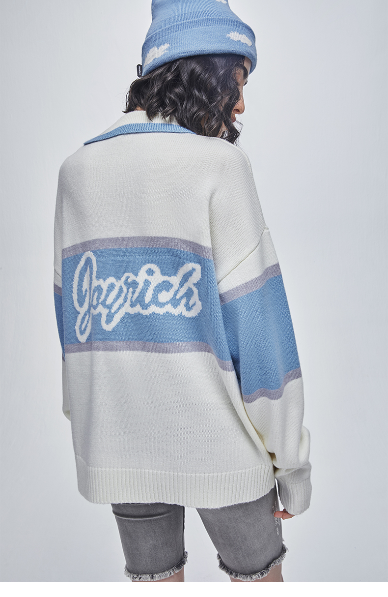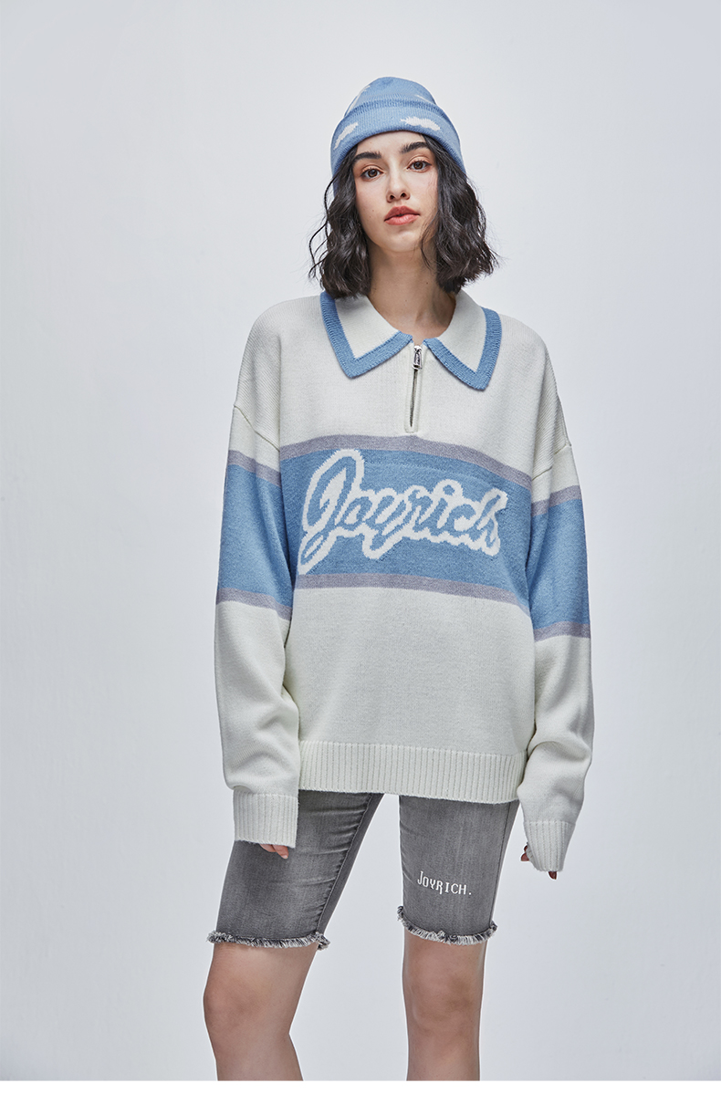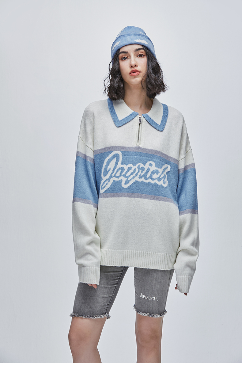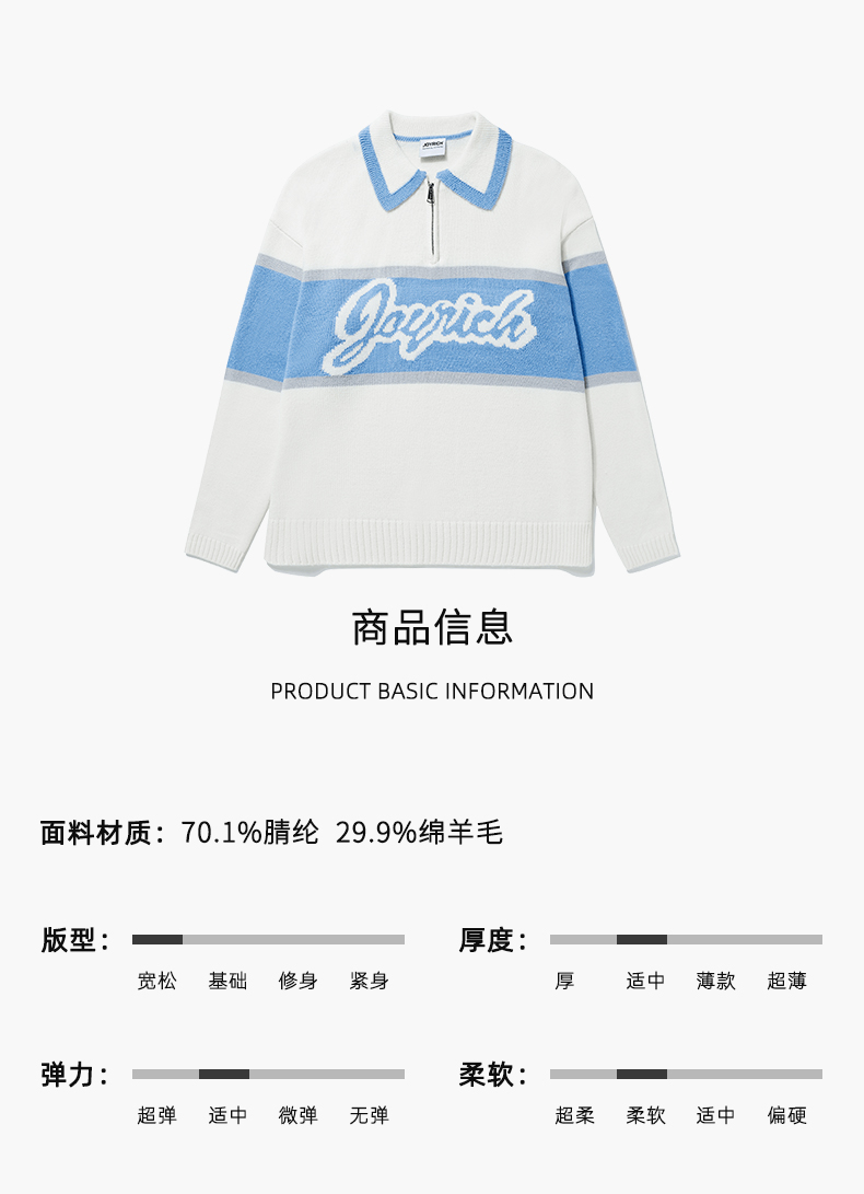 JOYRICH官方女装套头针织羊毛毛衣宽松拼色双面LOGO图案针织衫