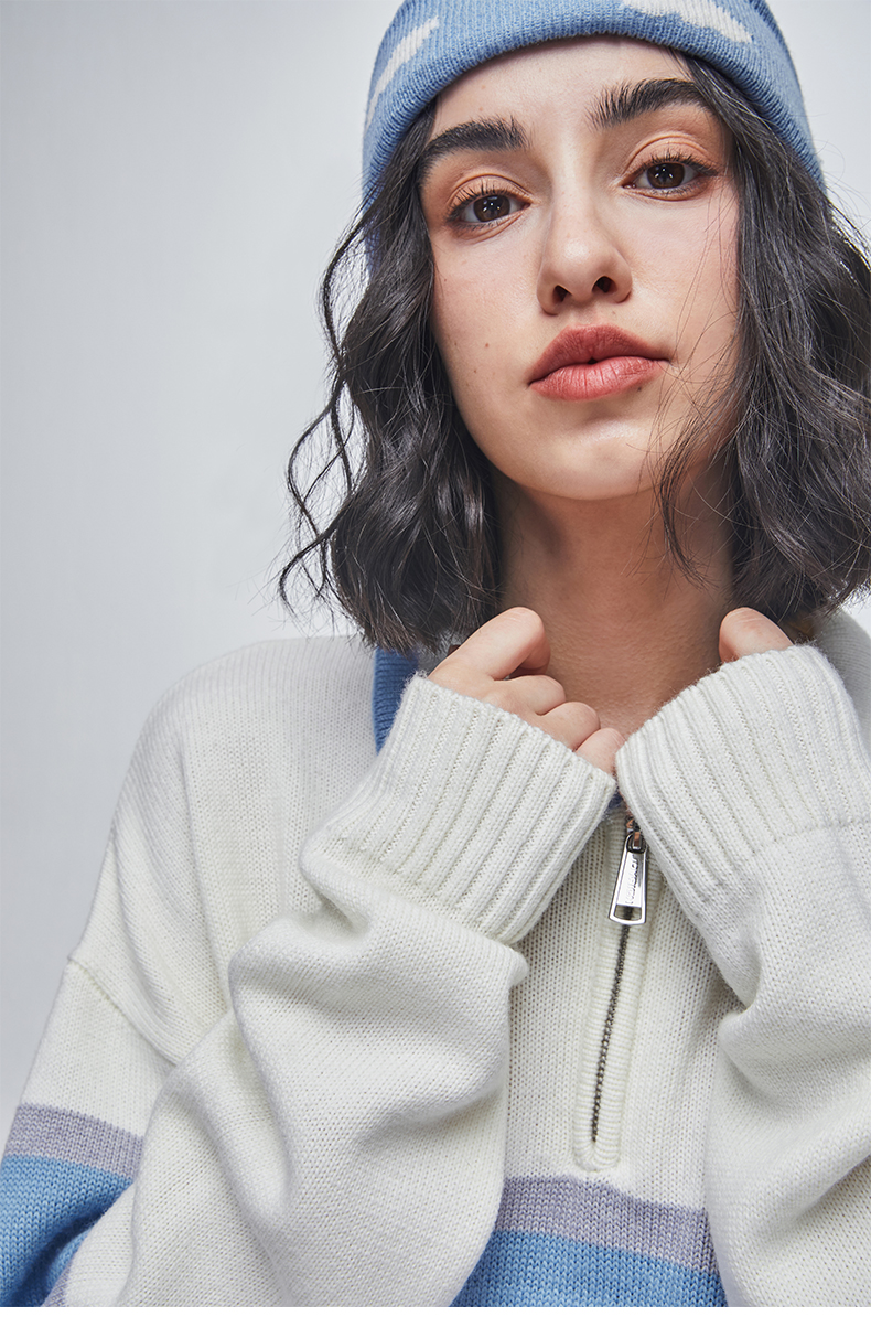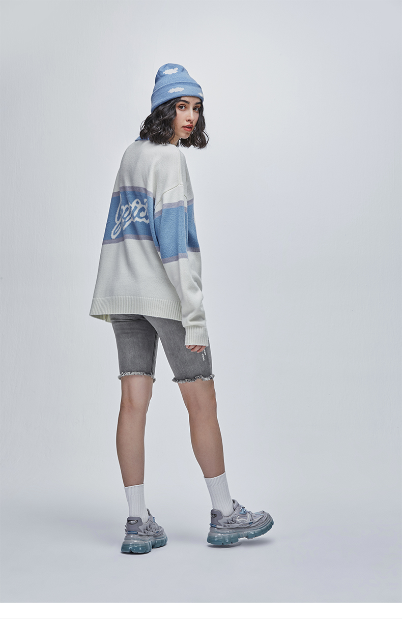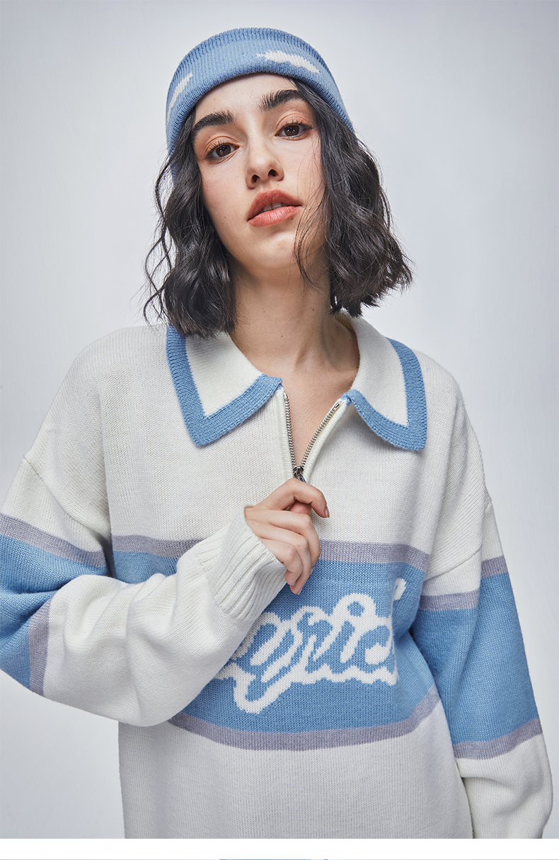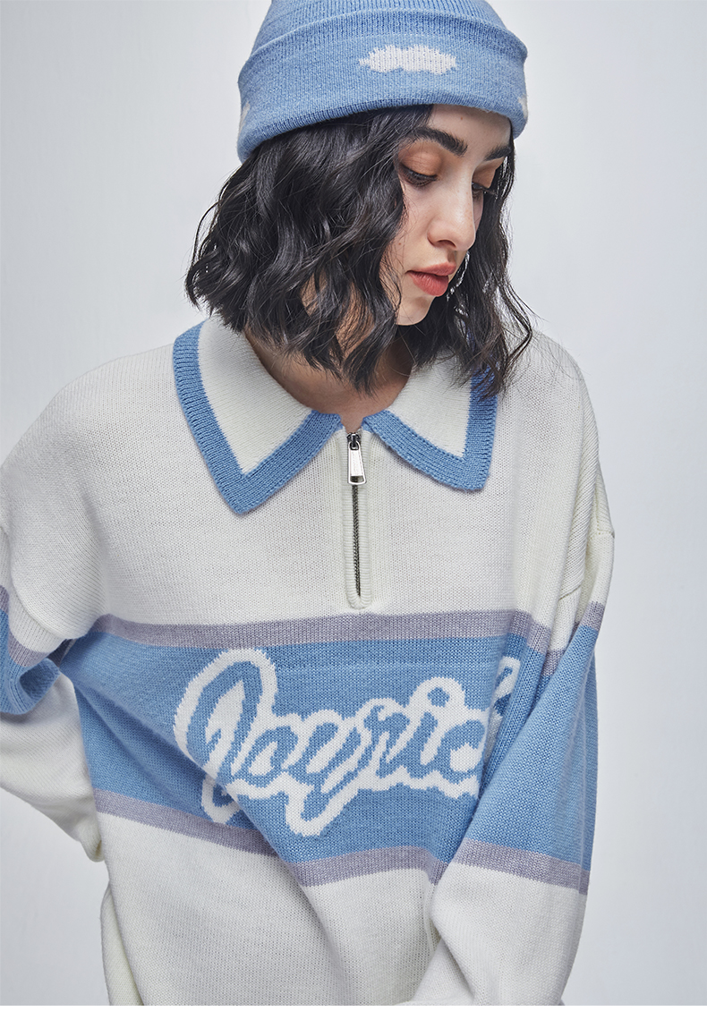 JOYRICH官方女装套头针织羊毛毛衣宽松拼色双面LOGO图案针织衫