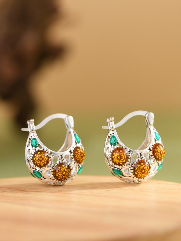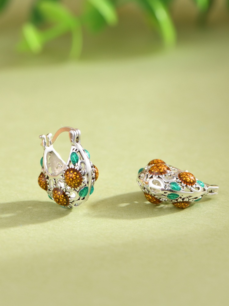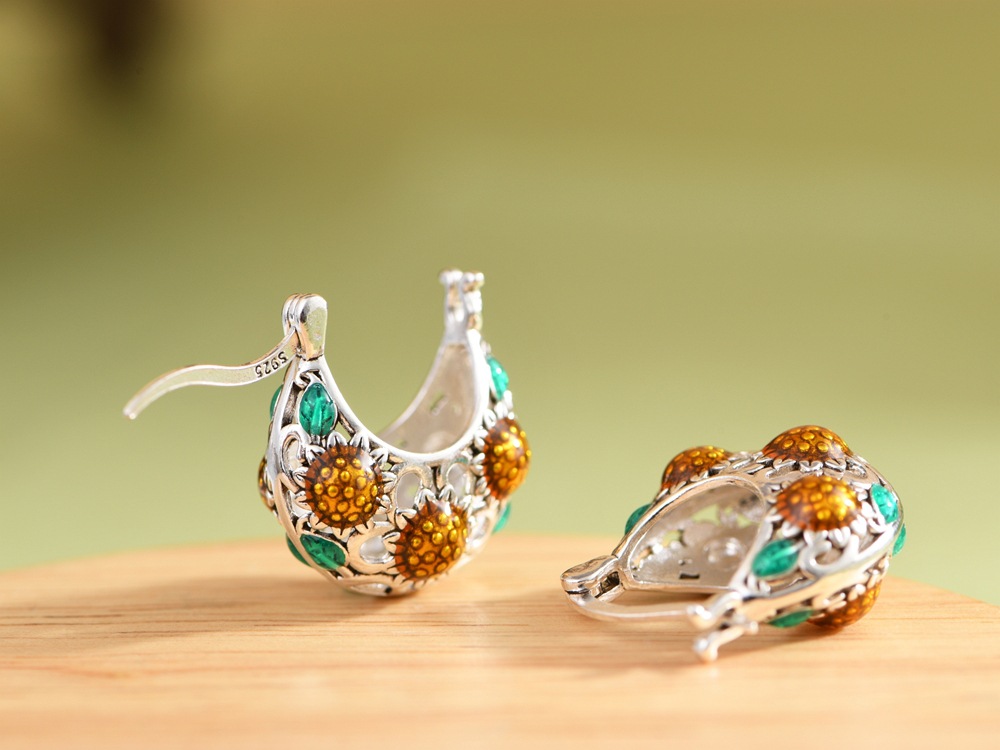 【向阳花开】S925银滴油向日葵花镂空耳包耳饰【SCH-SY33338】