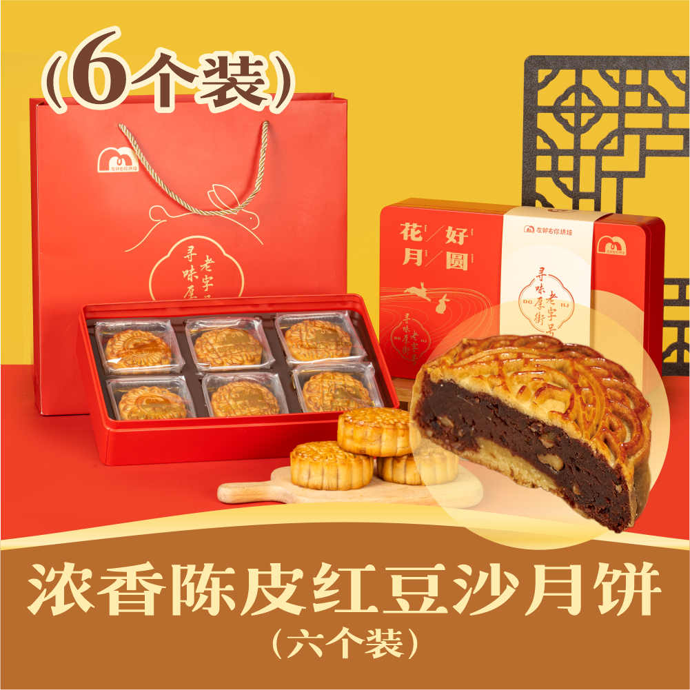 浓香陈皮黑豆沙月饼 | 6个装花好月圆礼盒 2024中秋节