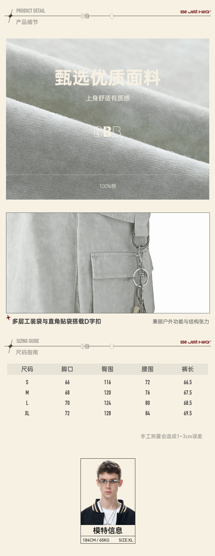 BJHG不计后果废土风工装短裤男夏季潮流新品大口袋街头休闲七分裤