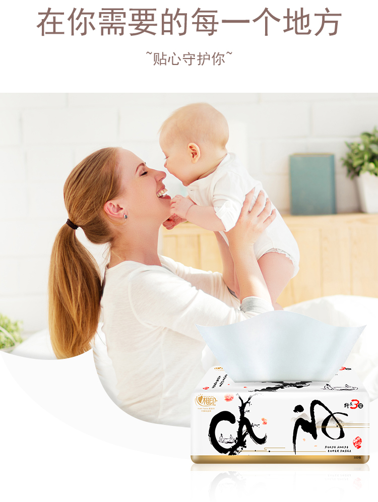 【RQ】心相印中国风24包3层抽纸 125mm*180mm 4包/提*6提 DT100ZG