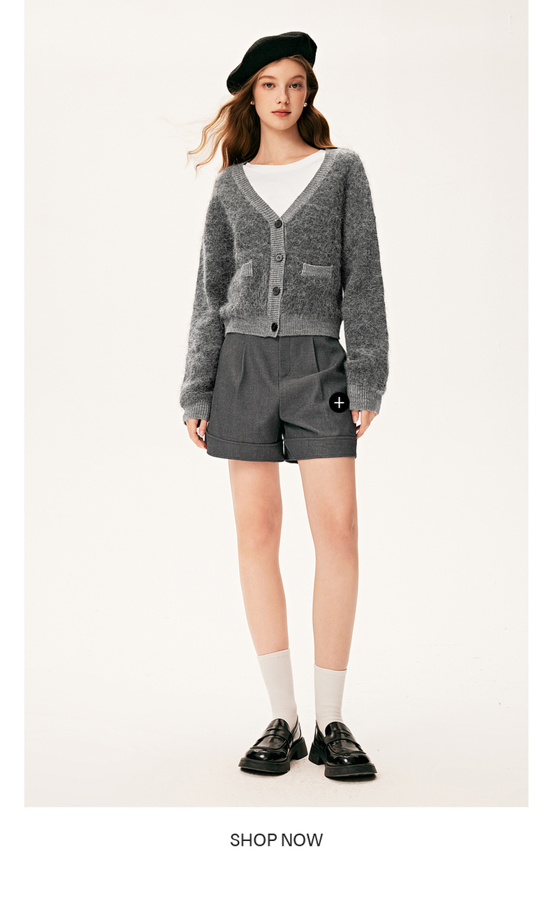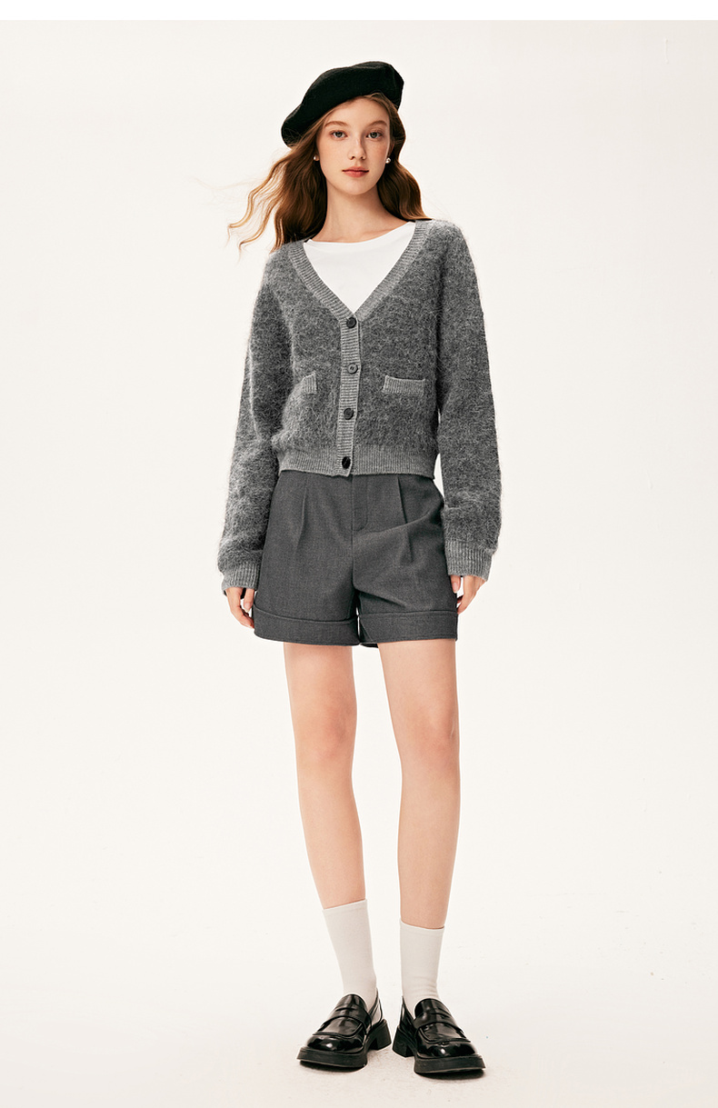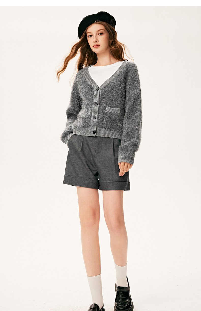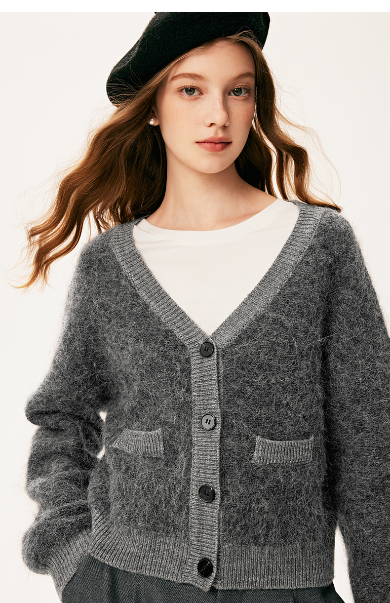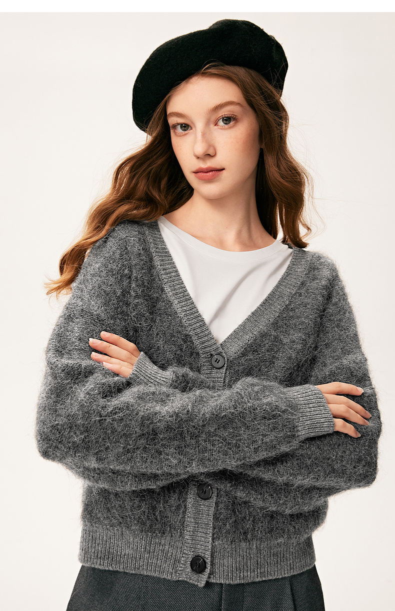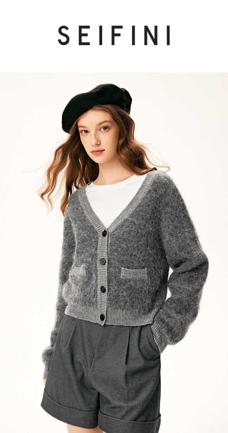 【严选】诗凡黎冬基础百搭v领小廓形开衫7E9133131
