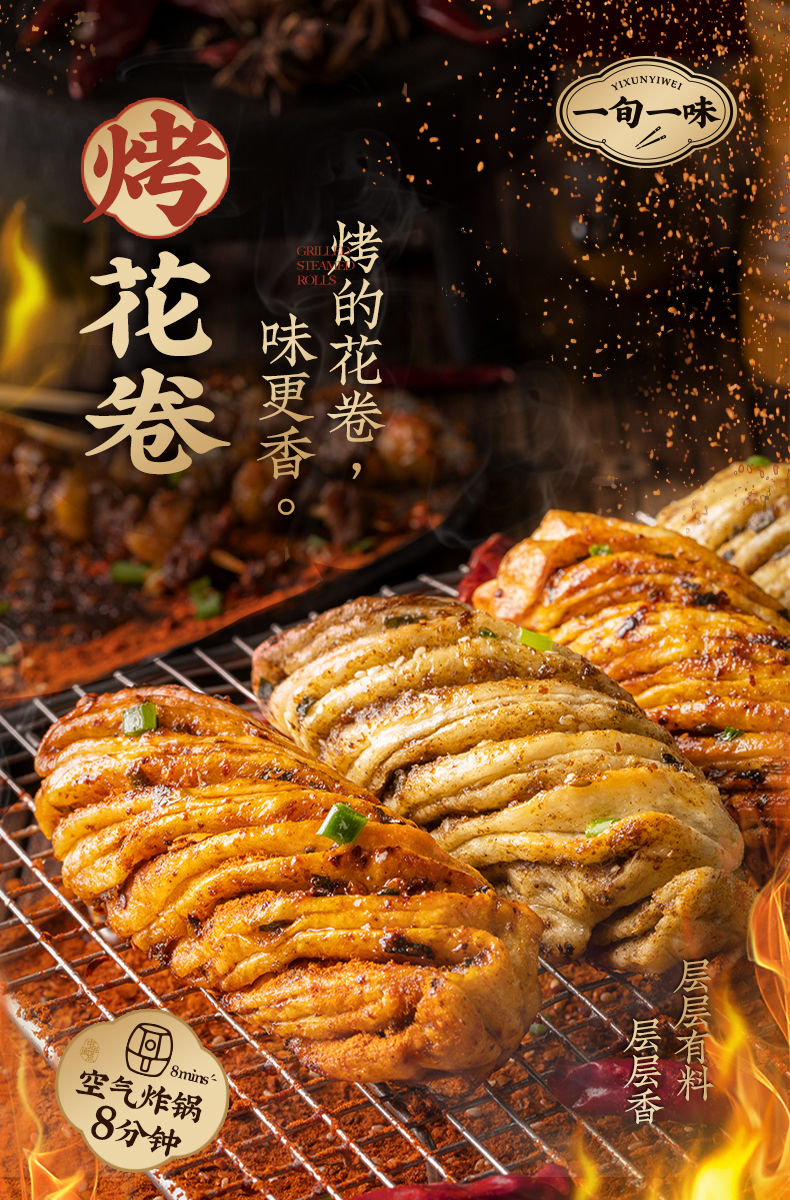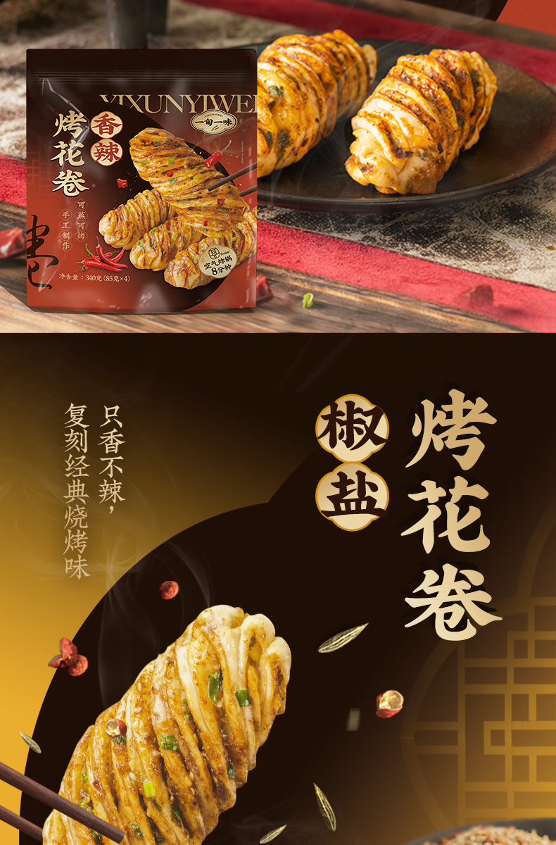 【一旬一味】速冻面点千层烤花卷半成品香辣烤馍椒盐酥脆 组合装