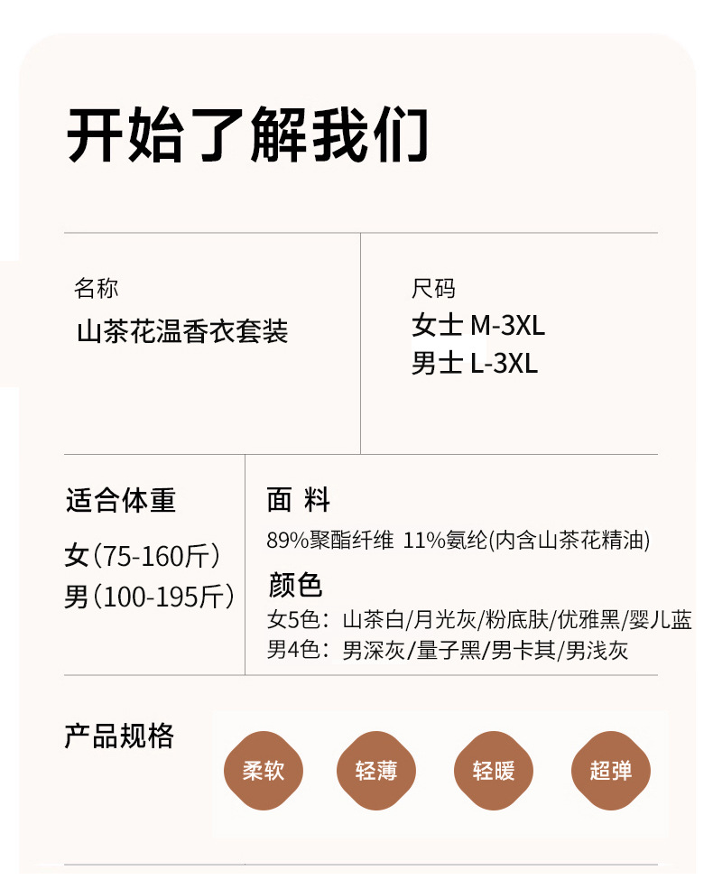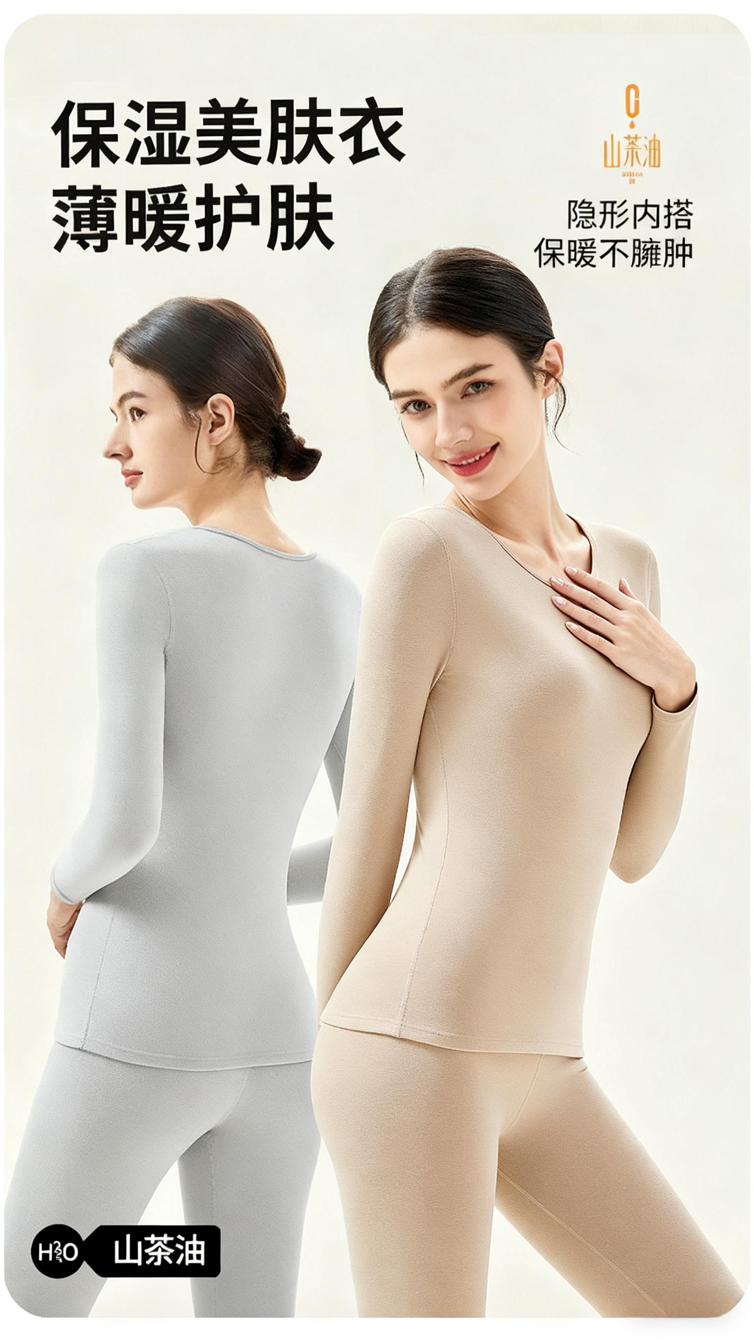 【桃内新款保暖内衣套装】山野茶花保暖套装 30°C双倍保暖 保暖不臃肿 山茶油加持 冬日拒绝干燥 静电勿扰 时尚情侣款!