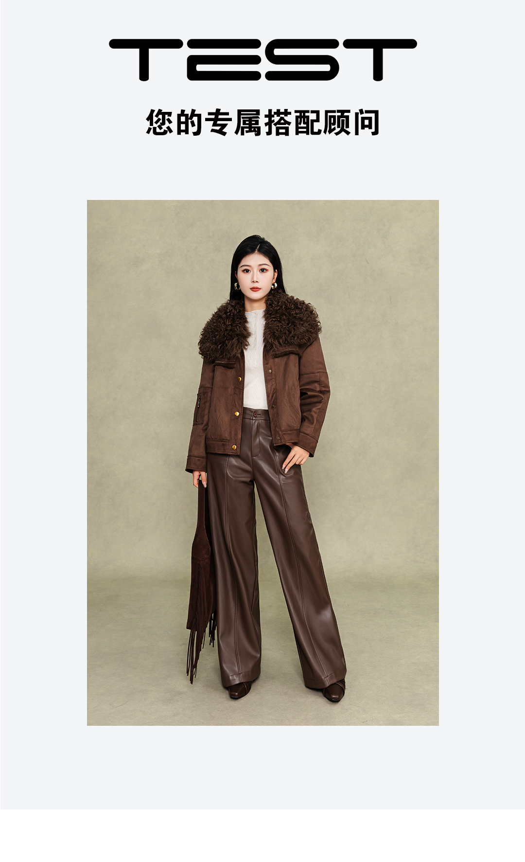 冬上新时尚棕羊皮毛领皮草拼接短款夹克2254166 商品图3
