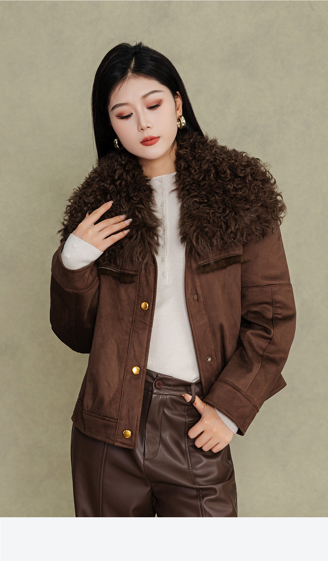 冬上新时尚棕羊皮毛领皮草拼接短款夹克2254166 商品图2