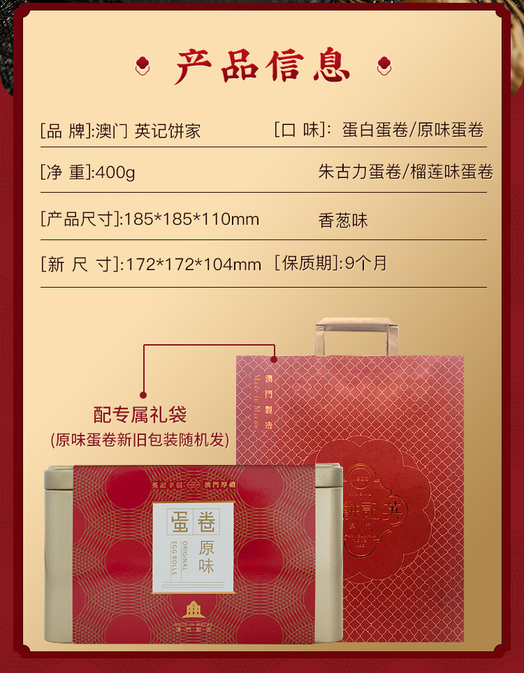 澳门英记鸡原味/蛋白味蛋卷400g 还原醇醇蛋香口感细腻 053957/150524