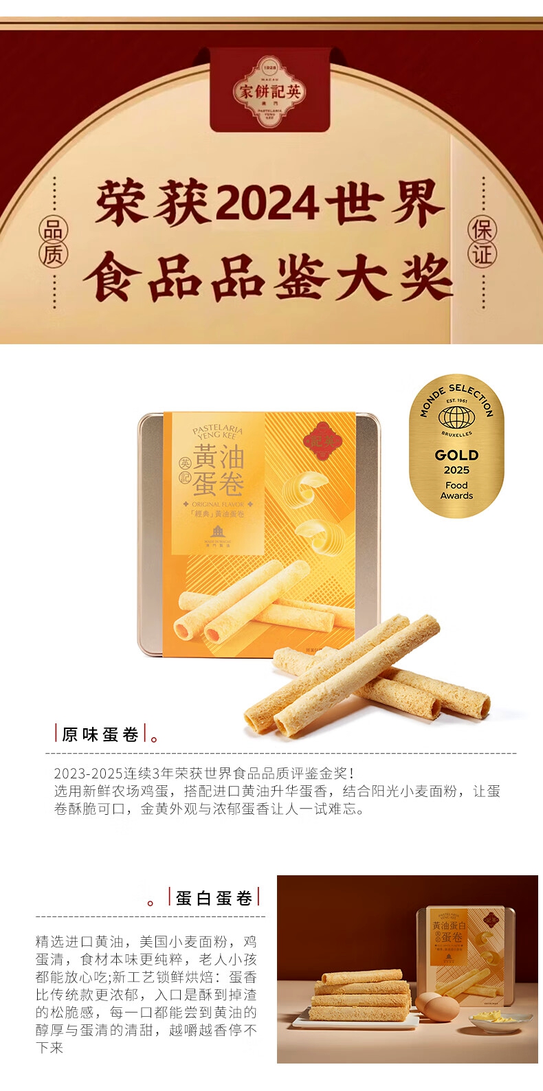 澳门英记黄油味/黄油蛋白味蛋卷400g 152906/053957
