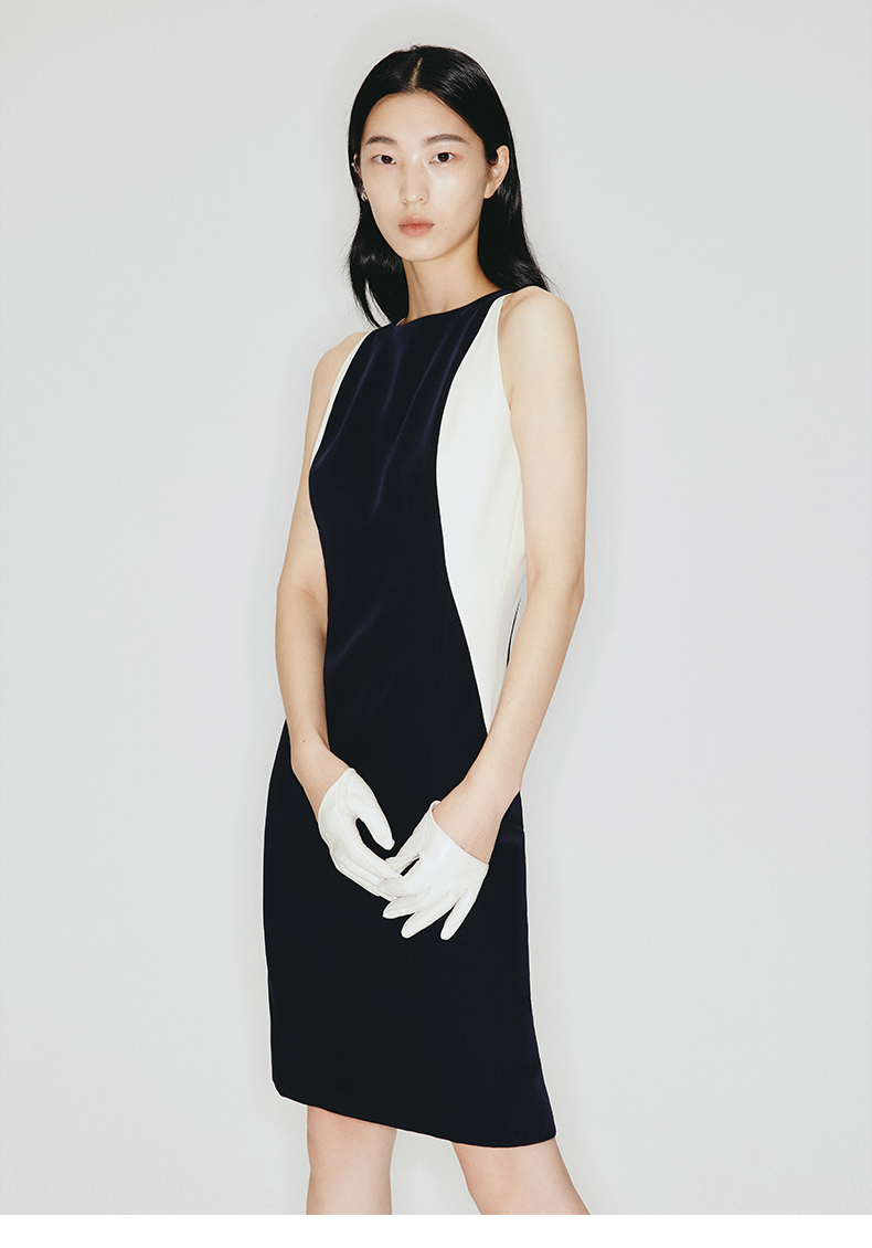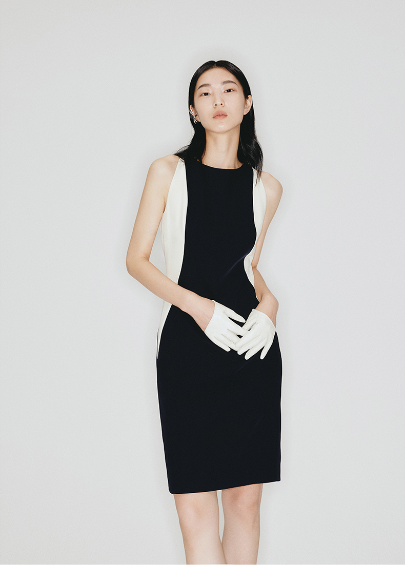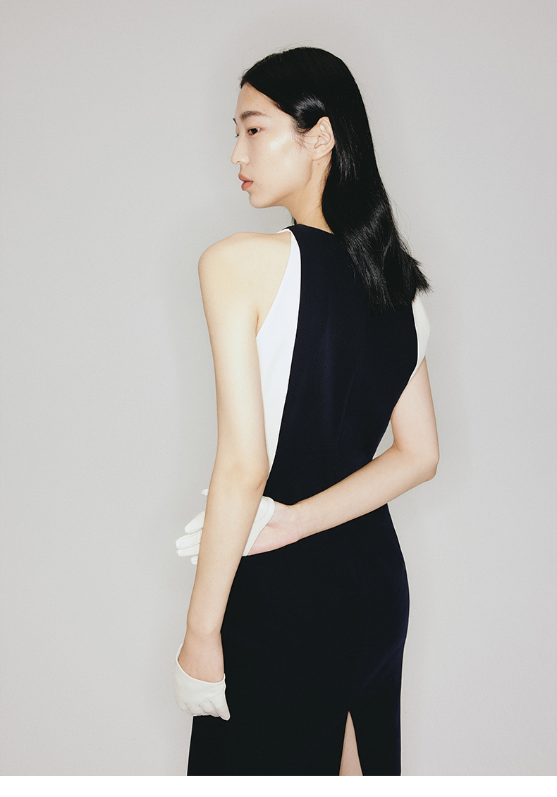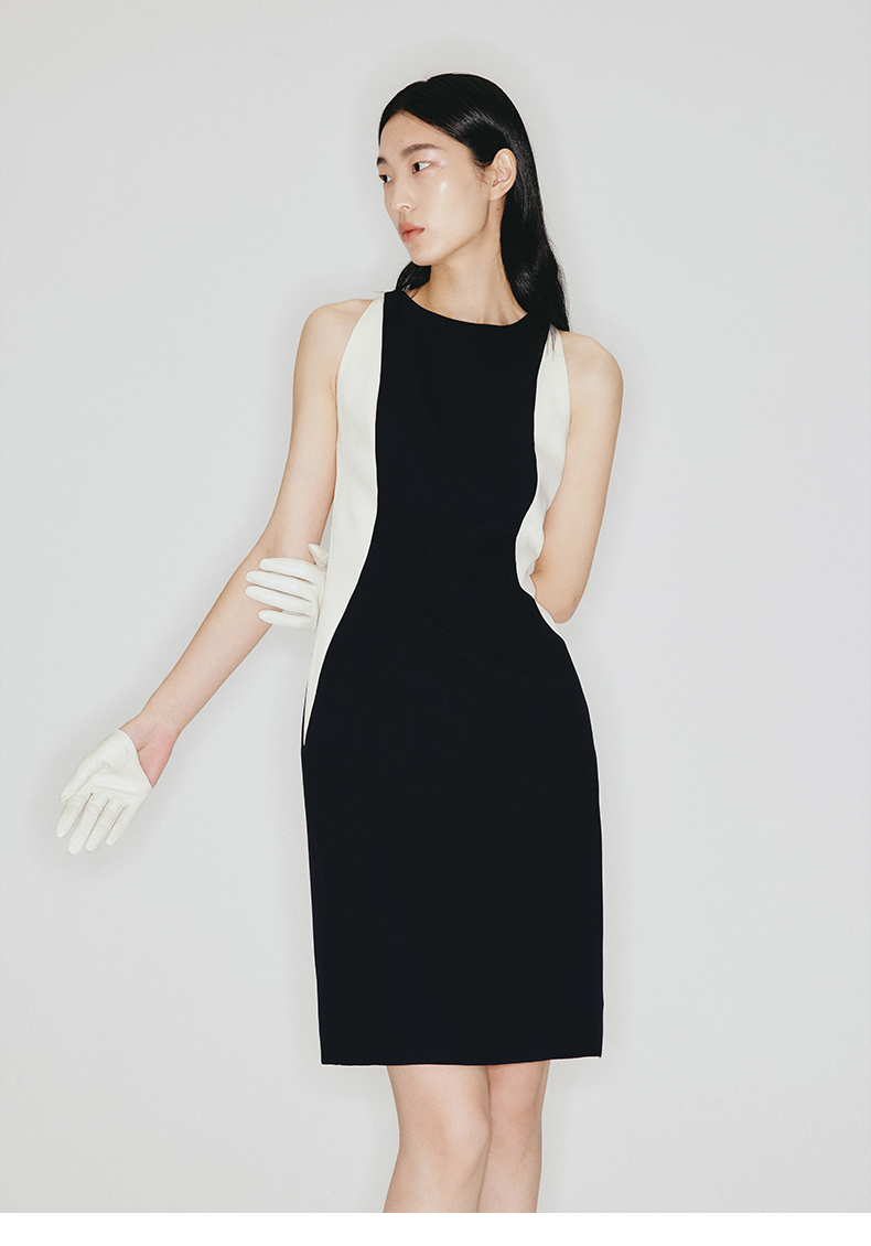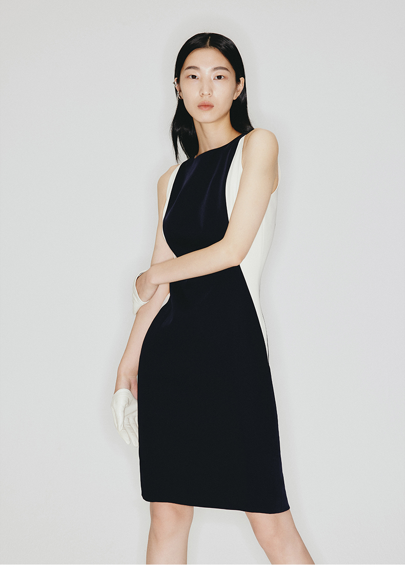 【蔚蓝深海】曲线撞色拼接设计修身连衣裙/2300009