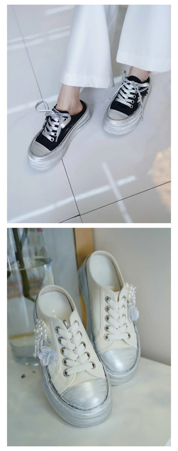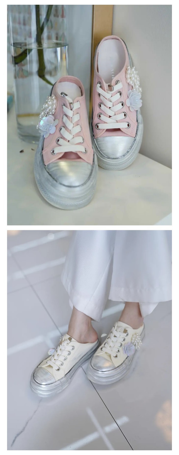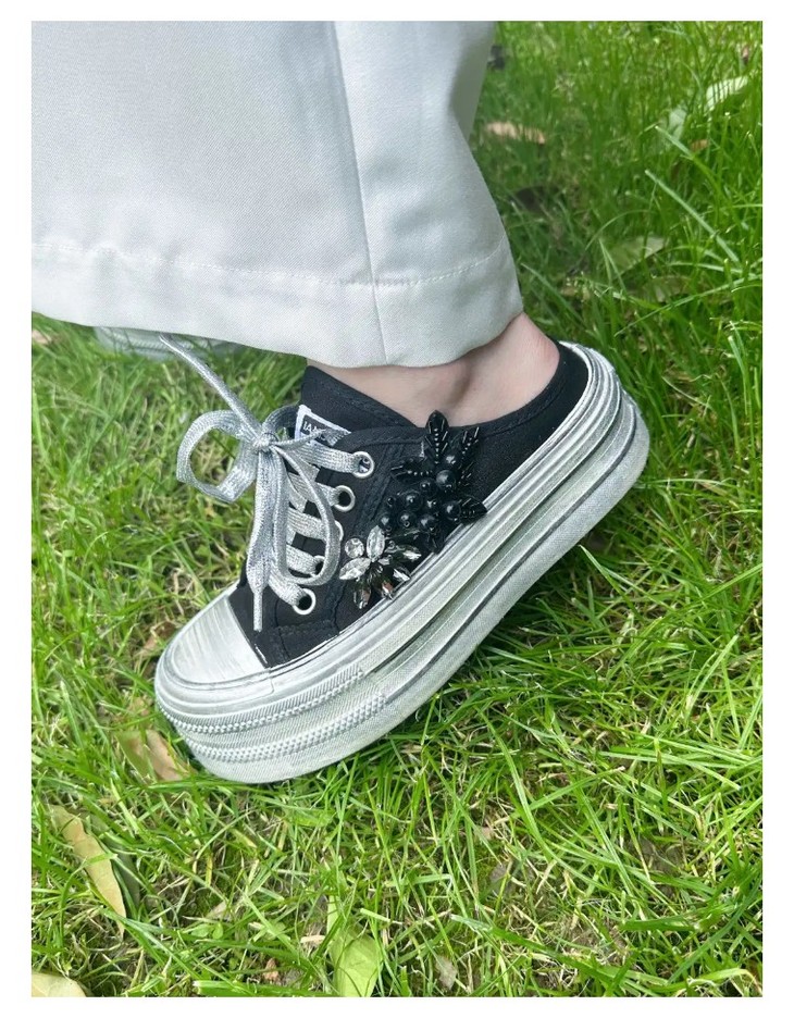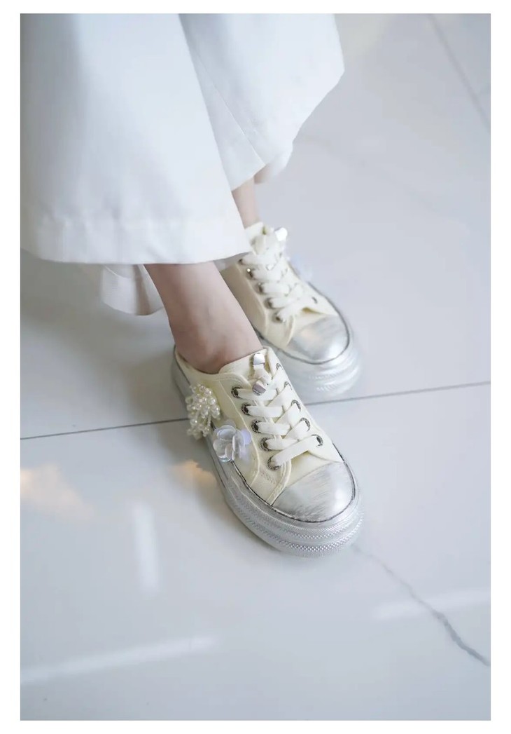 这款和其他帆布鞋有很大的不同,相信大家的衣柜里面,多多少少都有几款帆布鞋,但是整个呈现出来的这种气质气息,都是比较朴素的一种感觉,这双钉珠呈现出首饰般,琳琅满目的很有少女感、新鲜感的帆布鞋~
