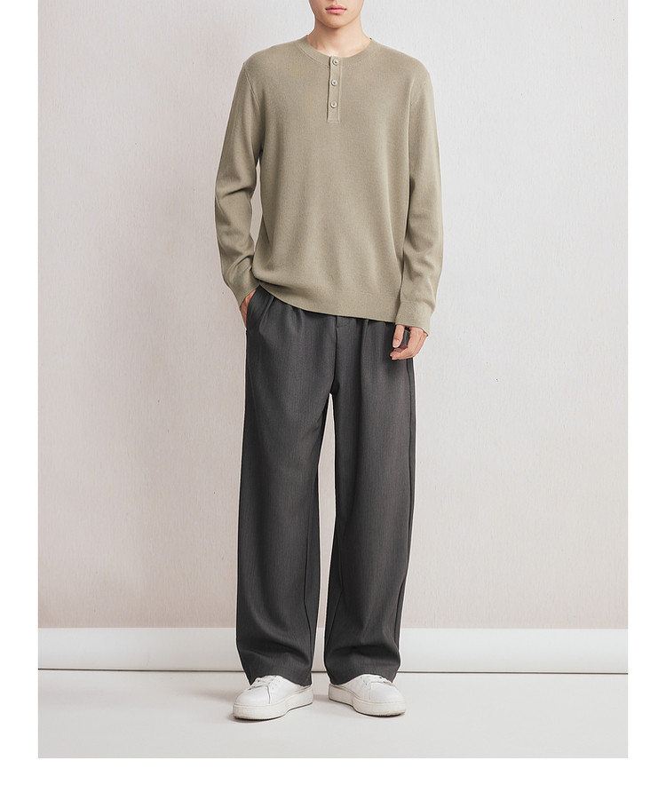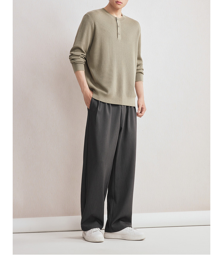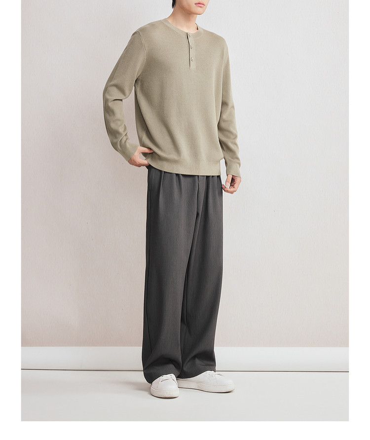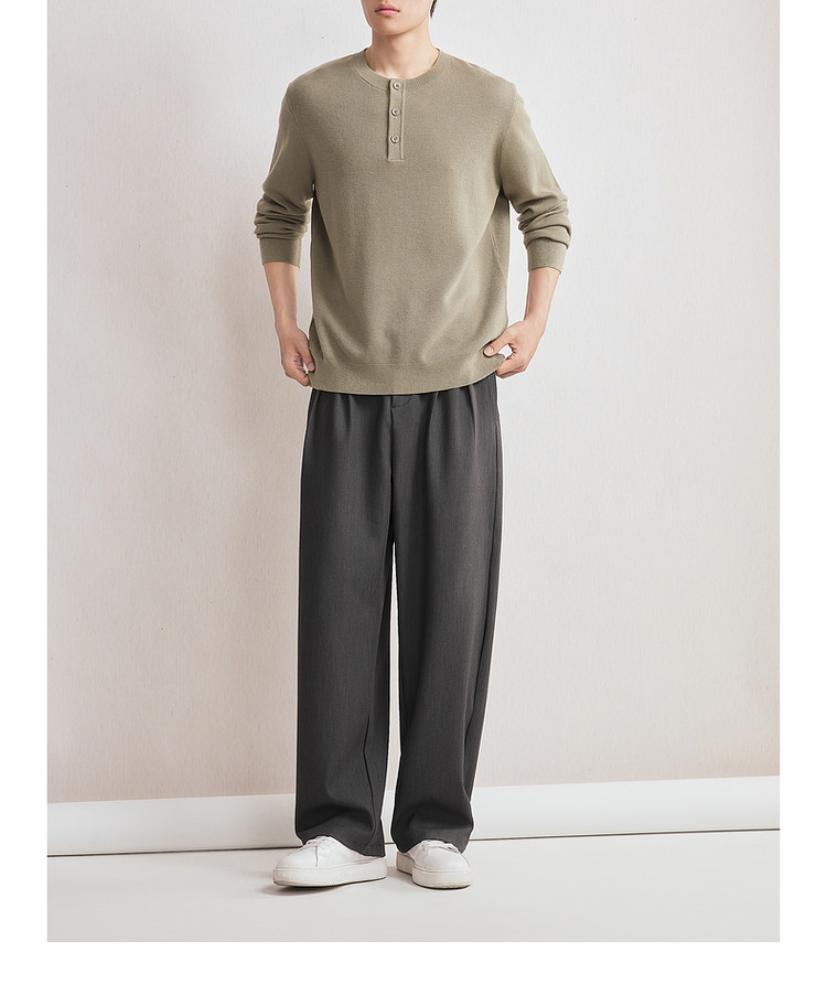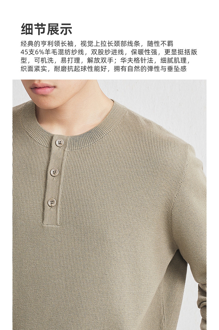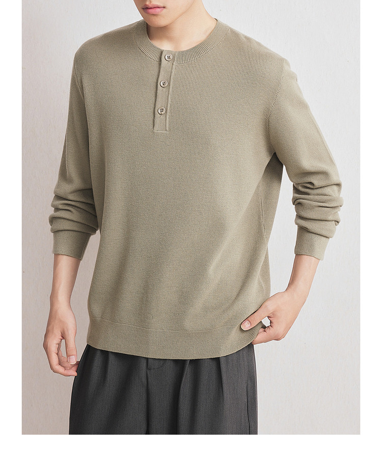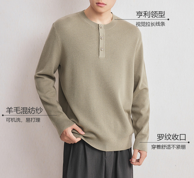 墨麦客男装2025年秋季新款华夫格肌理针织衫男士亨利领半开襟毛衣