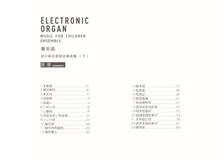本合奏曲集至少需要四个小朋友来完成合奏,每位小朋友担任演奏其中一个声部,授课老师请为每位小朋友配备一套曲集。
