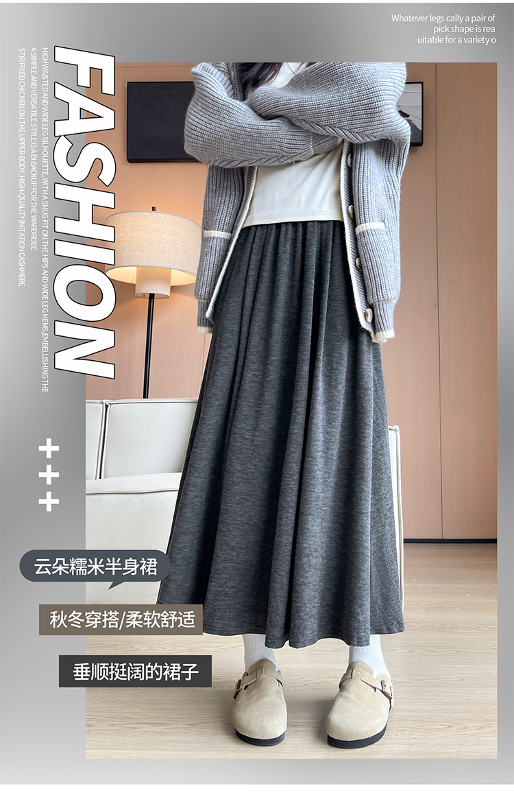 【灰色糯米裙】秋季新款 高腰大摆裙 a字显瘦长裙子 秋冬款百搭温柔半身裙