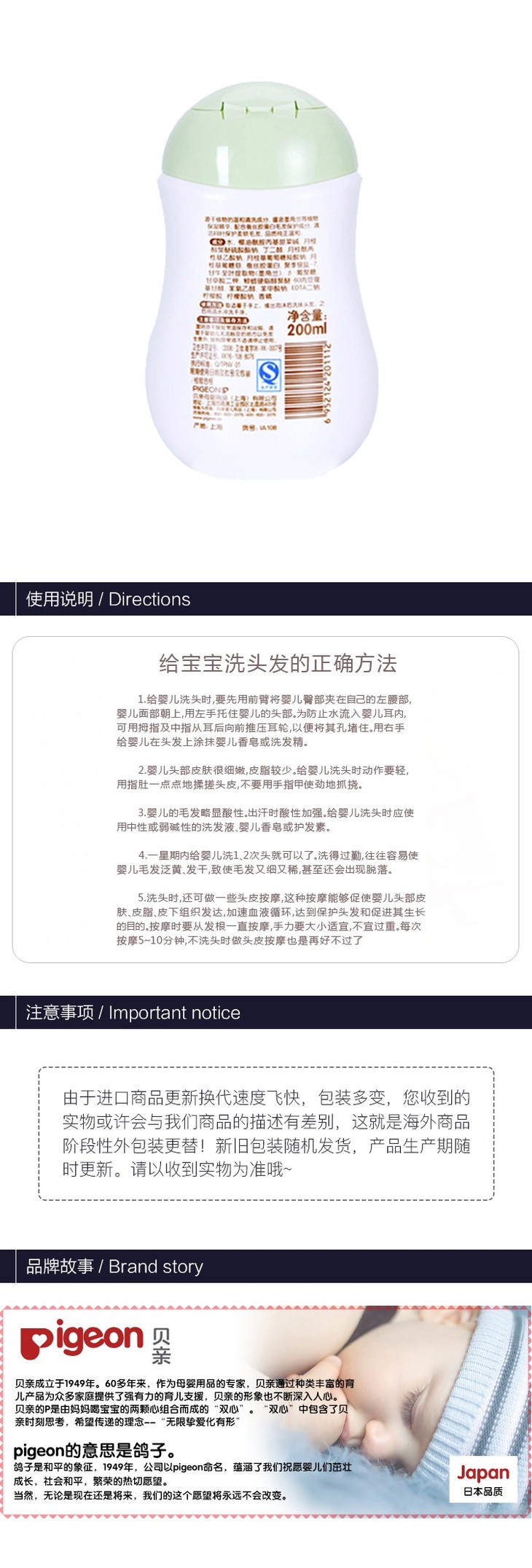 【一般贸易】Pigeon贝亲婴儿洗发精200ml IA108