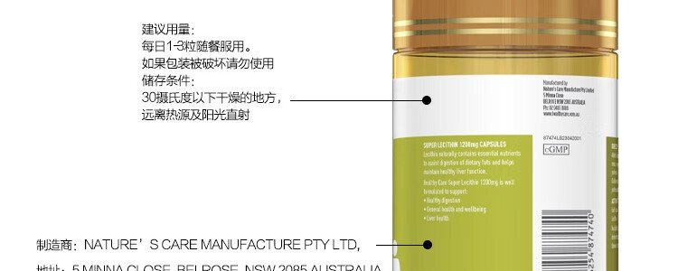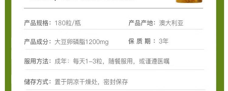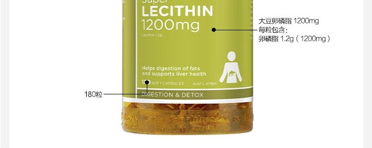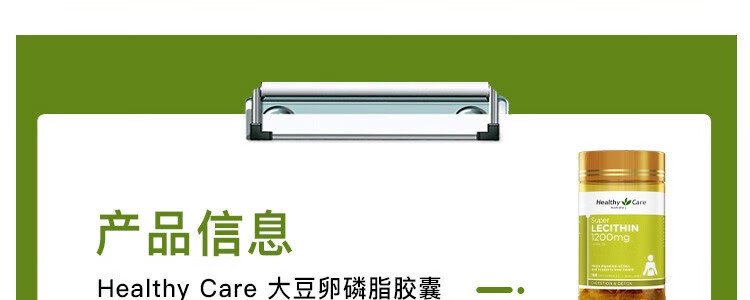 【保税】澳洲 Healthy Care卵磷脂胶囊1200mg 180粒