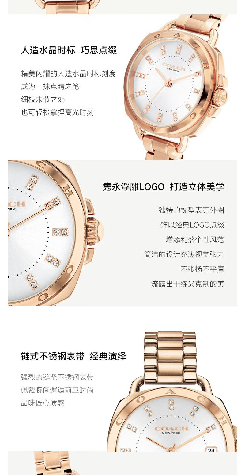 【主持人亲测严选·蔻驰TATUM系列】COACH/蔻驰TATUM系列女士时尚优雅钢带石英腕表欧美腕表