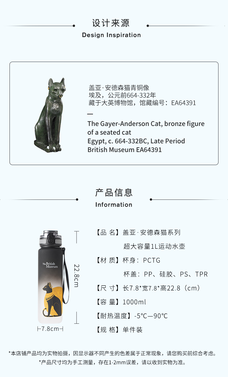 大英博物馆盖亚安德森猫系列大容量1升运动水壶