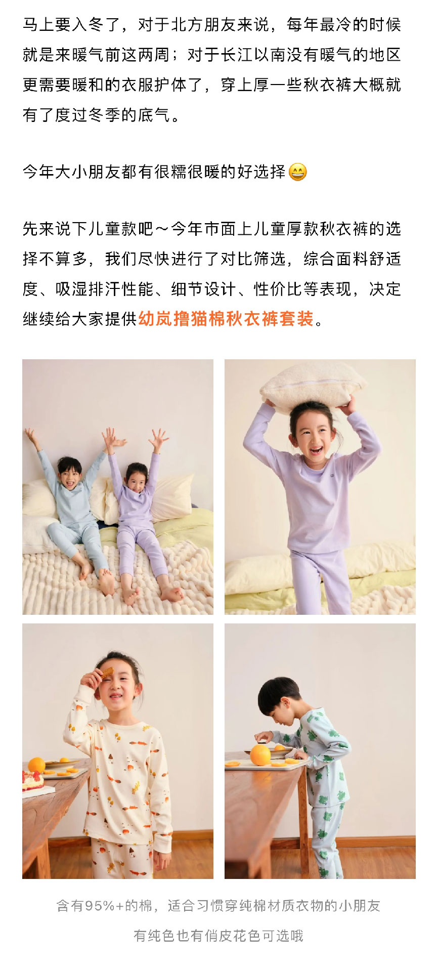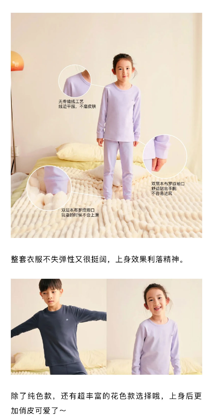 【代发】幼岚经典撸猫棉 儿童舒适厚款秋衣裤套装素色款 24秋季新款